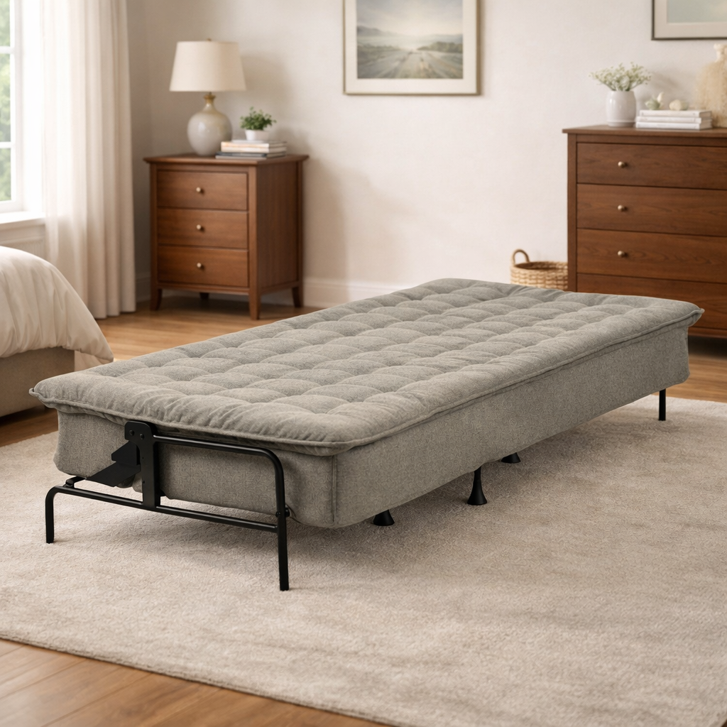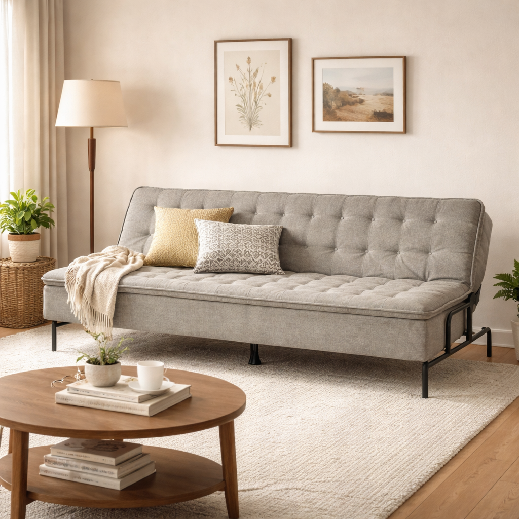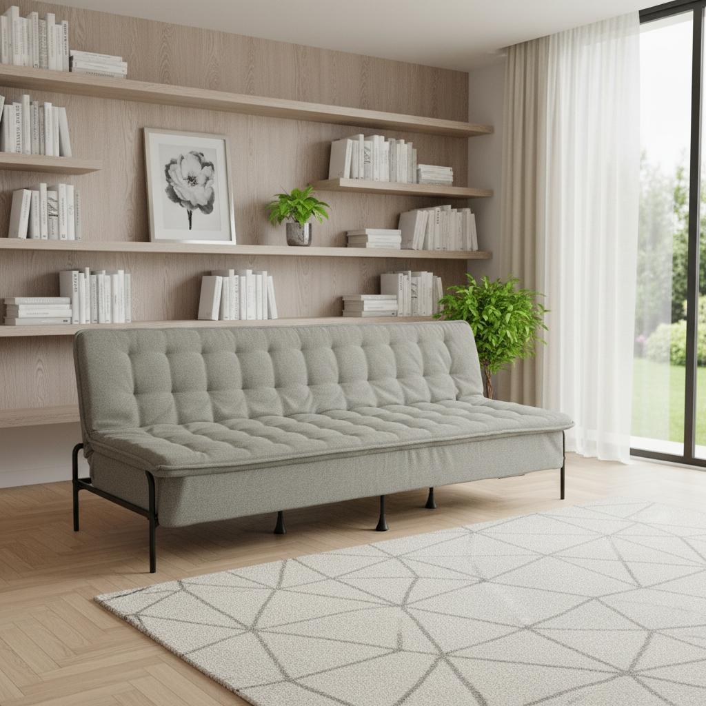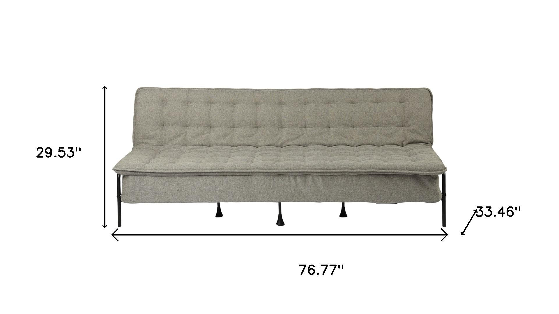 Add an air of fashion to your space with this fabulous 77-inch gray fabric convertible futon sleeper reclining sofa. Solid colors give you lots of decorative options and are easy to work into your decor scheme. Designed with an updated and refreshing style, this sofa is armless to create that unique contemporary or modern aesthetic. Black metal legs effortlessly elevate the room and add a touch of contemporary design. Built to last, this sofa will be a great centerpiece for your room. 29.53-inch h x 76.77-inch w x 33.46-inch d.