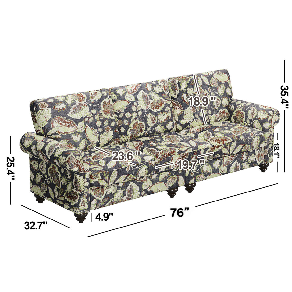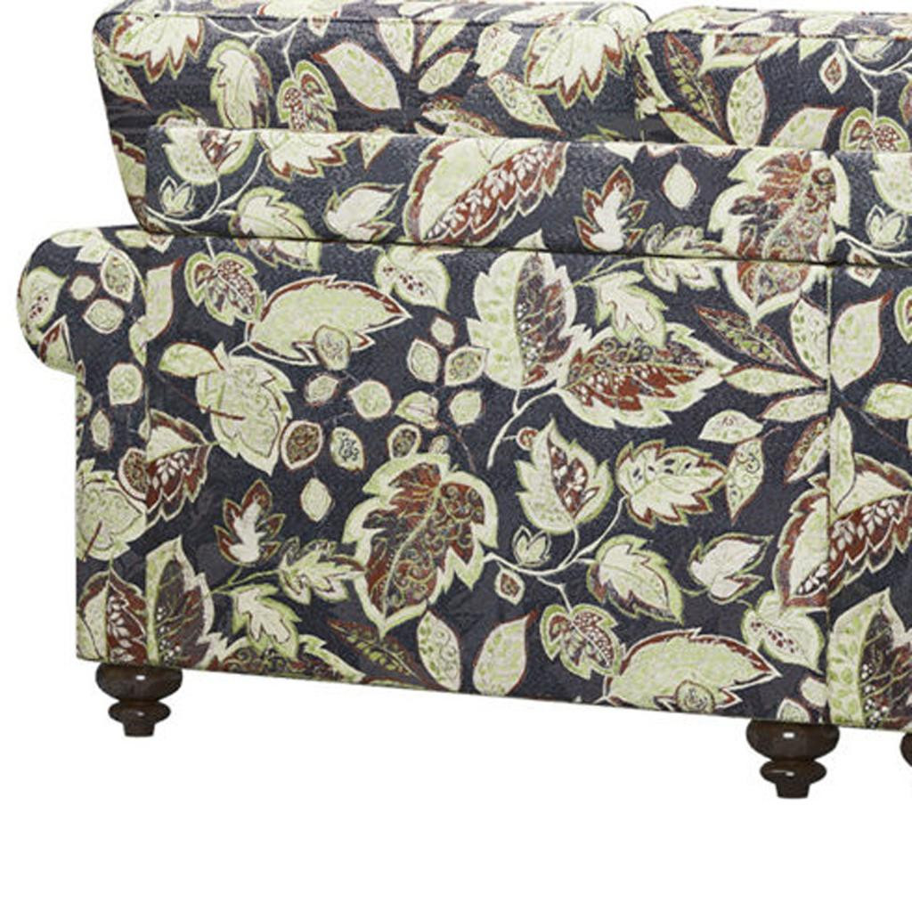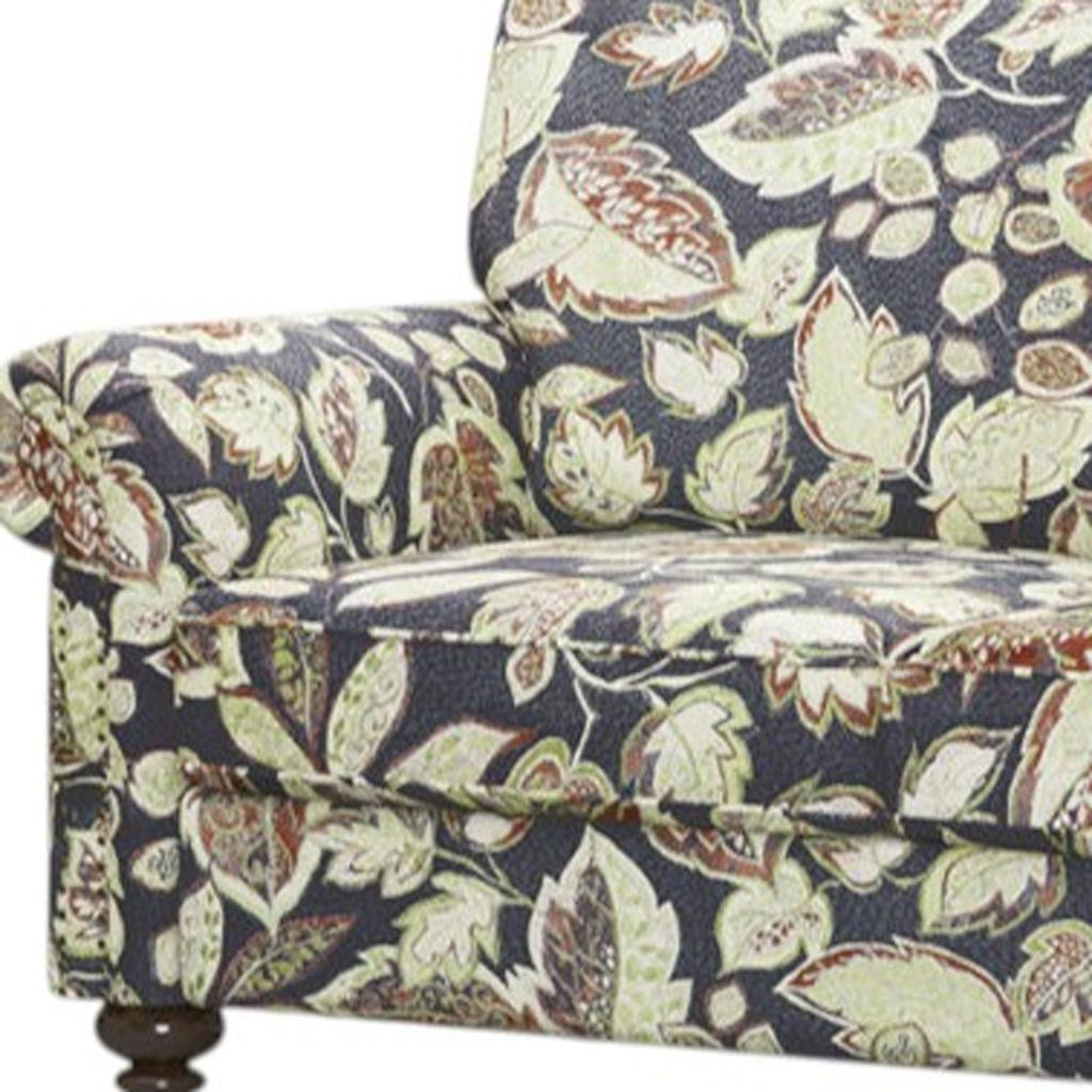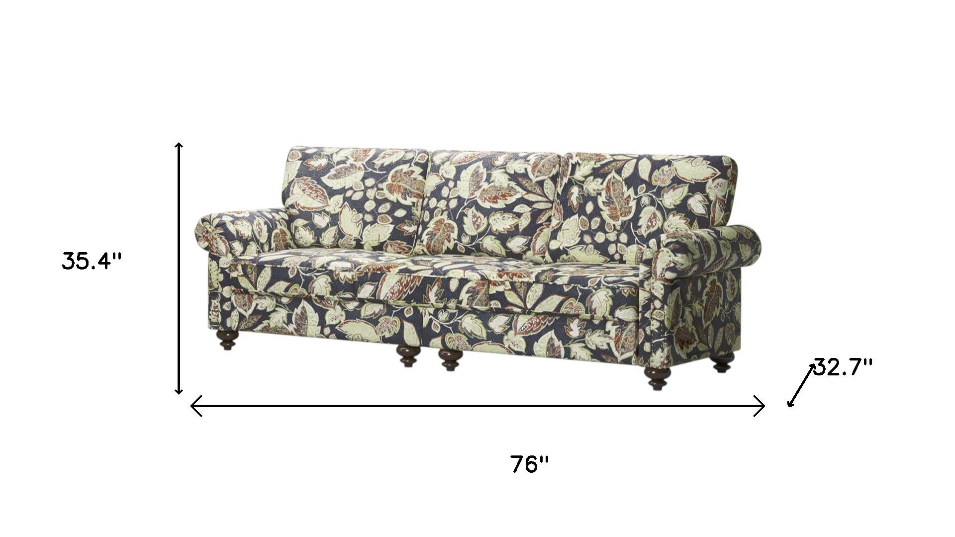 Transform your home's interior with this luxurious 76-inch sage navy blue burgundy and off white upholstered floral sofa. Built to last, this floral standard is upholstered with polyester blend that is designed to be soft, resilient, easy to maintain, and stand the test of time. Sinuous springs construction gives this piece strong support and makes it comfortable to sit even for long periods of time. Removable seat cushions make this sofa easy to manage. This piece includes high end detailing such as nailhead trim for a refined look. Round arms offer a comfy place to rest. Natural solid wood legs effortlessly elevate the room and add a touch of contemporary design. Built to last, this sofa will be a great centerpiece for your room. 35.40-inch h x 76.00-inch w x 32.70-inch d.