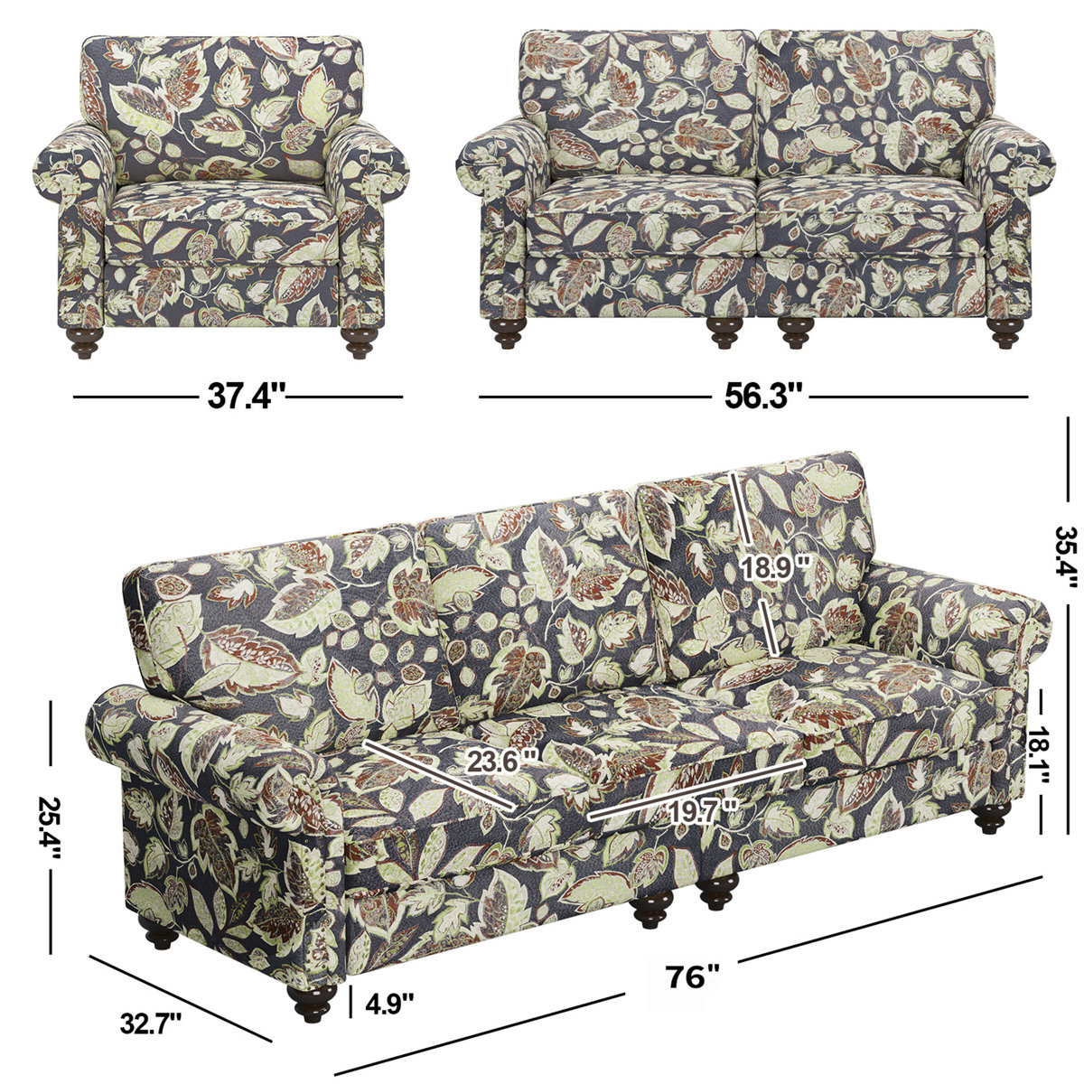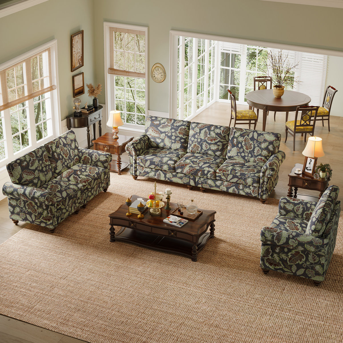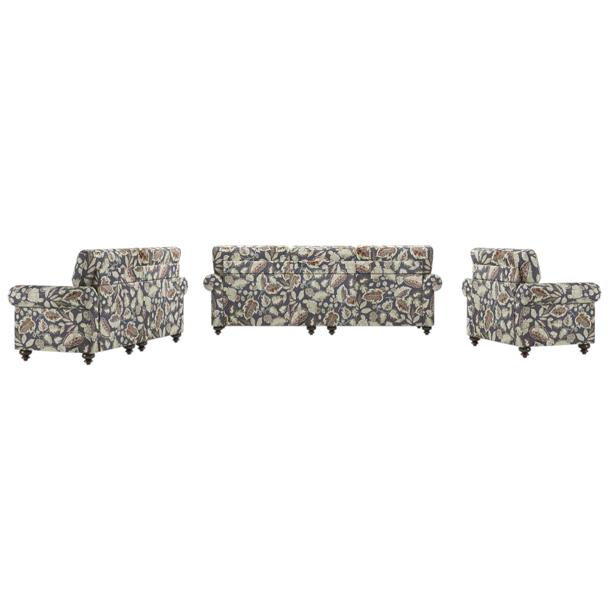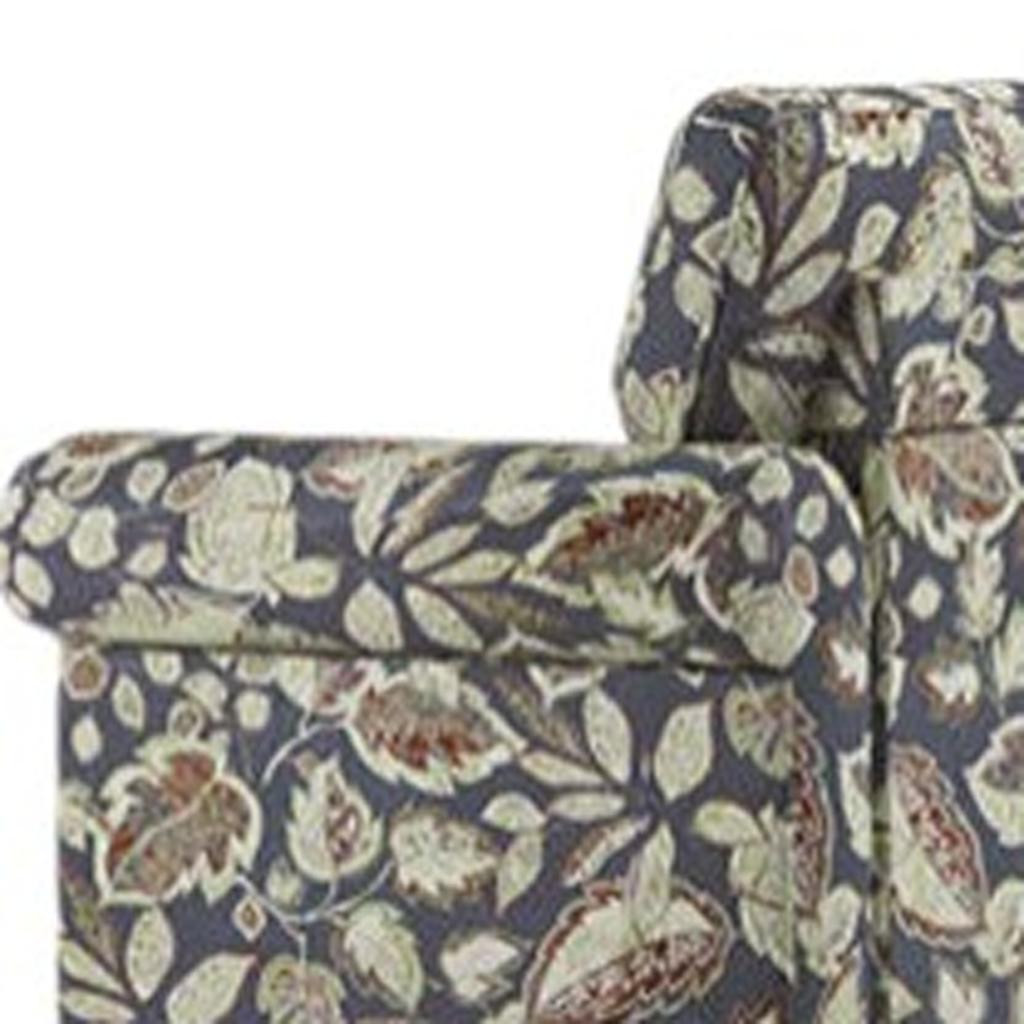 Add an air of fashion to your space with this fabulous 94-inch sage navy blue burgundy and off white upholstered floral solid wood sofa. This floral standard is made from soft, sturdy, and resilient polyester blend that is a good option for families and in frequently used seating areas. Sinuous springs construction gives this piece strong support and makes it comfortable to sit even for long periods of time. Removable seat cushions make this sofa easy to manage. This piece includes high end detailing such as nailhead trim for a refined look. Round arms offer a comfy place to rest. Mahogany solid wood legs effortlessly elevate the room and add a touch of contemporary design. A great showpiece for your room, this sofa is a must have. 35.40-inch h x 93.70-inch w x 65.40-inch d.