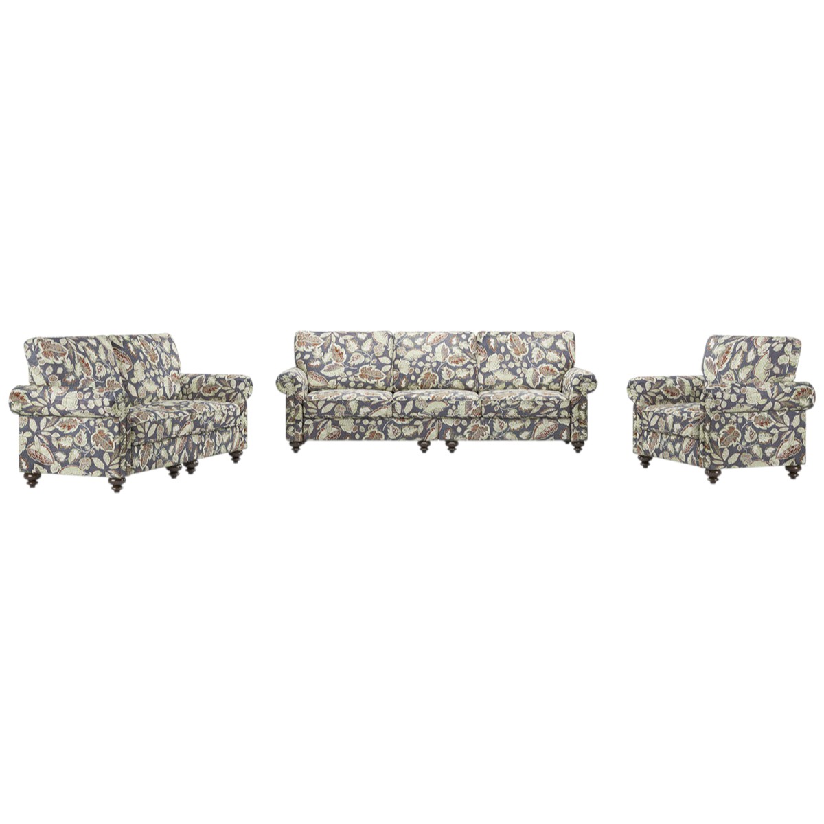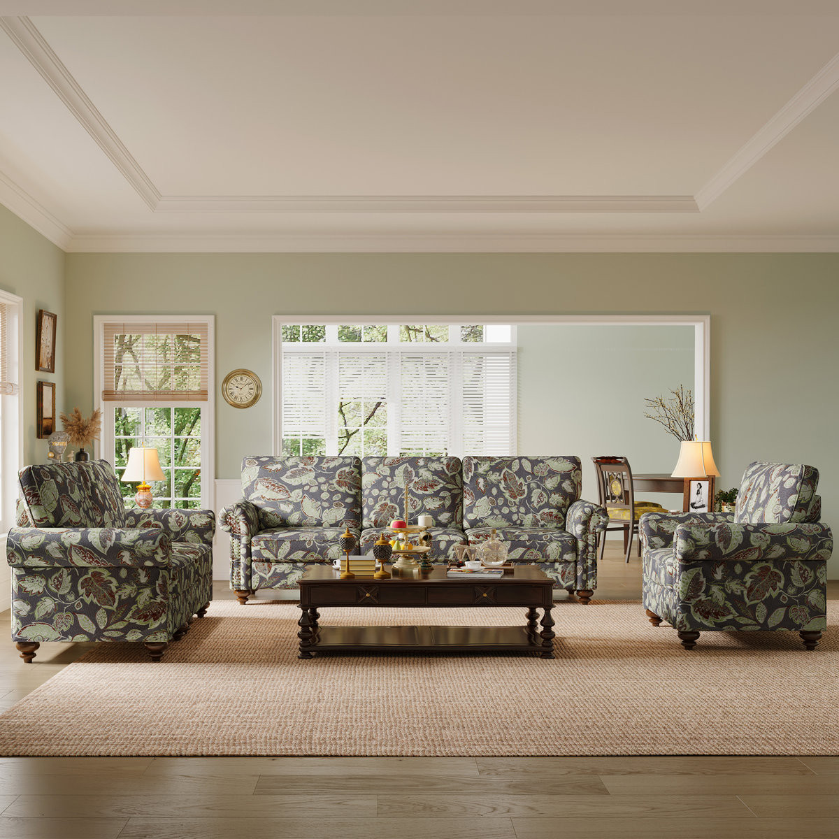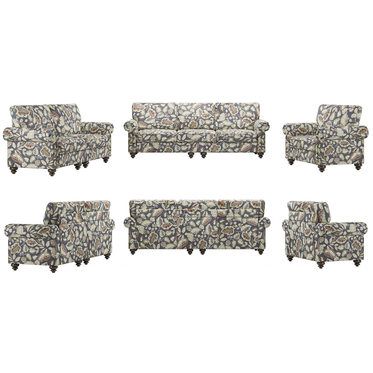 Add an air of fashion to your space with this fabulous 94-inch sage navy blue burgundy and off white upholstered floral solid wood sofa. This floral standard is made from soft, sturdy, and resilient polyester blend that is a good option for families and in frequently used seating areas. Sinuous springs construction gives this piece strong support and makes it comfortable to sit even for long periods of time. Removable seat cushions make this sofa easy to manage. This piece includes high end detailing such as nailhead trim for a refined look. Round arms offer a comfy place to rest. Mahogany solid wood legs effortlessly elevate the room and add a touch of contemporary design. A great showpiece for your room, this sofa is a must have. 35.40-inch h x 93.70-inch w x 65.40-inch d.