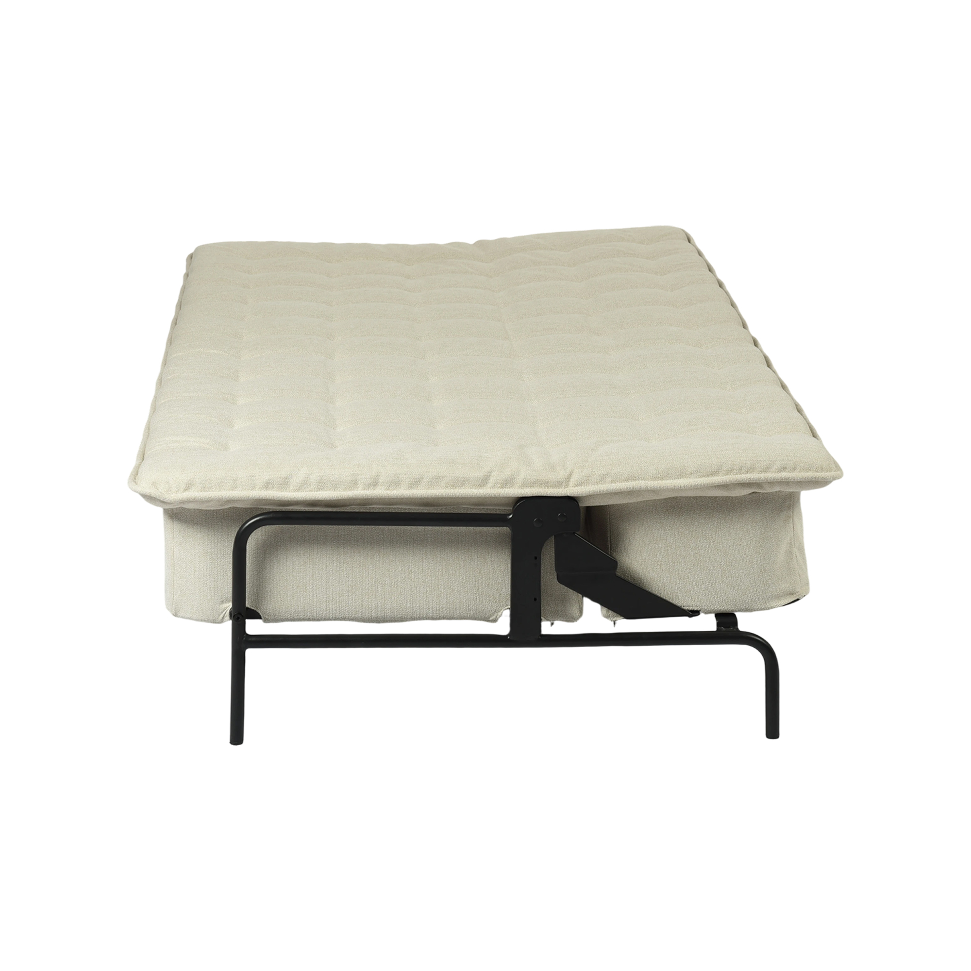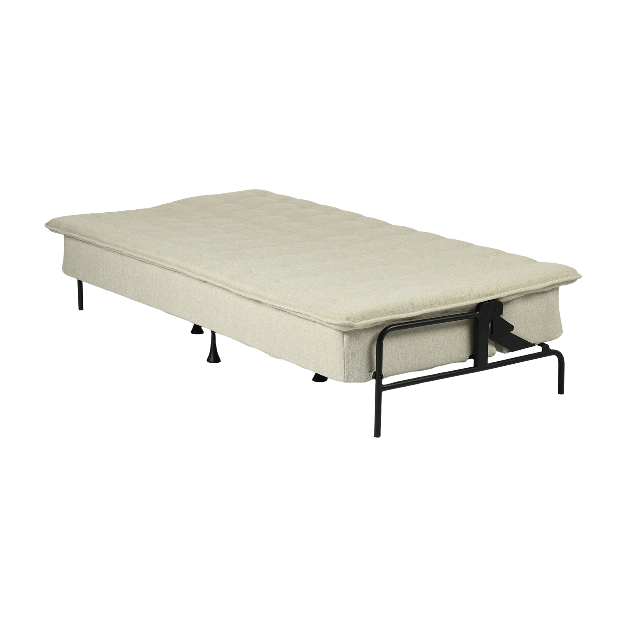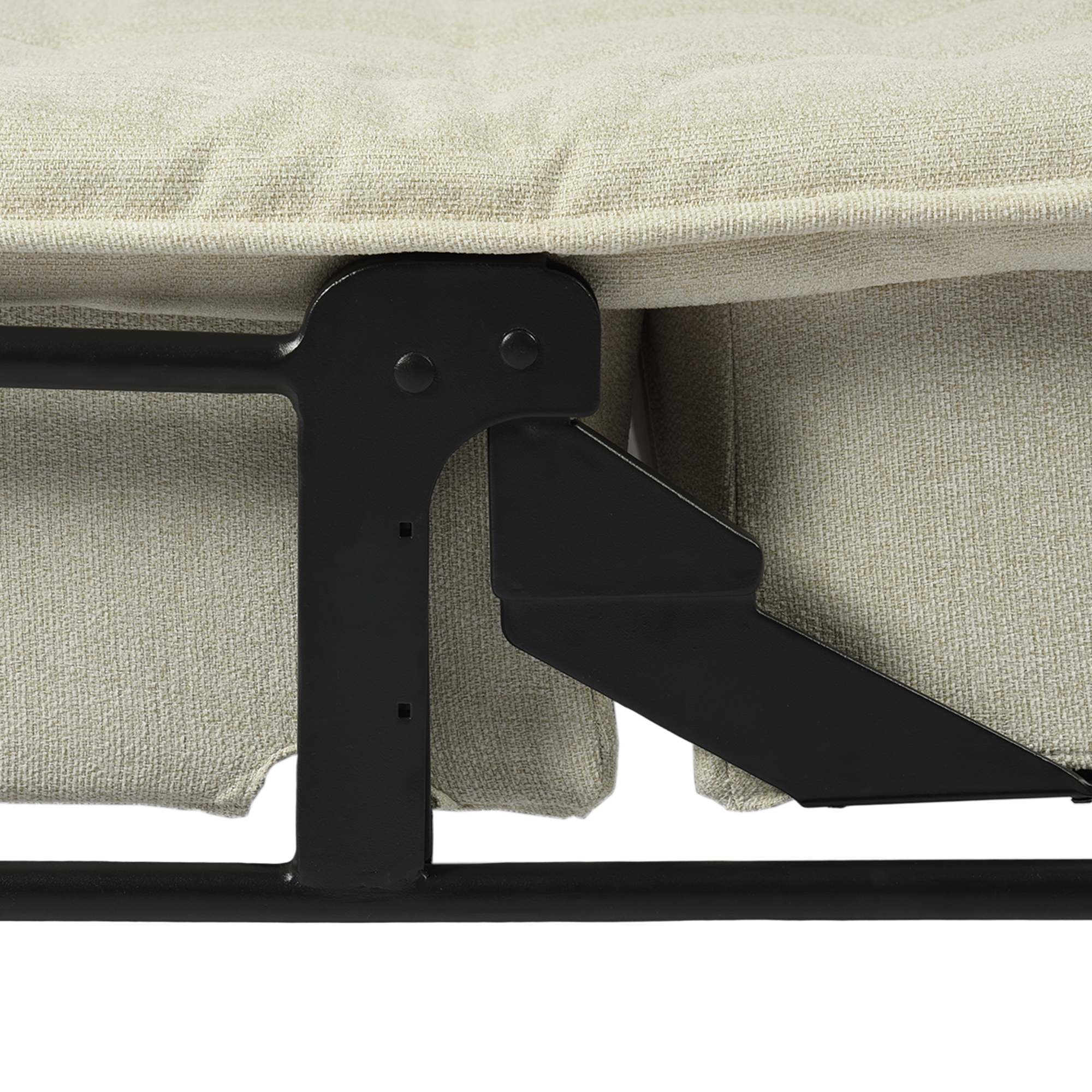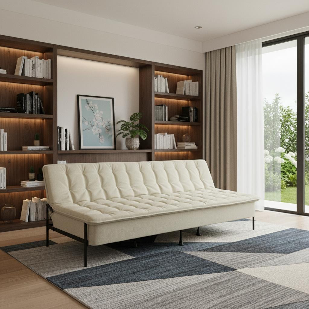Transform your home's interior with this luxurious 77-inch beige fabric convertible futon sleeper reclining sofa. Solid colors give you lots of decorative options and are easy to work into your decor scheme. Designed with an updated and refreshing style, this sofa is armless to create that unique contemporary or modern aesthetic. Black metal legs effortlessly elevate the room and add a touch of contemporary design. A great showpiece for your room, this sofa is a must have. 29.53-inch h x 76.77-inch w x 33.46-inch d.