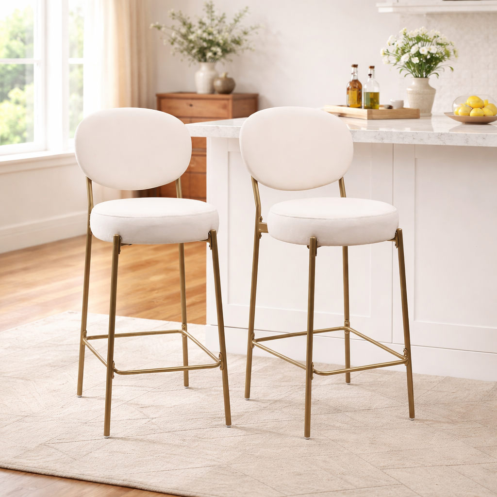 height bar chairs, low bar height bar chairs, bar height bar chairs, set 29" white gold velvet, gold velvet metal low bar |