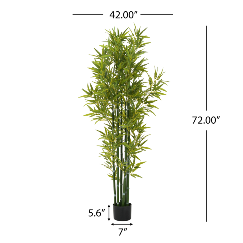 Set of two 42-inch green artificial bamboo in cylindrical black pot brings a refreshing touch to your home decor. These artificial bamboo trees are perfect for floor placement, adding height and elegance to any space. Crafted from durable plastic, they offer a lifelike appearance without the maintenance of real plants. The vibrant green color perfectly complements the sleek black cylindrical pots, making this set a stylish addition to any room. Ideal for enhancing your decor for occasions such as birthdays, these versatile plants can also be used outdoors. With two plants included in the set, you can create a harmonious arrangement that elevates your interior design effortlessly. Enjoy the beauty of nature indoors with this exquisite artificial plant collection. 72.00-inch h x 42.00-inch w x 42.00-inch d.