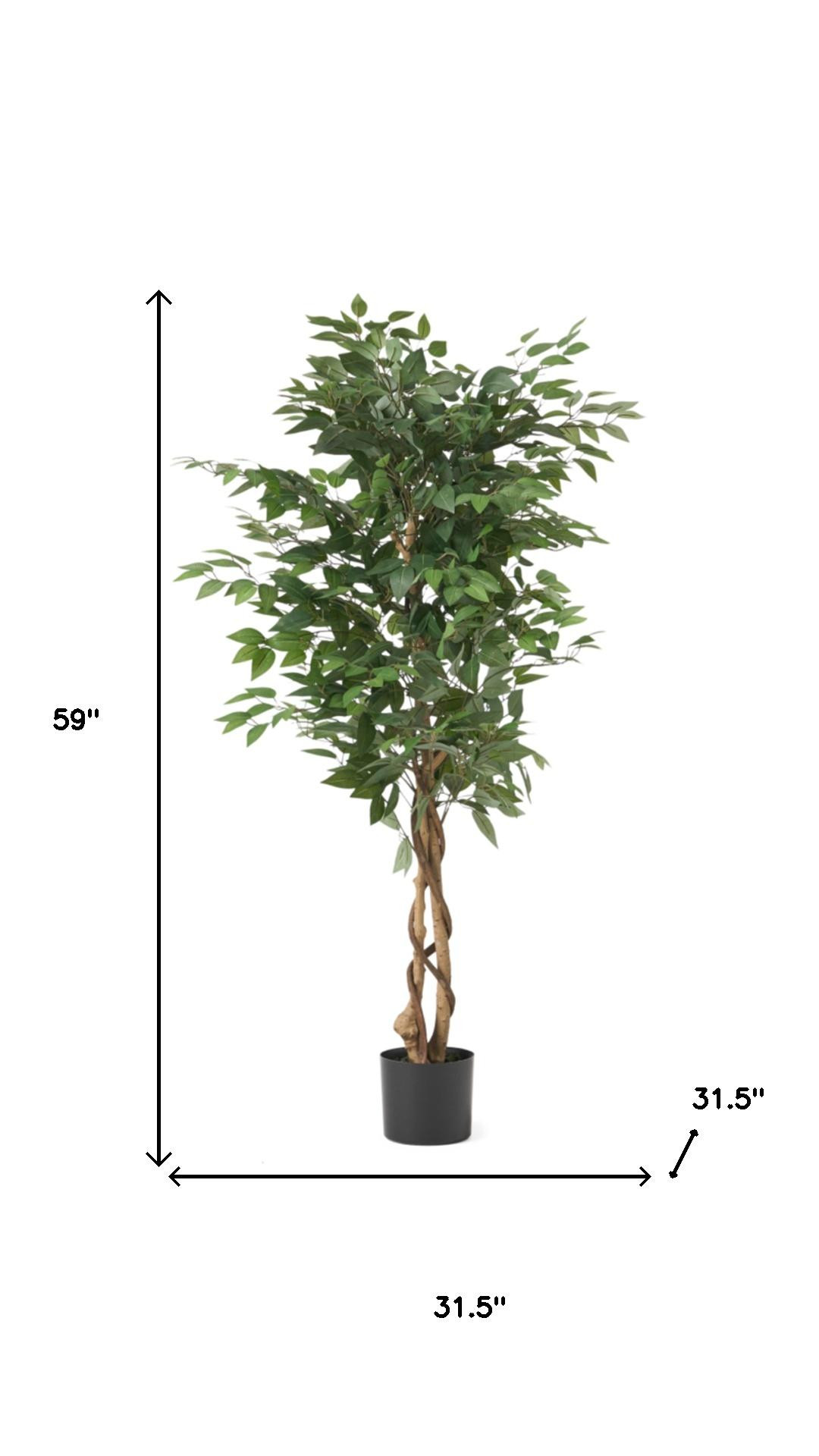 The 32-inch green artificial ficus in cylindrical black pot adds a touch of nature to any indoor space. This elegantly designed floor tree brings the lush beauty of ficus without the maintenance. Its vibrant green color offers a refreshing contrast against the sleek black cylindrical pot, enhancing your decor with a modern flair. Crafted from durable plastic, this artificial plant is perfect for year-round display and can easily brighten up your home or office. Whether for a birthday celebration or everyday elegance, this versatile piece suits any occasion. The base is included, ensuring stability and style in one package, making it an ideal choice for both indoor and outdoor settings. 59.00-inch h x 31.50-inch w x 31.50-inch d.