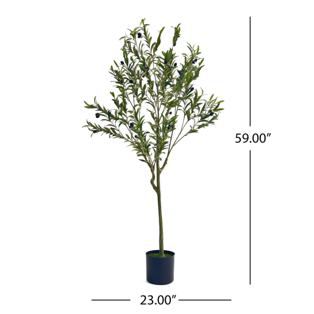 The 23-inch green artificial olive in cylindrical black pot is the perfect addition to your home decor. This stunning olive tree features a vibrant green color that brings a refreshing touch to any space. Ideal for floor placement, it adds height and elegance to your rooms. The artificial design allows for easy maintenance while ensuring year-round beauty without the worry of wilting. The pot, crafted from durable plastic, is elegantly colored in black, providing a modern contrast to the lush greenery. Suitable for outdoor use, it can enhance patios or balconies, creating an inviting atmosphere. Perfect for birthdays or any occasion, this decorative piece combines functionality with style to elevate your interior design. 59.00-inch h x 23.00-inch w x 23.00-inch d.