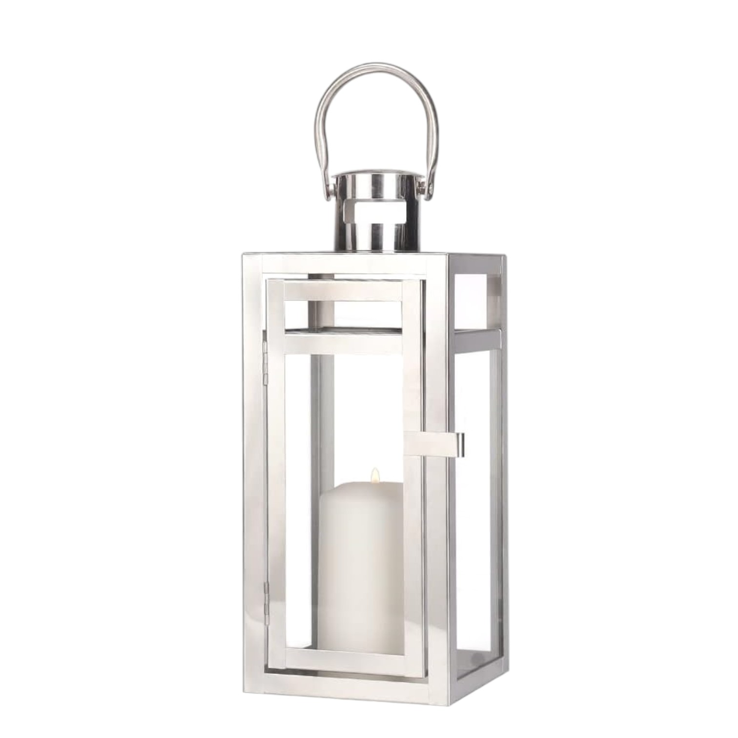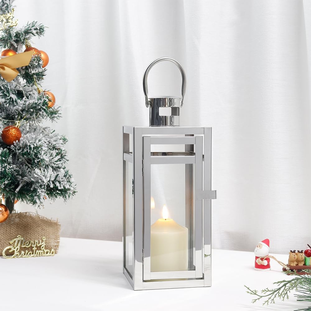 steel floor lantern candle holder, floor lantern candle holder, lantern candle holder, glass stainless steel floor lantern, 12" clear silver glass |
