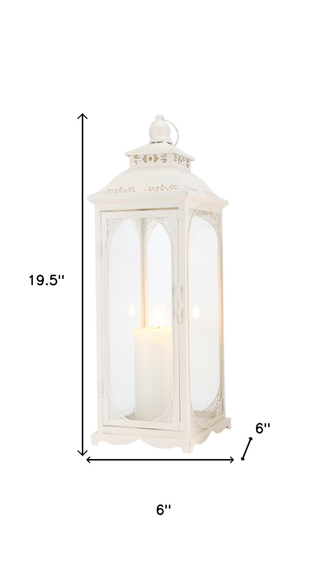 Stylize your tabletop, light up your back patio or add the perfect touch of low light to your living room with this set of three clear and white glass and metal floor lantern candle holders. This holder arrives in a set of 3. Dress up your home to impress every season with these fabulous candleholders that bring a delightful look and glow to your space. Ideal for everyday use but would also be a stunning accent for entertaining or a special event. These lanterns feature a slightly rustic, vintage style with clear glass panels and pierced filigree accents, and are a pretty decorative addition to your space on their own, with or without candles.