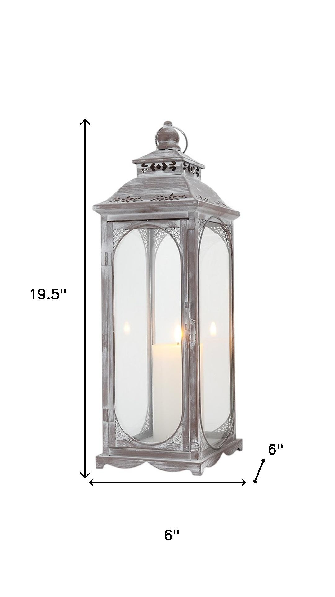 This set of three clear and gray glass and metal tabletop lantern candle holders is perfect whether you’re creating a beautiful tablescape centerpiece or looking to illuminate a space. Arriving in a set of 3 these candleholders create a well-lit centerpiece for any table setting. Dress up your home to impress every season with these fabulous candleholders that bring a delightful look and glow to your space. Ideal for everyday use but would also be a stunning accent for entertaining or a special event. These lanterns feature a rustic, vintage style with clear glass panels, purposeful distressing, and pierced filigree accents, and are a pretty decorative addition to your space on their own, with or without candles.