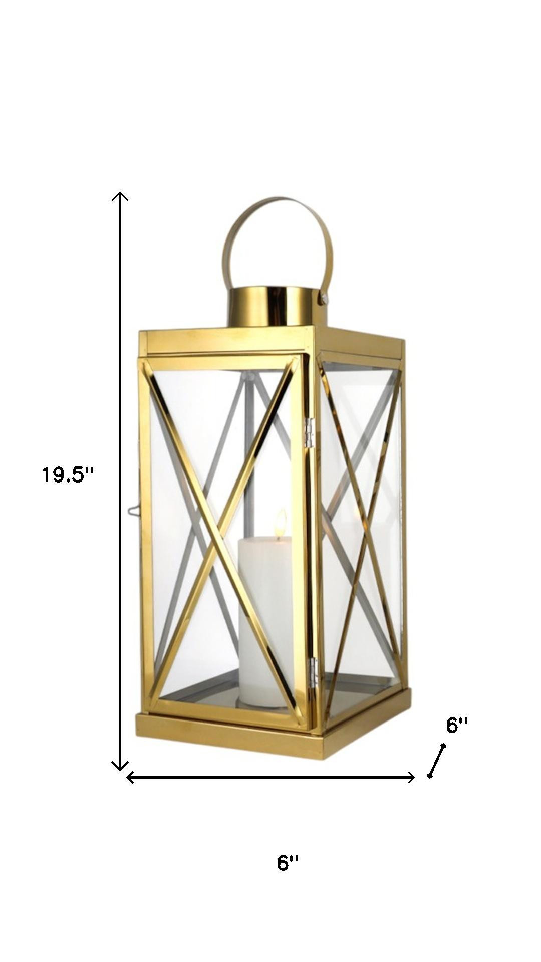 Stylize your tabletop, light up your back patio or add the perfect touch of low light to your living room with this set of three clear and gold glass and stainless steel floor lantern candle holders. Sold as a set of 3, this candleholder gives your space radiant illumination. Add an extra pop of personality to every corner of your home with this gorgeous candleholder set. Ideal for everyday use but would also be a stunning accent for entertaining or a special event. These lanterns feature a modern farmhouse style with clear glass panels and X design, making them a pretty decorative addition to your space on their own, with or without candles.