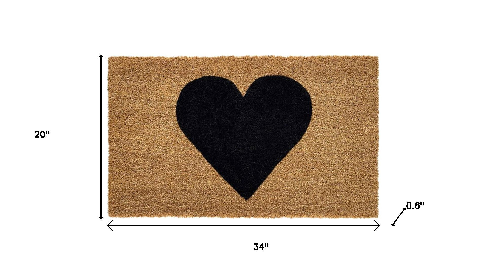 Known for it's extreme durability and ability to withstand heavy foot traffic, this 20-inch x 34-inch black and brown heart outdoor coir door mat is an ideal option for the front door or entrance way of your home or business. Crafted from coconut husks, this mat is not only functional but is an an eco-friendly and visually appealing accessory. The naturally bristled texture of coir is an efficient way to clean dirt and mud from shoes and is easy to clean and maintain. Add this welcome mat for Valentine's Day or anytime love is in the air, to create a practical yet inviting welcome to all who enter. 20.00-inch h x 34.00-inch w x 0.60-inch d.