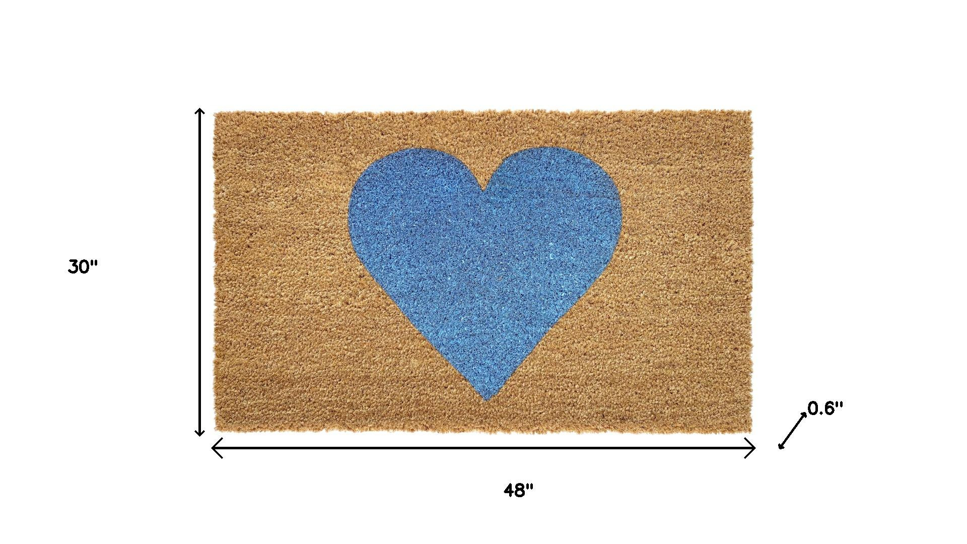 Known for it's extreme durability and ability to withstand heavy foot traffic, this 30-inch x 48-inch brown and blue heart outdoor coir door mat is an ideal option for the front door or entrance way of your home or business. Crafted from coconut husks, this mat is not only functional but is an an eco-friendly and visually appealing accessory. The naturally bristled texture of coir is an efficient way to clean dirt and mud from shoes and is easy to clean and maintain. 30.00-inch h x 48.00-inch w x 0.60-inch d.