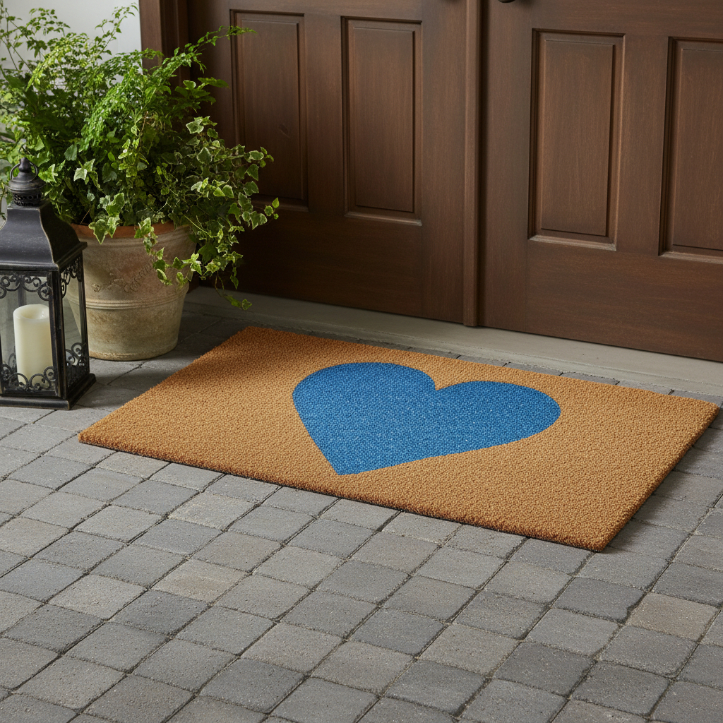 heart outdoor coir door mat, outdoor coir door mat, coir door mat, day heart outdoor coir door, 30" X 48" X ' blue brown valentine |