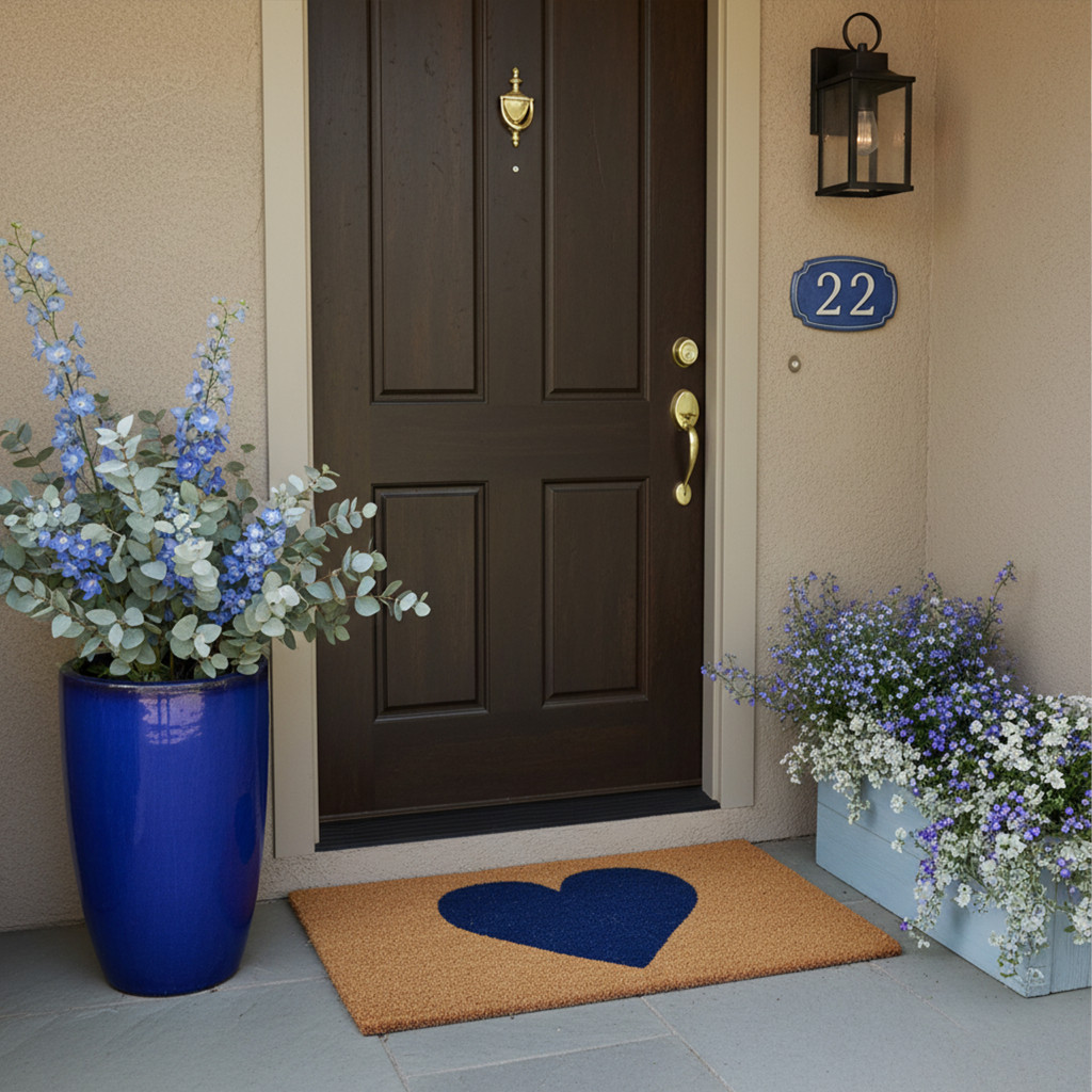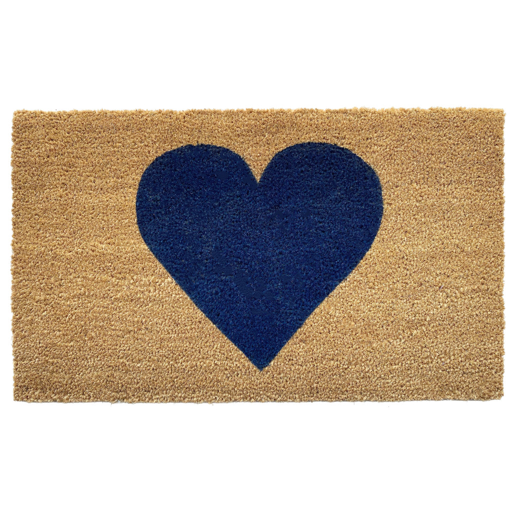 outdoor coir door mat, heart outdoor coir door mat, coir door mat, blue heart outdoor coir door, 30" X 48" brown dark blue |