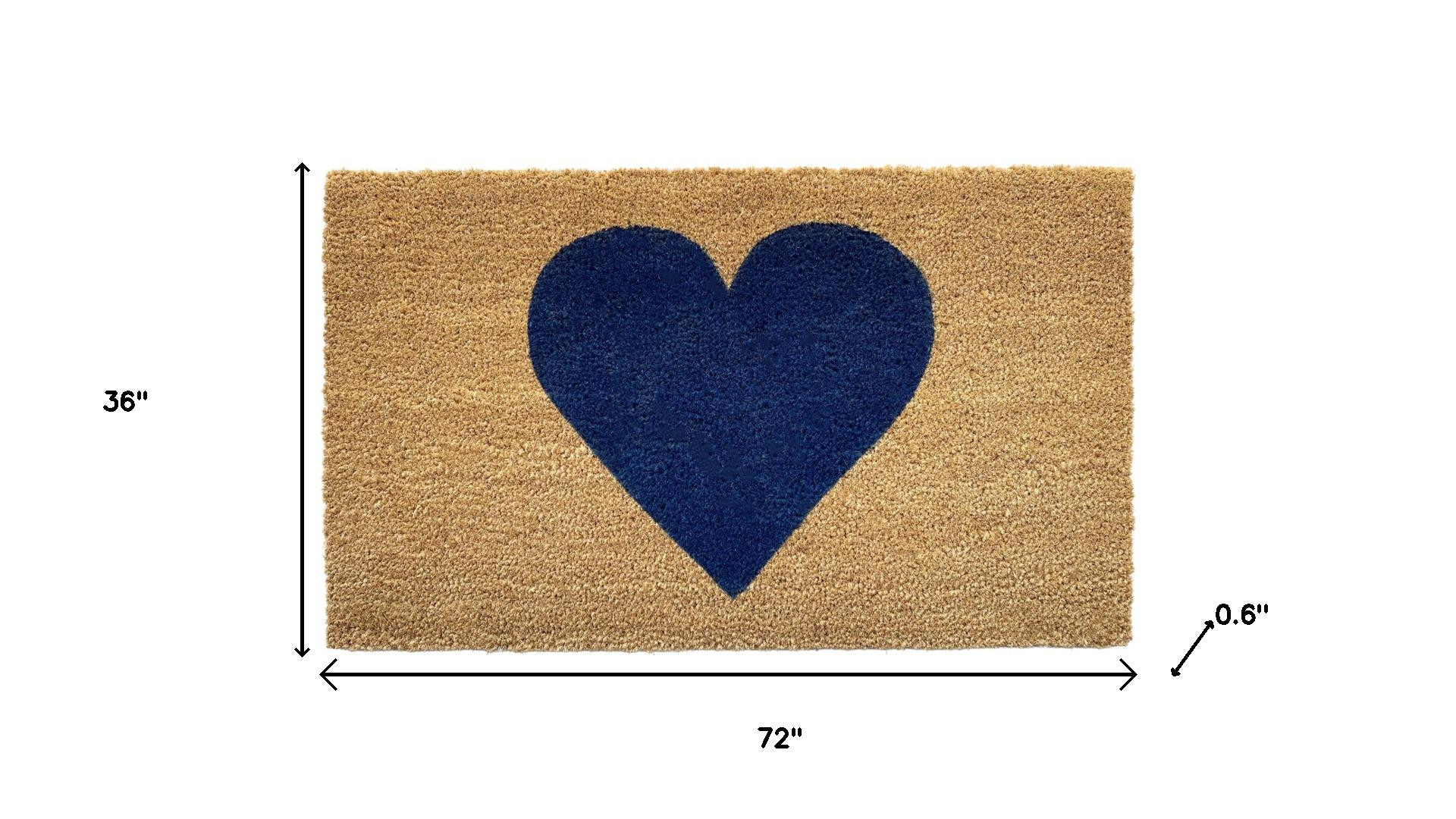 Known for it's extreme durability and ability to withstand heavy foot traffic, this 36-inch x 72-inch dark blue and brown valentine's day heart welcome outdoor coir door mat is an ideal option for the front door or entrance way of your home or business. Crafted from coconut husks, this mat is not only functional but is an an eco-friendly and visually appealing accessory. The naturally bristled texture of coir is an efficient way to clean dirt and mud from shoes and is easy to clean and maintain. Add this festive and decorative valentine's day mat to create a practical yet inviting welcome to all who enter. 36.00-inch h x 72.00-inch w x 0.60-inch d.