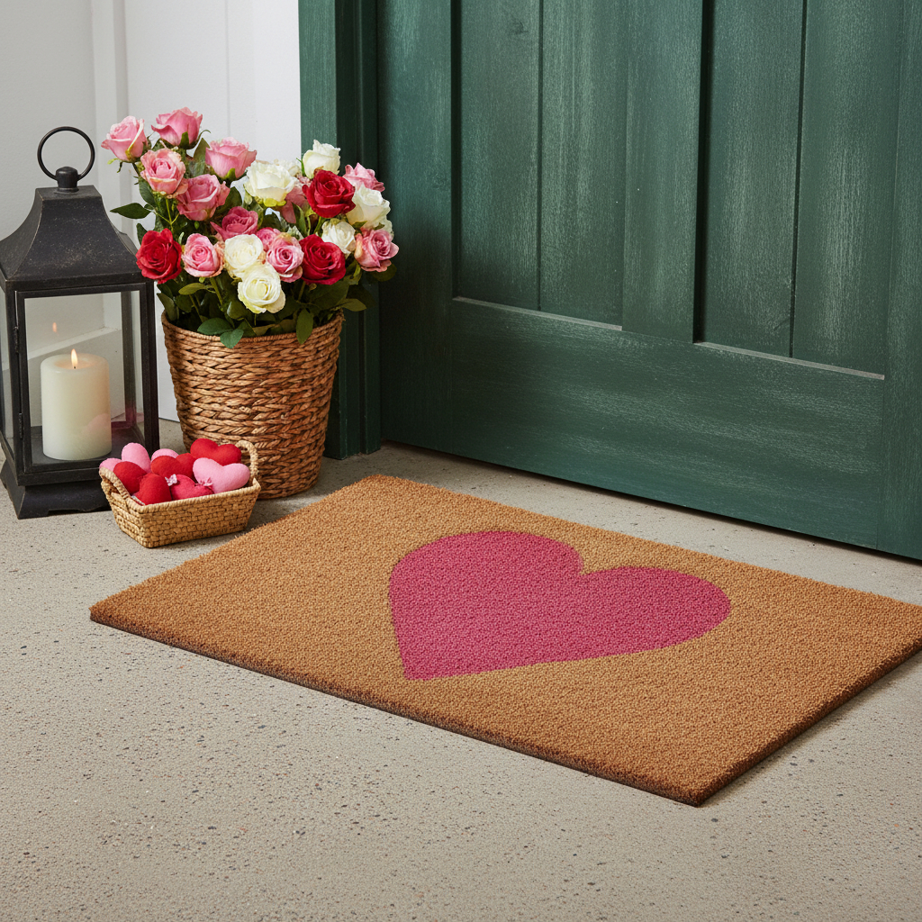 heart outdoor coir door mat, outdoor coir door mat, coir door mat, pink heart outdoor coir door, 17" X 29" brown pink heart |