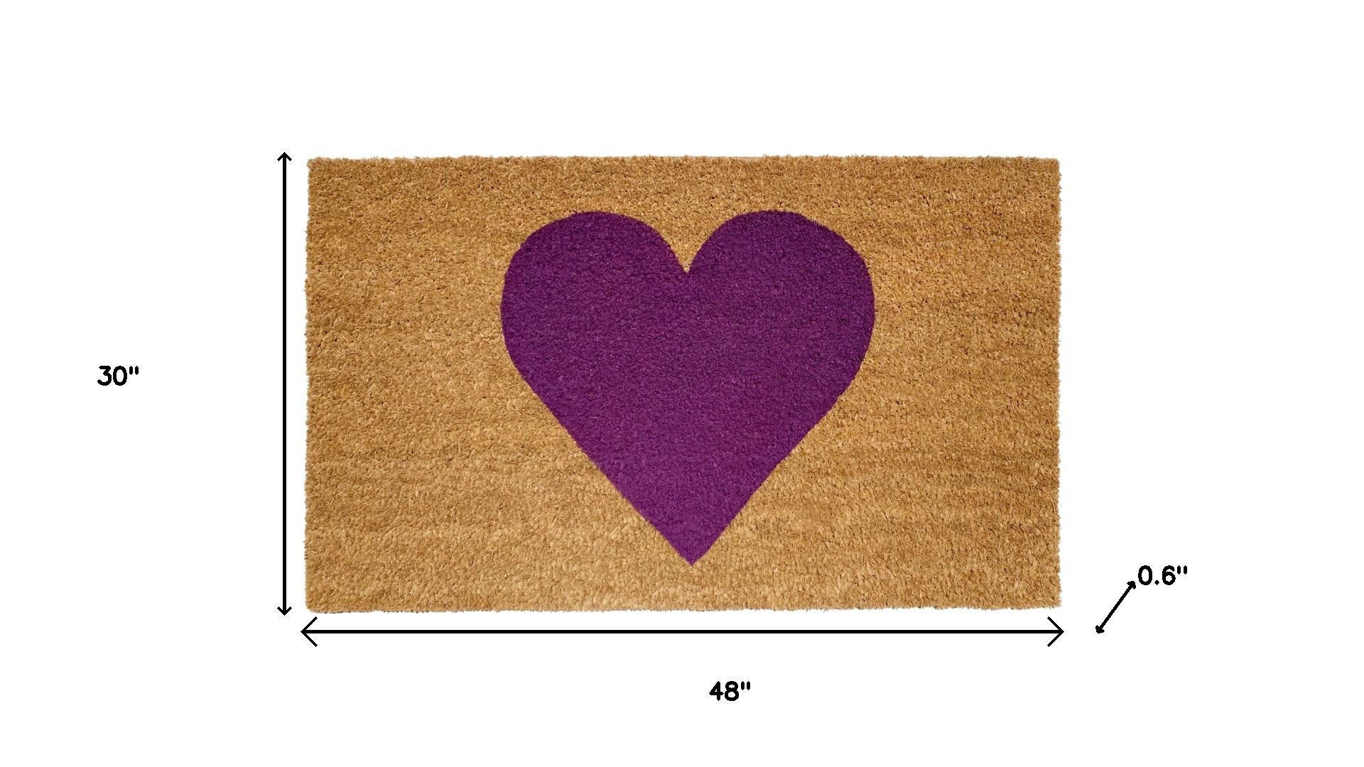 Known for it's extreme durability and ability to withstand heavy foot traffic, this 30-inch x 48-inch brown and purple heart outdoor coir door mat is an ideal option for the front door or entrance way of your home or business. Crafted from coconut husks, this mat is not only functional but is an an eco-friendly and visually appealing accessory. The naturally bristled texture of coir is an efficient way to clean dirt and mud from shoes and is easy to clean and maintain. Add this festive and decorative mat to create a practical yet inviting welcome to all who enter. Add this decorative mat to create a practical yet inviting welcome to all who enter. 30.00-inch h x 48.00-inch w x 0.60-inch d.