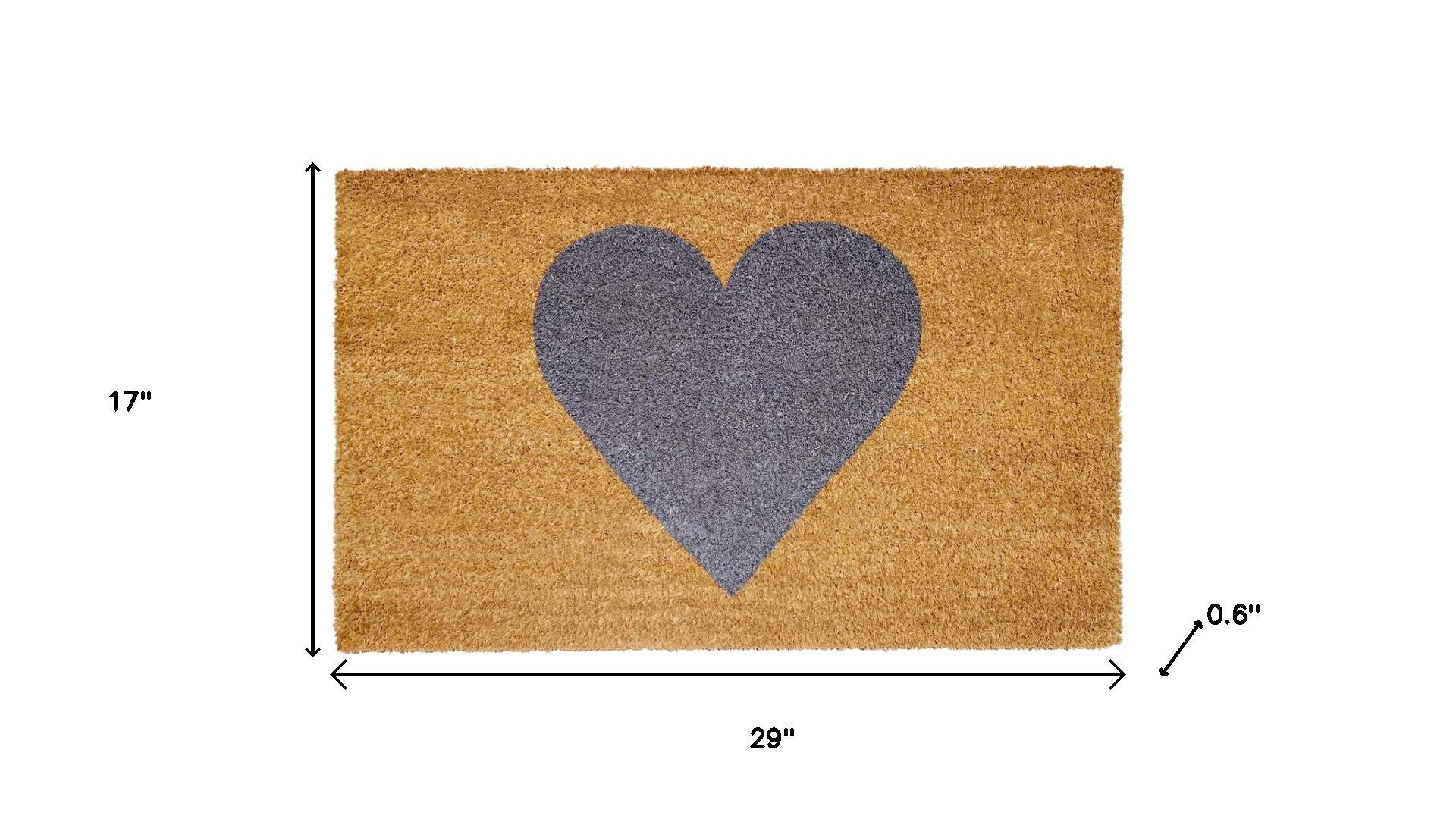Known for it's extreme durability and ability to withstand heavy foot traffic, this 17-inch x 29-inch brown and gray heart outdoor coir door mat is an ideal option for the front door or entrance way of your home or business. Crafted from coconut husks, this mat is not only functional but is an an eco-friendly and visually appealing accessory. The naturally bristled texture of coir is an efficient way to clean dirt and mud from shoes and is easy to clean and maintain. Add this festive and decorative mat to create a practical yet inviting welcome to all who enter. Add this decorative mat to create a practical yet inviting welcome to all who enter. 17.00-inch h x 29.00-inch w x 0.60-inch d.