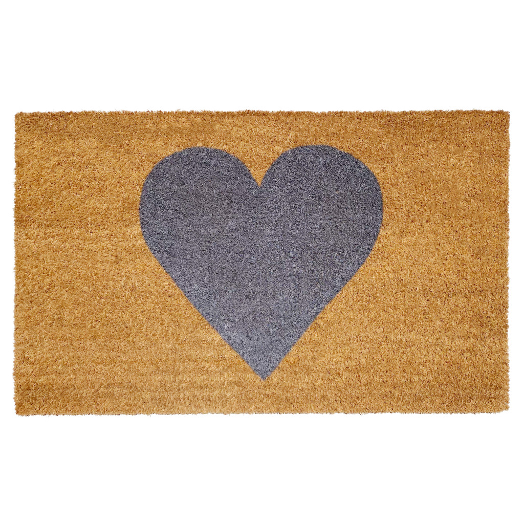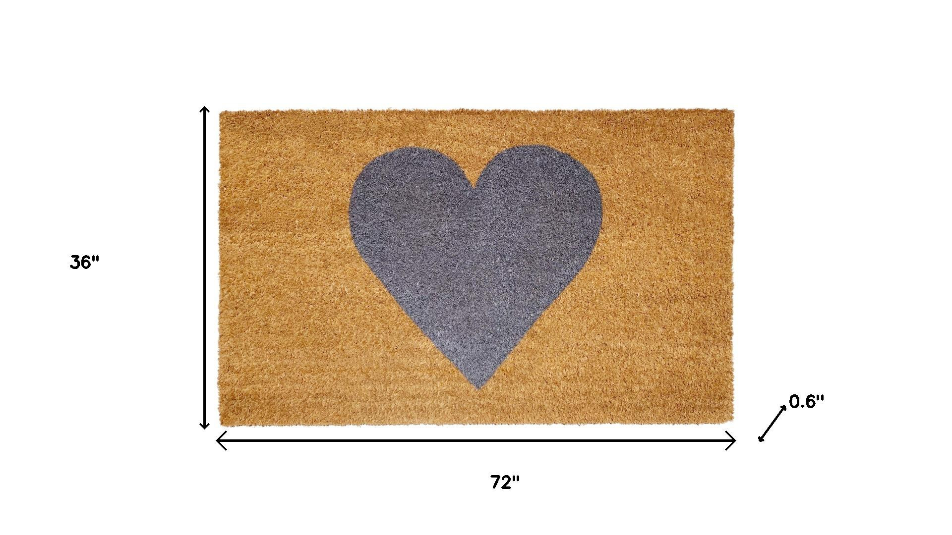Known for it's extreme durability and ability to withstand heavy foot traffic, this 36-inch x 72-inch brown and gray heart outdoor coir door mat is an ideal option for the front door or entrance way of your home or business. Crafted from coconut husks, this mat is not only functional but is an an eco-friendly and visually appealing accessory. The naturally bristled texture of coir is an efficient way to clean dirt and mud from shoes and is easy to clean and maintain. Add this festive and decorative mat to create a practical yet inviting welcome to all who enter. Add this decorative mat to create a practical yet inviting welcome to all who enter. 36.00-inch h x 72.00-inch w x 0.60-inch d.