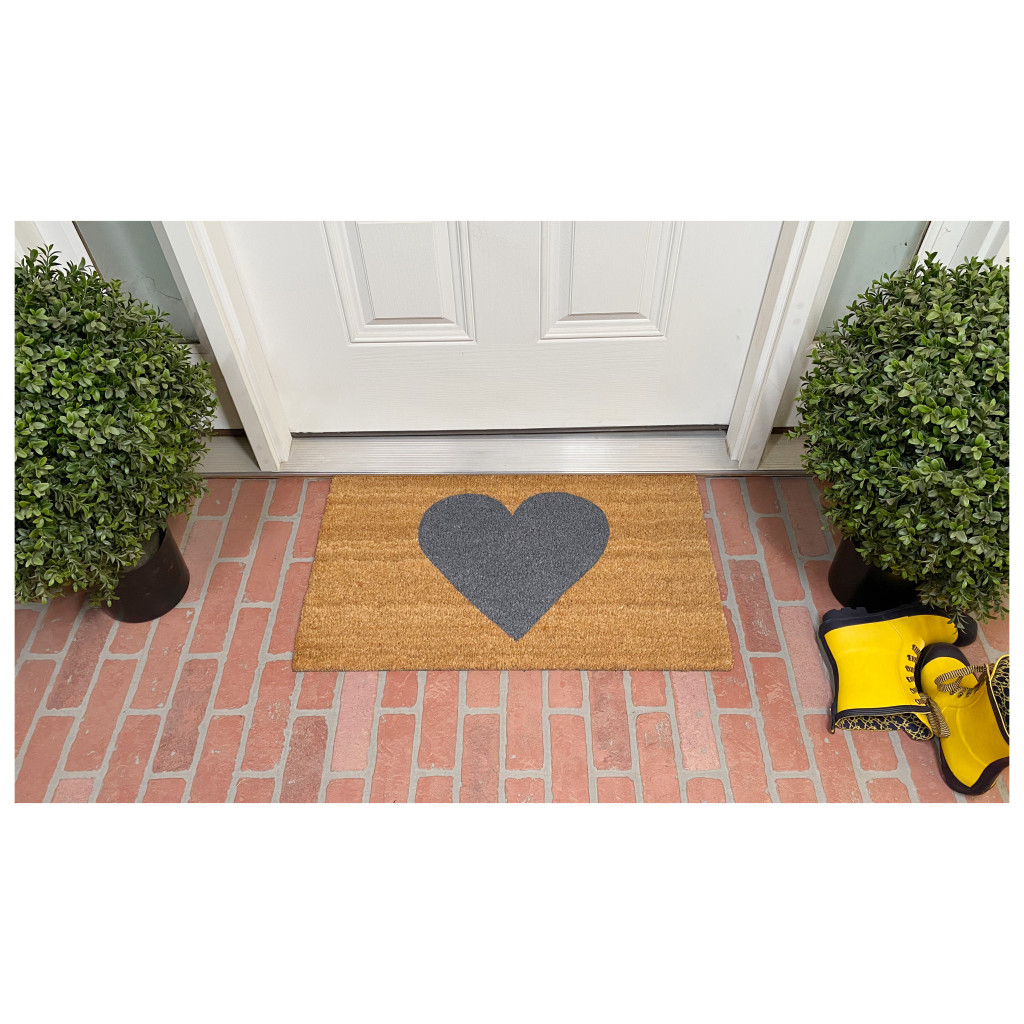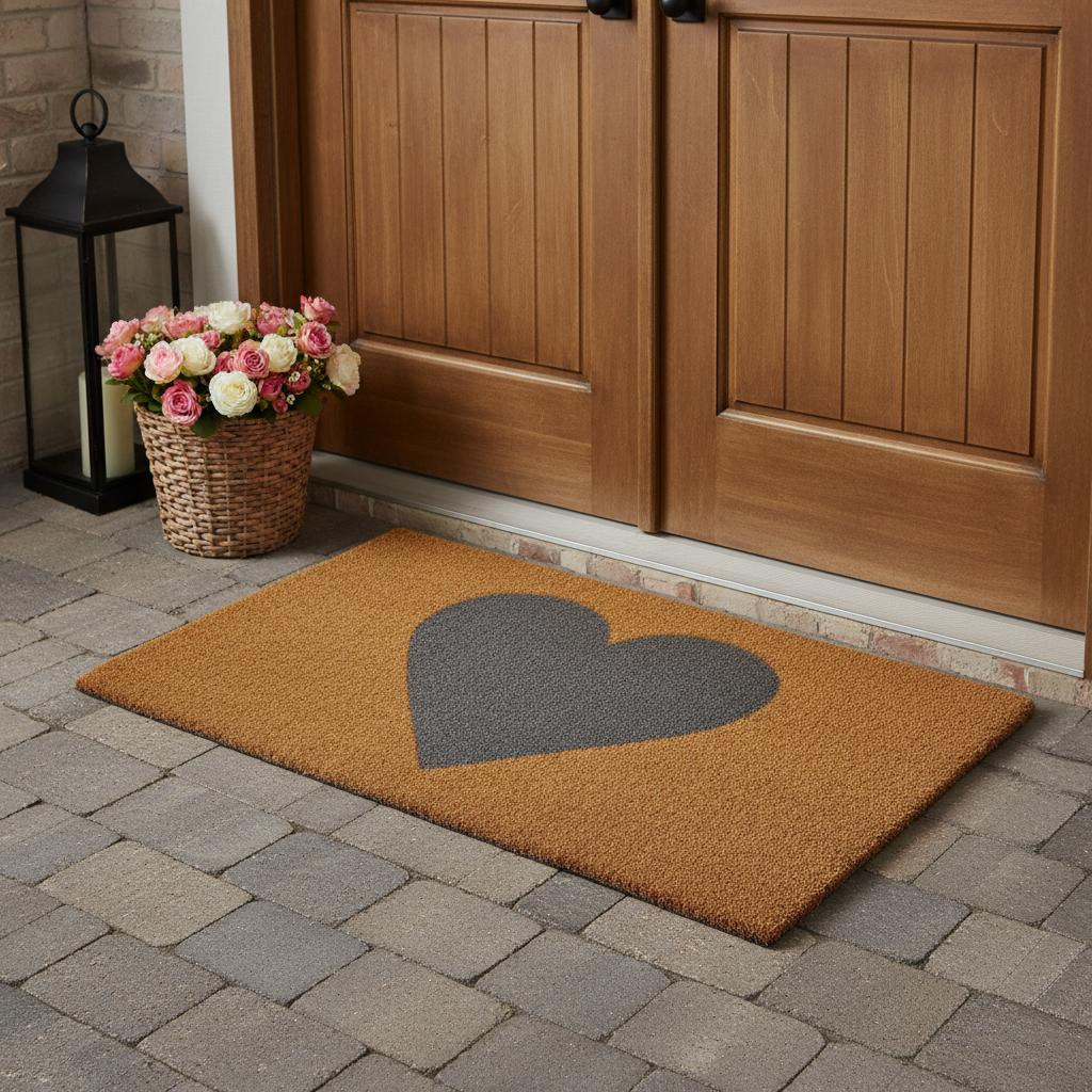 heart outdoor coir door mat, outdoor coir door mat, coir door mat, gray heart outdoor coir door, 36" X 72" brown gray heart |