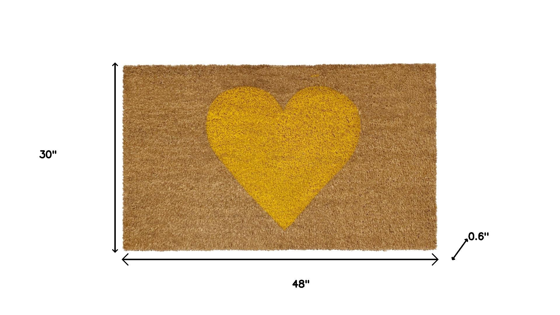 Known for it's extreme durability and ability to withstand heavy foot traffic, this 30-inch x 48-inch brown and yellow heart outdoor coir door mat is an ideal option for the front door or entrance way of your home or business. Crafted from coconut husks, this mat is not only functional but is an an eco-friendly and visually appealing accessory. The naturally bristled texture of coir is an efficient way to clean dirt and mud from shoes and is easy to clean and maintain. Add this festive and decorative mat to create a practical yet inviting welcome to all who enter. Add this decorative mat to create a practical yet inviting welcome to all who enter. 30.00-inch h x 48.00-inch w x 0.60-inch d.