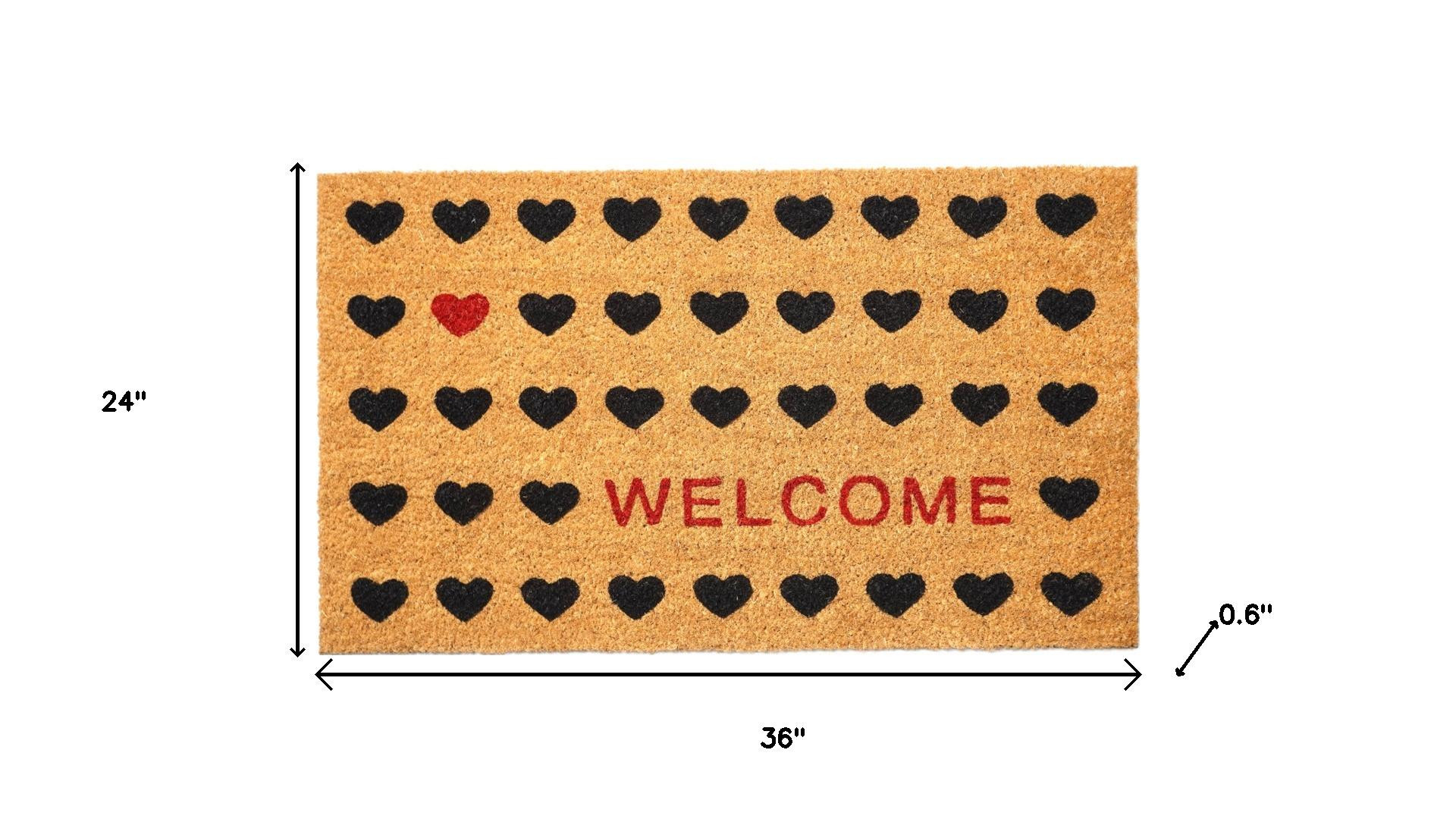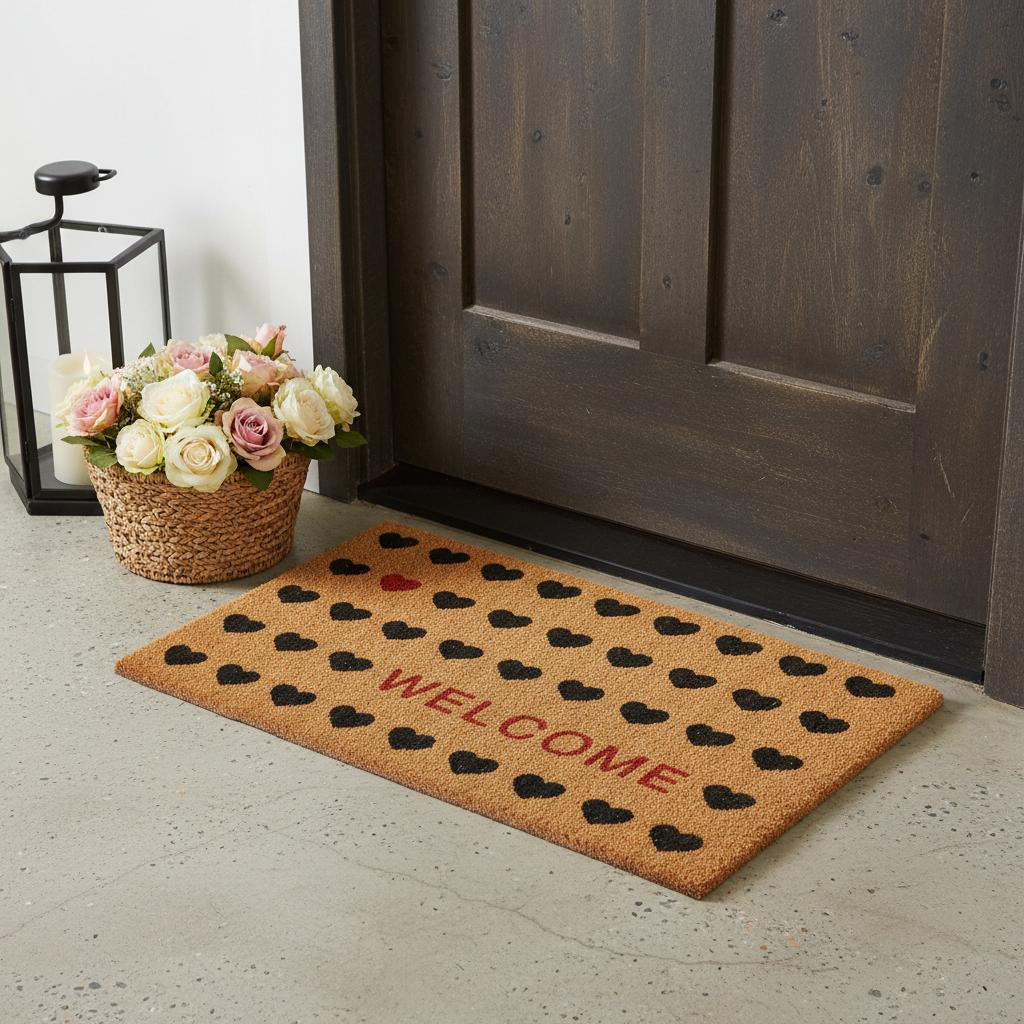 welcome outdoor coir door mat, outdoor coir door mat, coir door mat, hearts welcome outdoor coir door, 24" X 36" brown black red hearts |