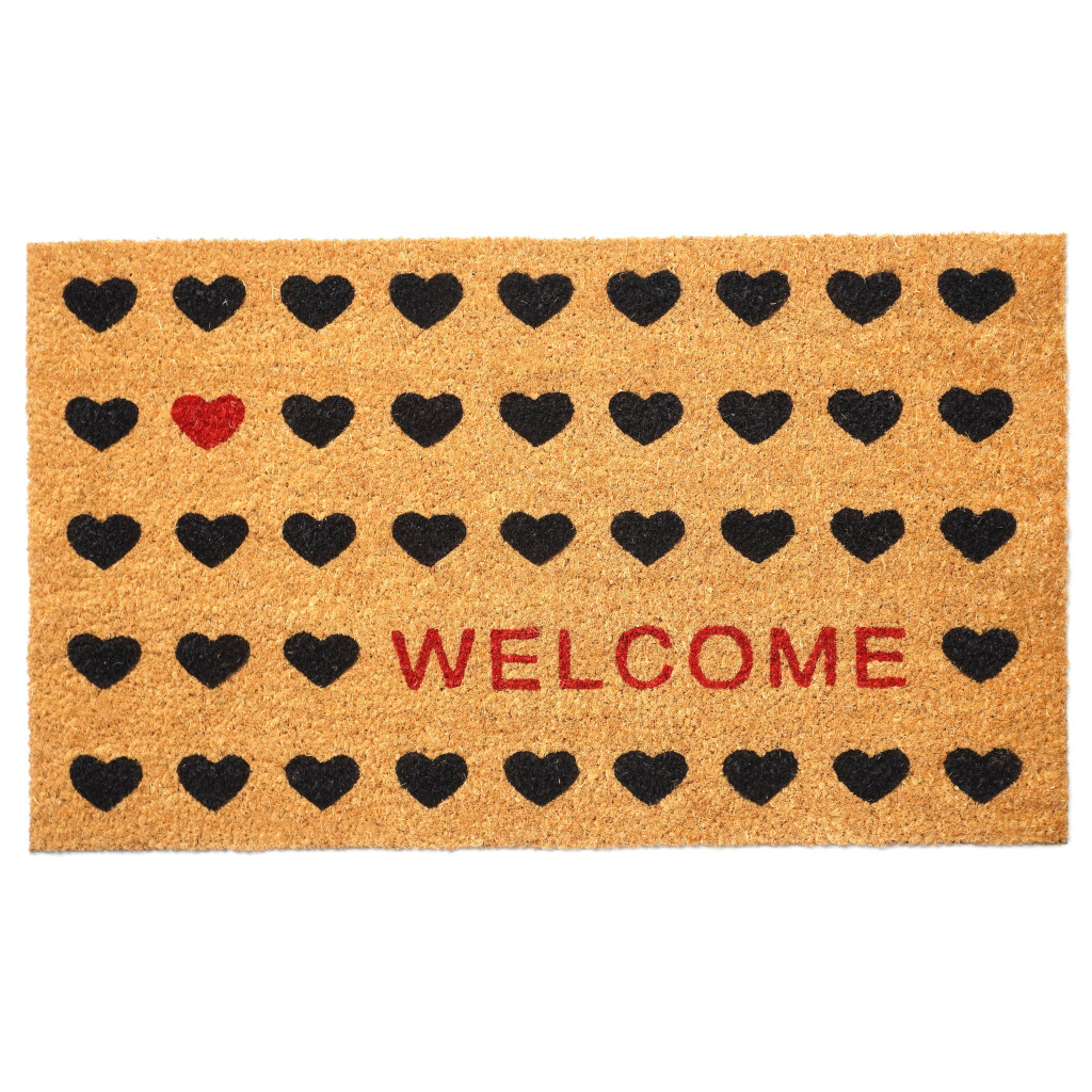 welcome outdoor coir door mat, outdoor coir door mat, coir door mat, hearts welcome outdoor coir door, 36" X 72" brown black red |