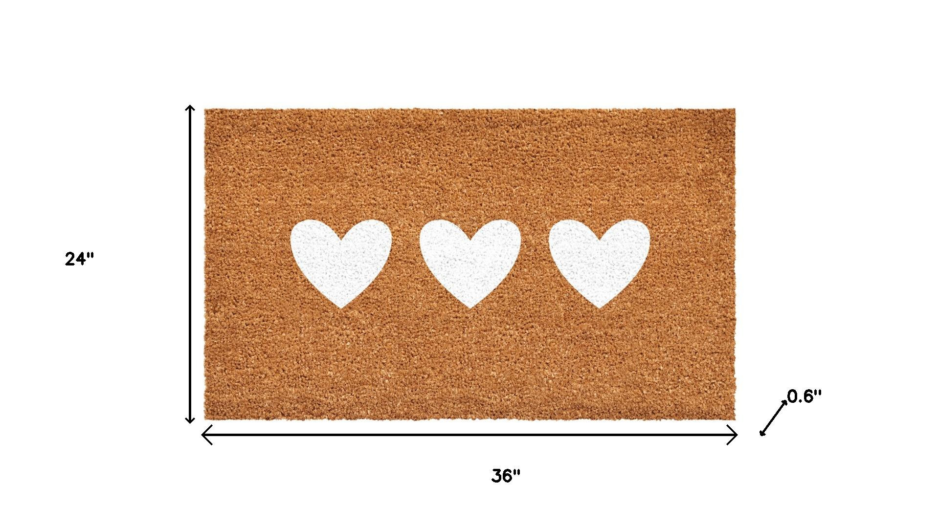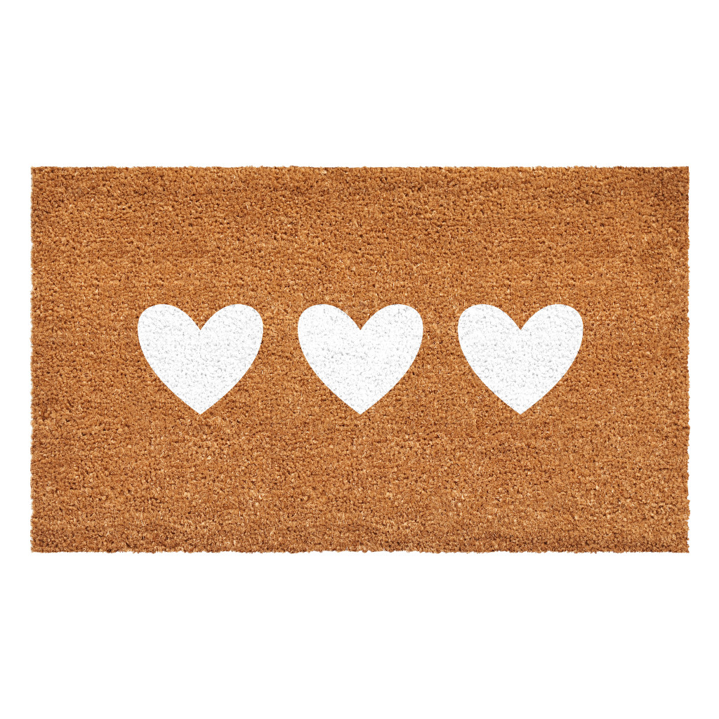 Known for it's extreme durability and ability to withstand heavy foot traffic, this 24-inch x 36-inch brown and white heart outdoor coir door mat is an ideal option for the front door or entrance way of your home or business. Crafted from coconut husks, this mat is not only functional but is an an eco-friendly and visually appealing accessory. The naturally bristled texture of coir is an efficient way to clean dirt and mud from shoes and is easy to clean and maintain. Add this festive and decorative mat to create a practical yet inviting welcome to all who enter. Add this decorative mat to create a practical yet inviting welcome to all who enter. 24.00-inch h x 36.00-inch w x 0.60-inch d.