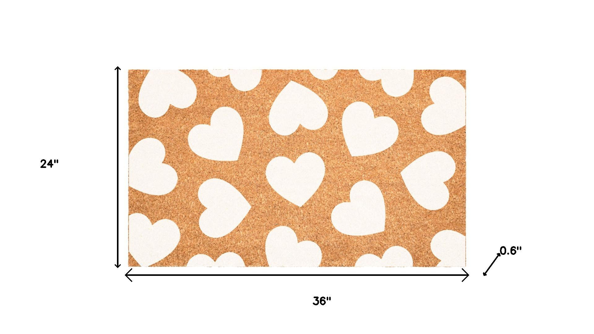 Known for it's extreme durability and ability to withstand heavy foot traffic, this 24-inch x 36-inch brown and white hearts outdoor coir door mat is an ideal option for the front door or entrance way of your home or business. Crafted from coconut husks, this mat is not only functional but is an an eco-friendly and visually appealing accessory. The naturally bristled texture of coir is an efficient way to clean dirt and mud from shoes and is easy to clean and maintain. Add this festive and decorative mat to create a practical yet inviting welcome to all who enter. Add this decorative mat to create a practical yet inviting welcome to all who enter. 24.00-inch h x 36.00-inch w x 0.60-inch d.
