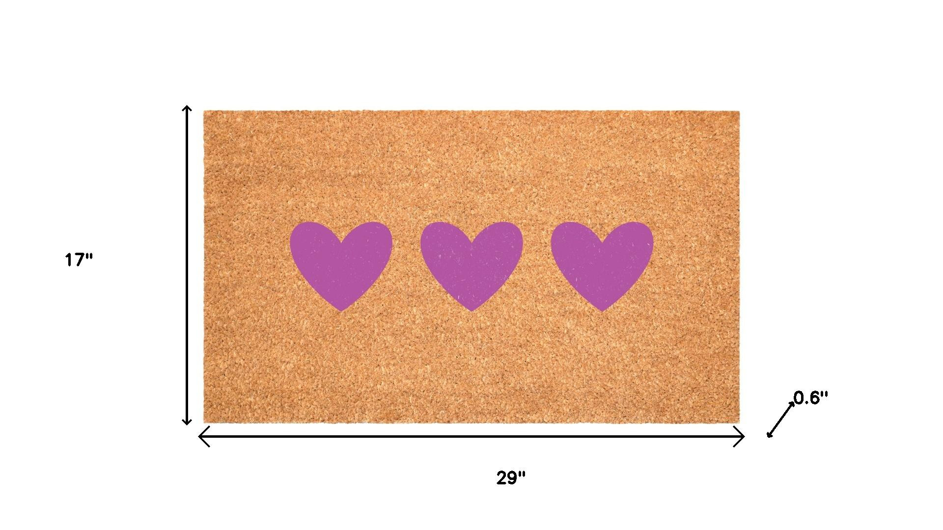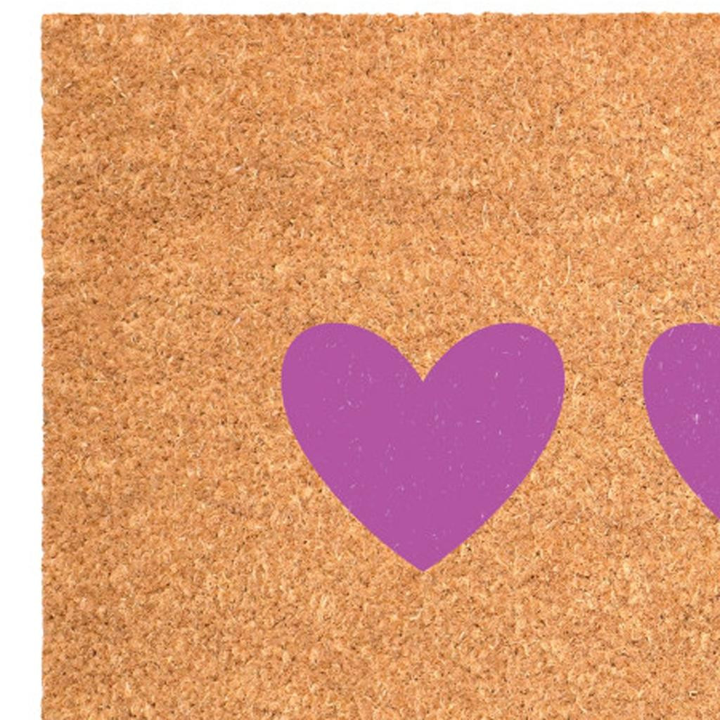 Known for it's extreme durability and ability to withstand heavy foot traffic, this 17-inch x 29-inch brown and pink heart outdoor coir door mat is an ideal option for the front door or entrance way of your home or business. Crafted from coconut husks, this mat is not only functional but is an an eco-friendly and visually appealing accessory. The naturally bristled texture of coir is an efficient way to clean dirt and mud from shoes and is easy to clean and maintain. Add this festive and decorative mat to create a practical yet inviting welcome to all who enter. Add this decorative mat to create a practical yet inviting welcome to all who enter. 17.00-inch h x 29.00-inch w x 0.60-inch d.