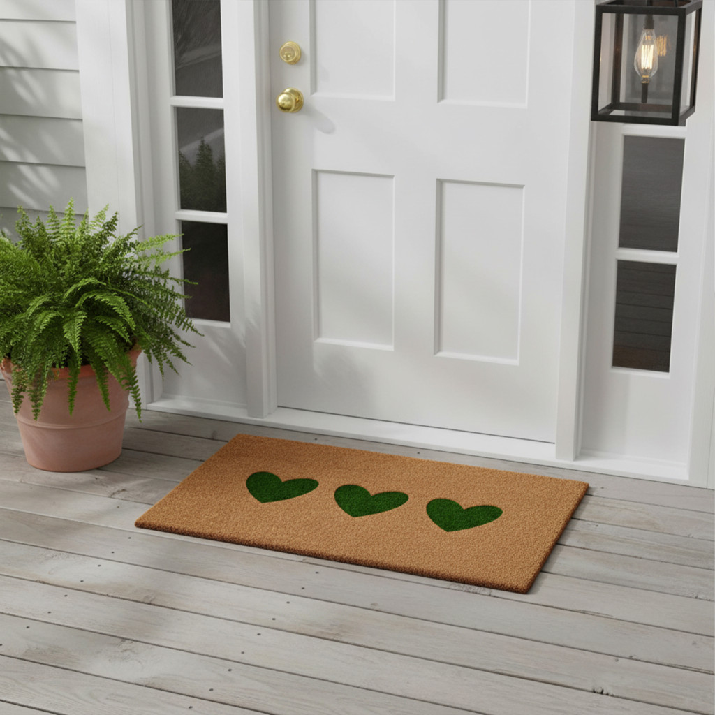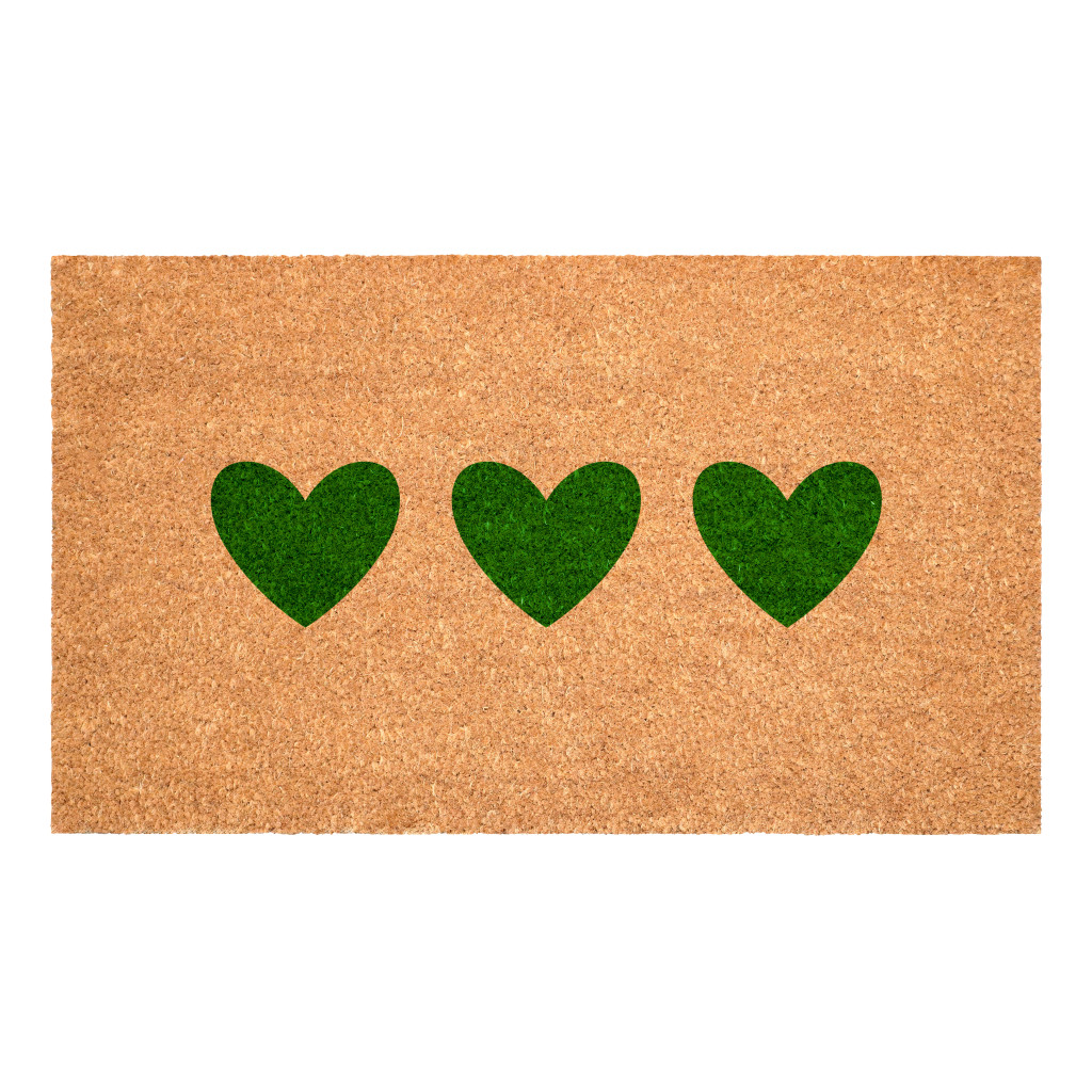 heart outdoor coir door mat, outdoor coir door mat, coir door mat, green heart outdoor coir door, 17" X 29" brown green heart |