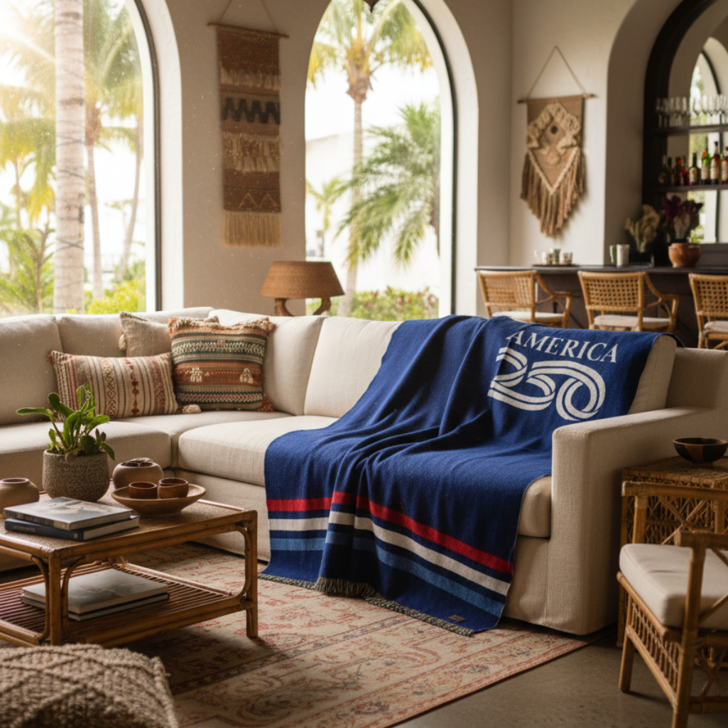 Bring warmth, comfort and style to your space with this 54-inch x 74-inch red white and blue wool acrylic blend throw blanket. Hand woven by true artisans, this good looking throw will elevate its surroundings with its genuine and artisanal style. This woven throw offers sumptuous softness and texture that you'll cherish for years to come. Made from wool acrylic blend this blanket will make a great addition to any room it's added to. Add extra texture to your decor and turn your room into an inviting space. Perfect for your favorite chair, bed or lounging on the couch, this blanket helps bring a warm and fashionable flair to your space. 74.00-inch h x 54.00-inch w x 1.00-inch d.