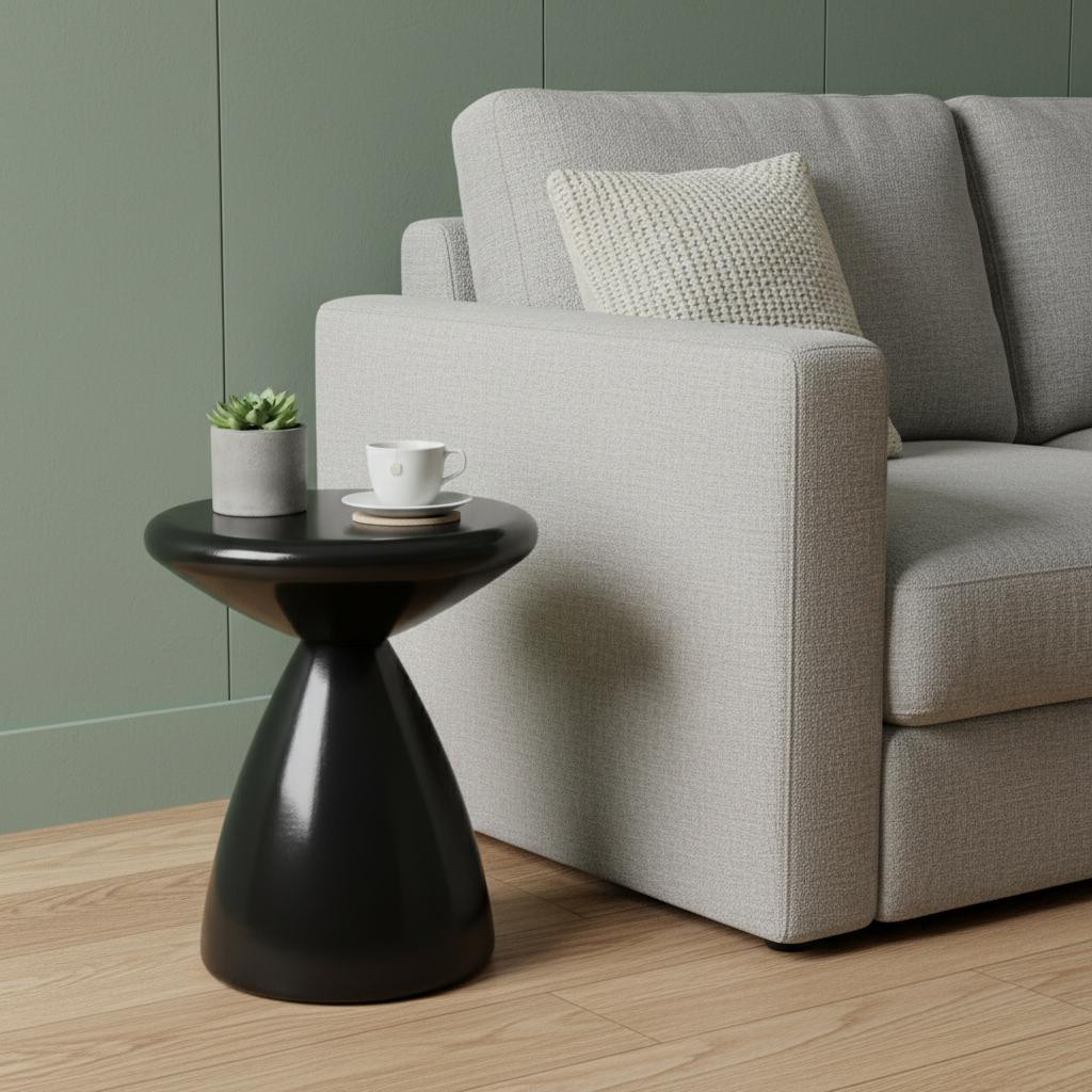 Show off your exquisite taste with this 18-inch black steel cinched high waist round pedestal end table. This unique piece is made from steel and features a geometric, high wasted cinched base, and round top, making it just as much a stylish piece of sculptural decor as it is practical small accent table. An ideal location for placing your snacks and drinks, and a place to keep your lamp, frames, or other accessories. This versatile small table is a great accent for most any room. 18.00-inch h x 15.00-inch w x 15.00-inch d.