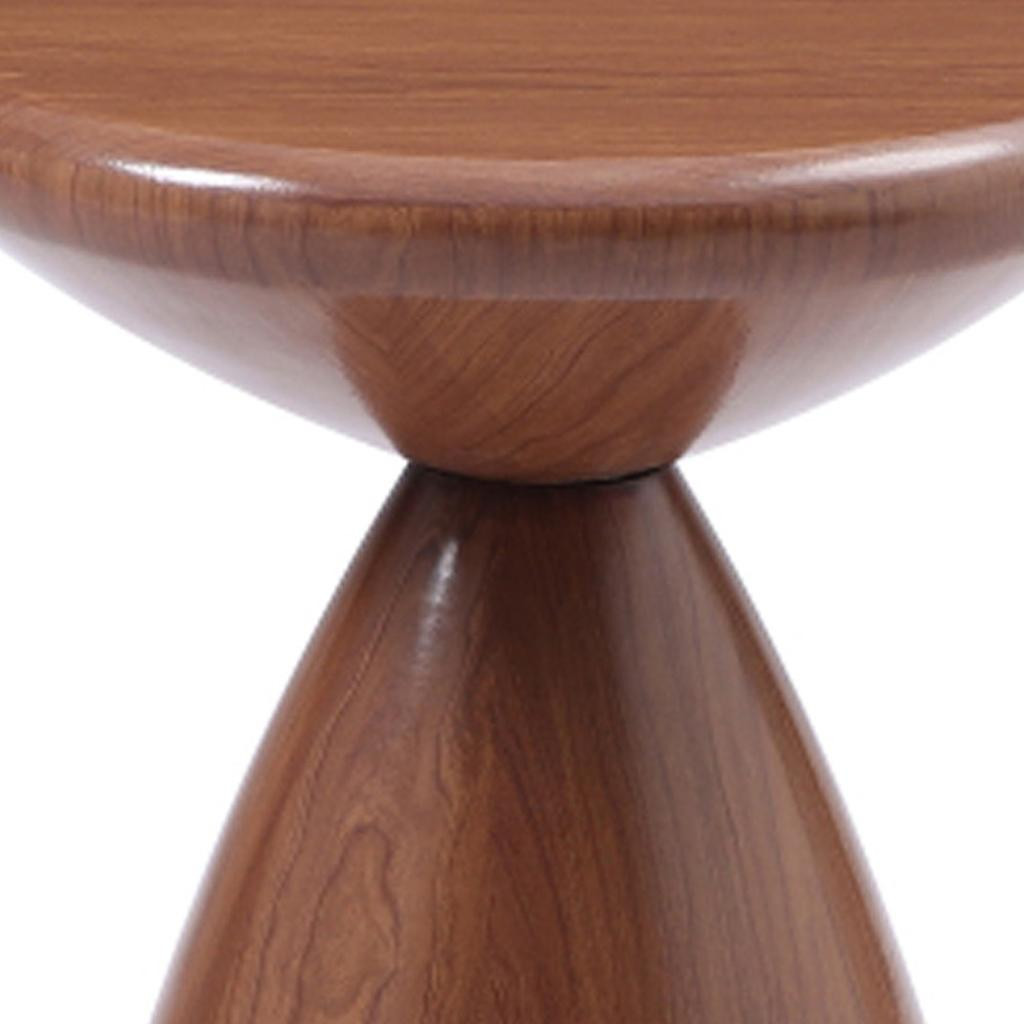 Show off your exquisite taste with this 18-inch walnut brown steel cinched high waist round pedestal end table. This unique piece is made from steel and features a geometric, high wasted cinched base, and round top, making it just as much a stylish piece of sculptural decor as it is practical small accent table. An ideal location for placing your snacks and drinks, and a place to keep your lamp, frames, or other accessories. This versatile small table is a great accent for most any room. 18.00-inch h x 15.00-inch w x 15.00-inch d.
