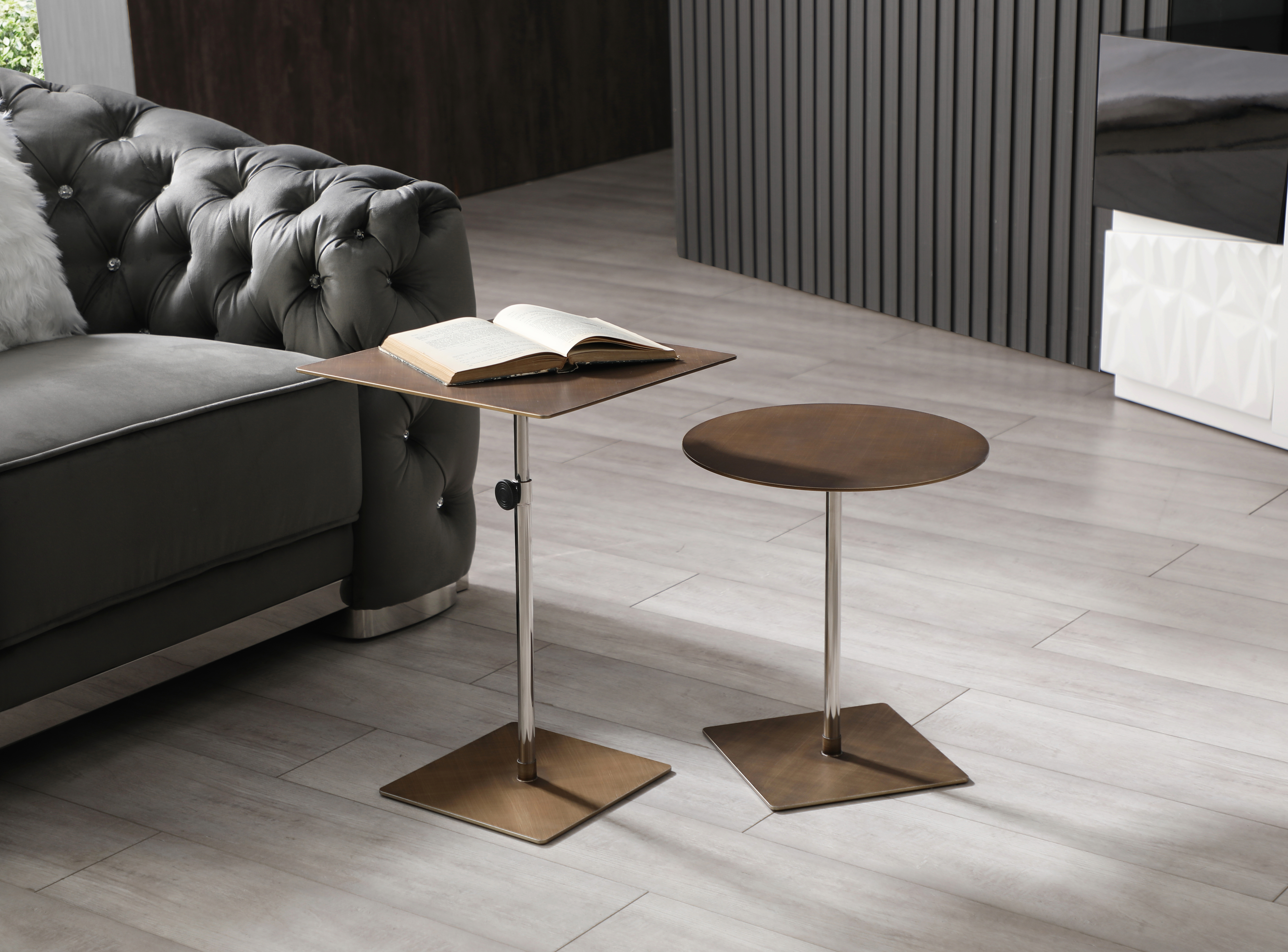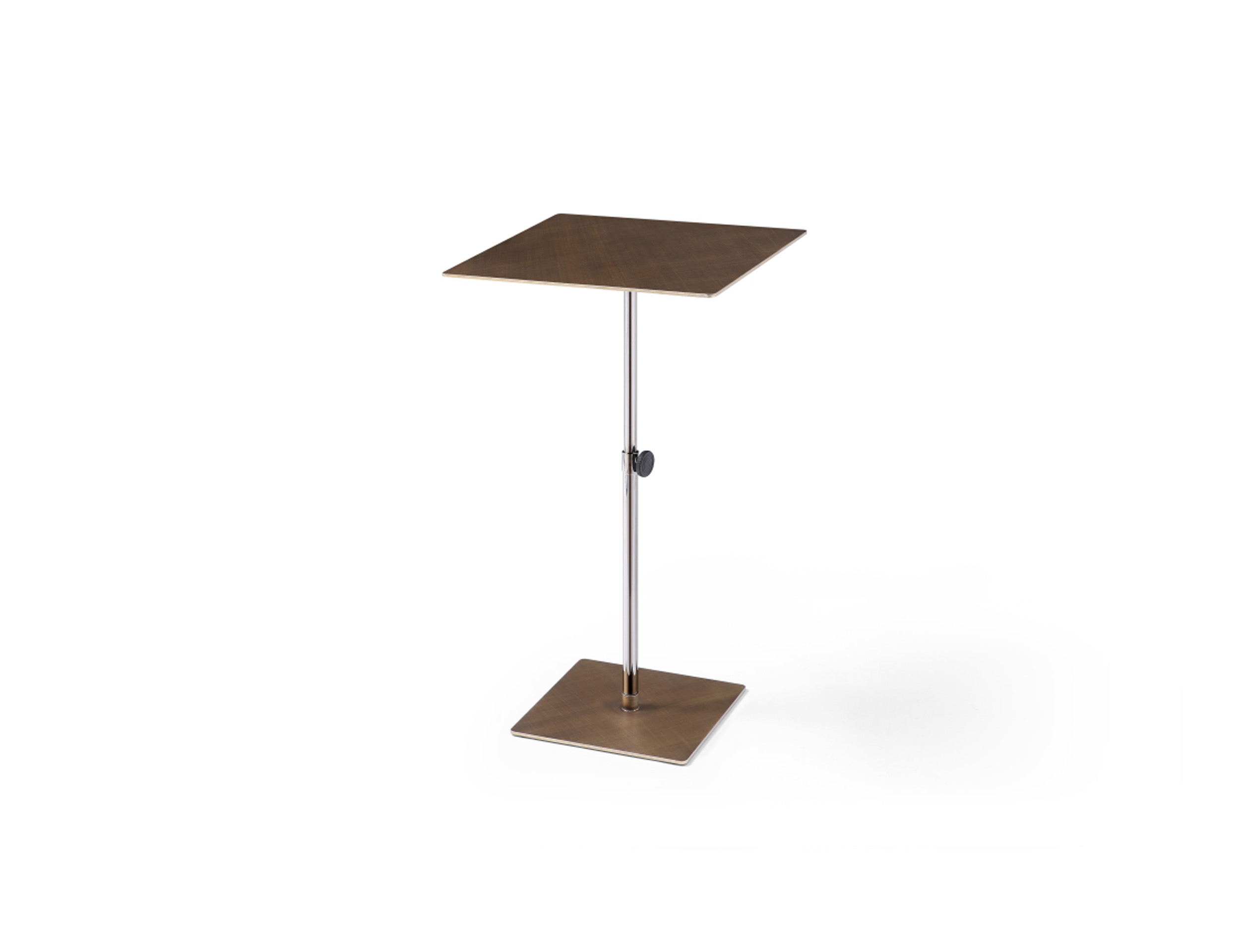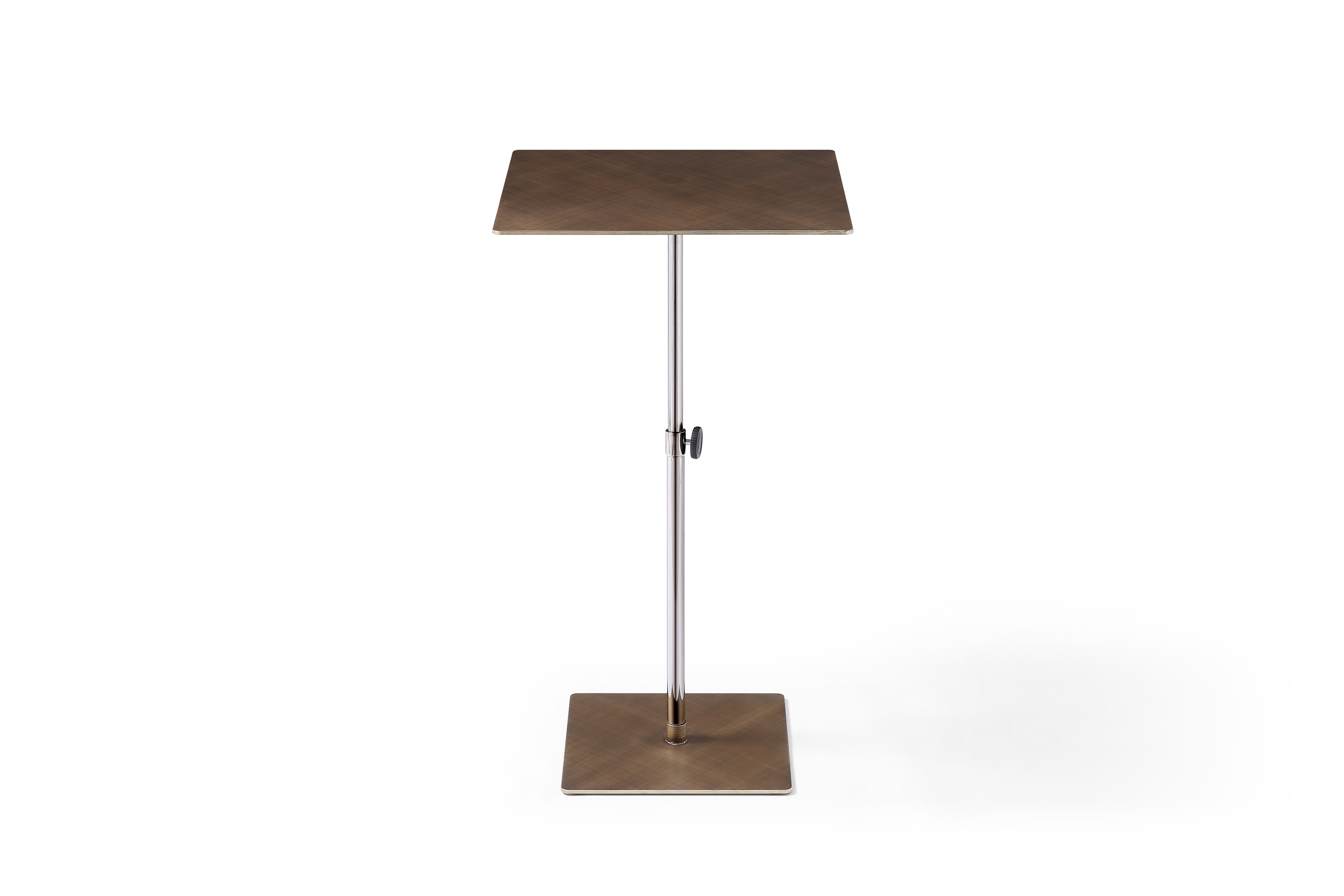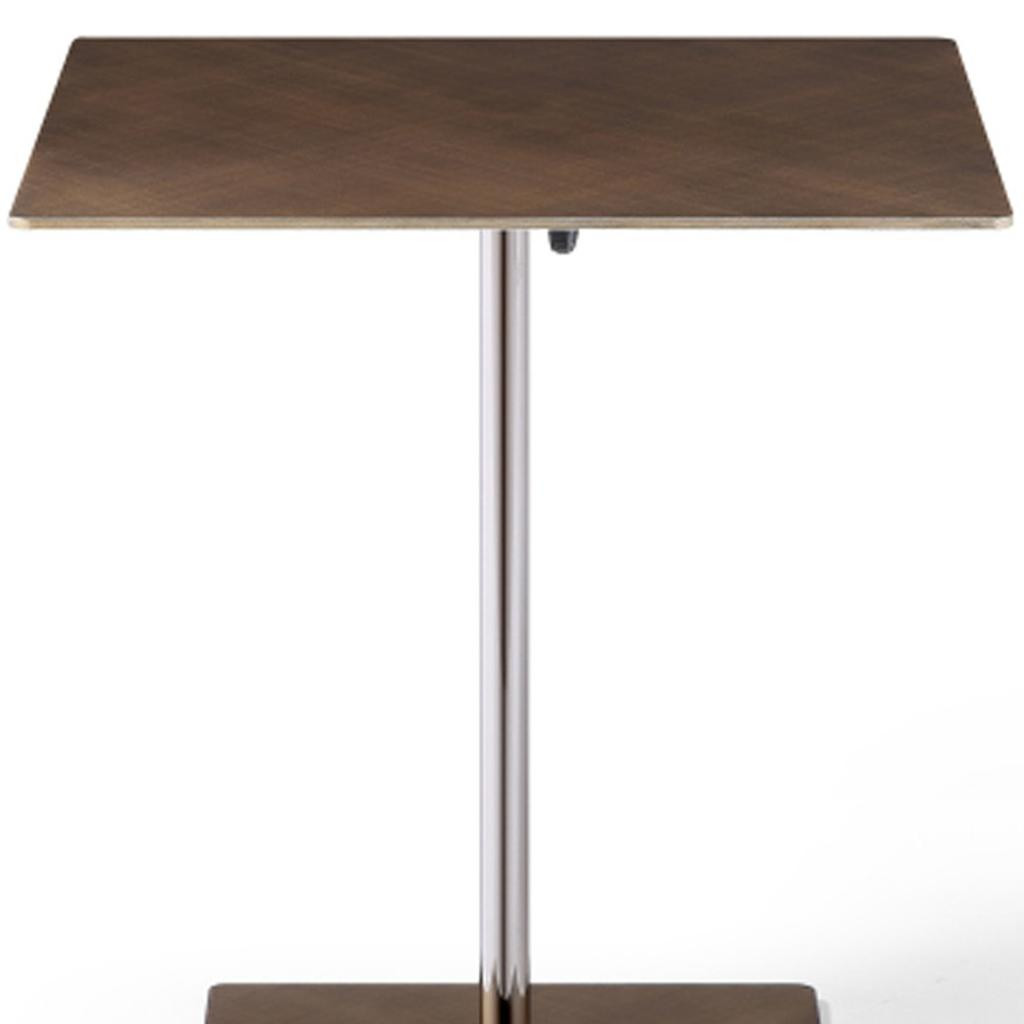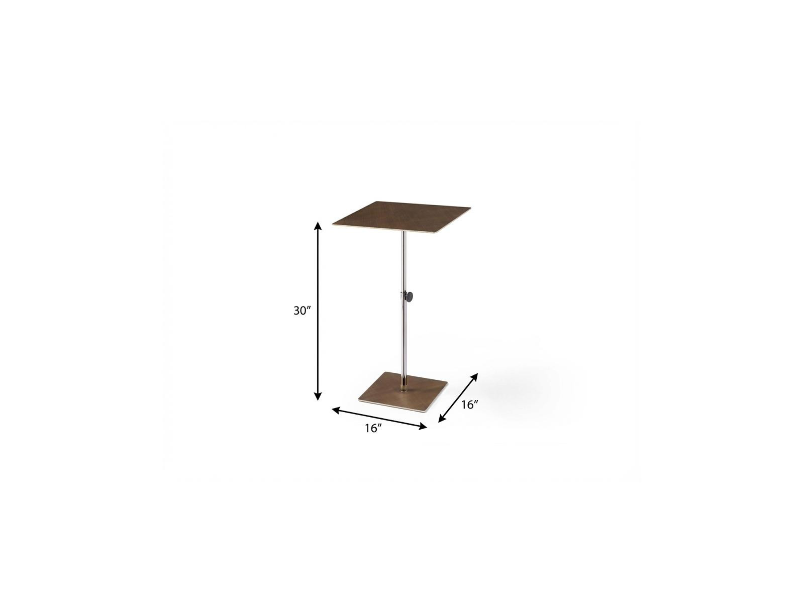 adjustable square pedestal end table, height adjustable square pedestal end, square pedestal end table, steel height adjustable square pedestal, 30" bronze steel height adjustable |