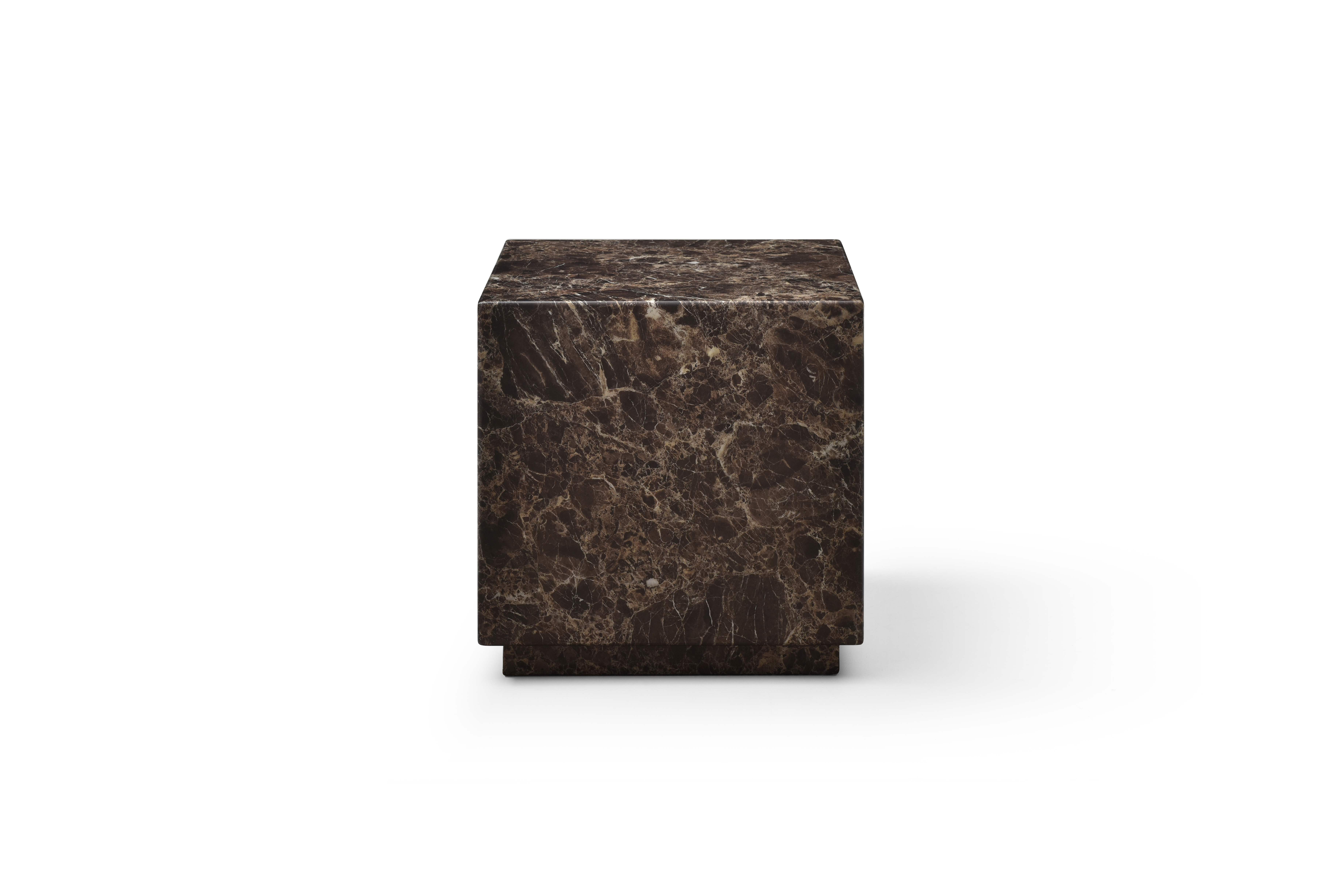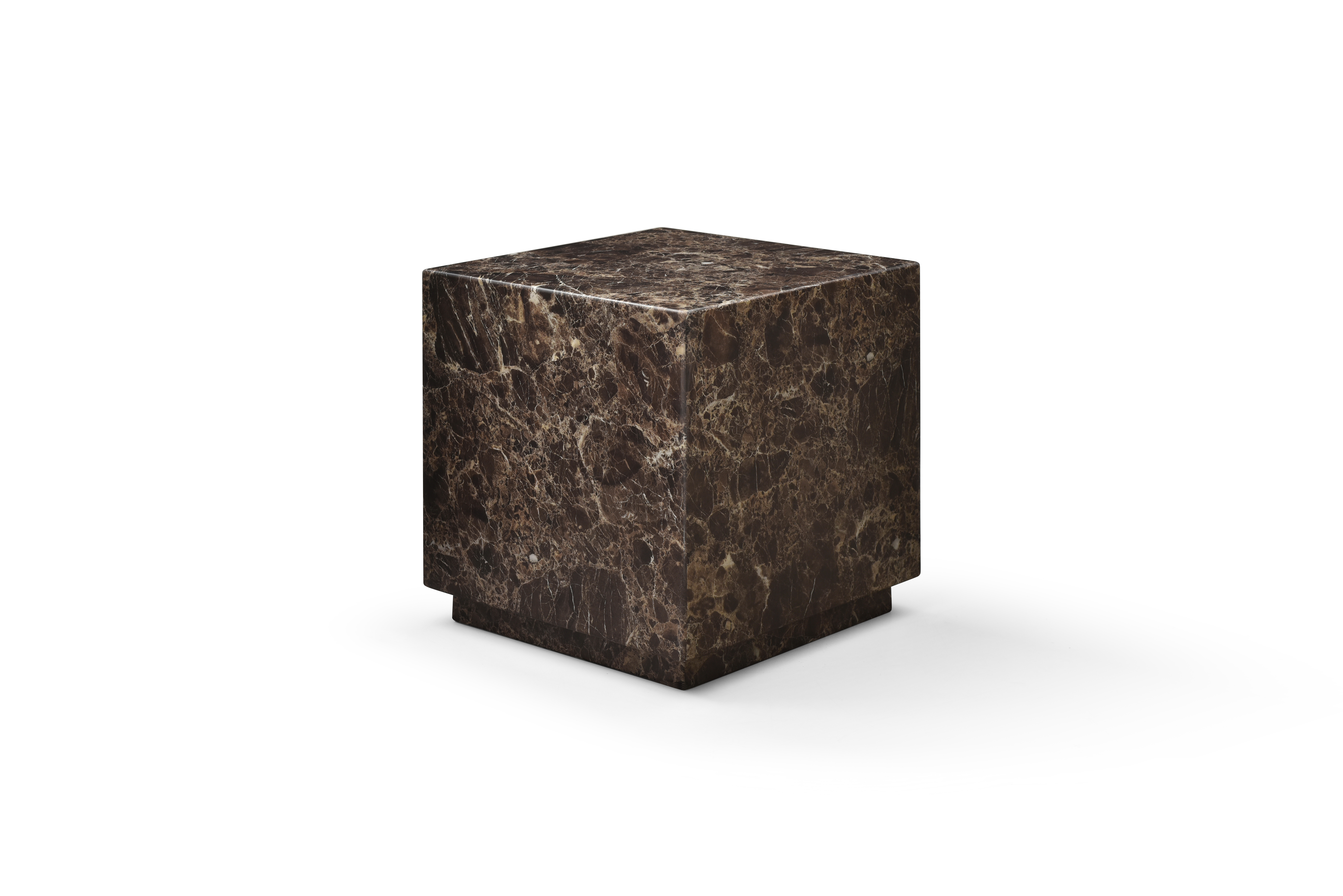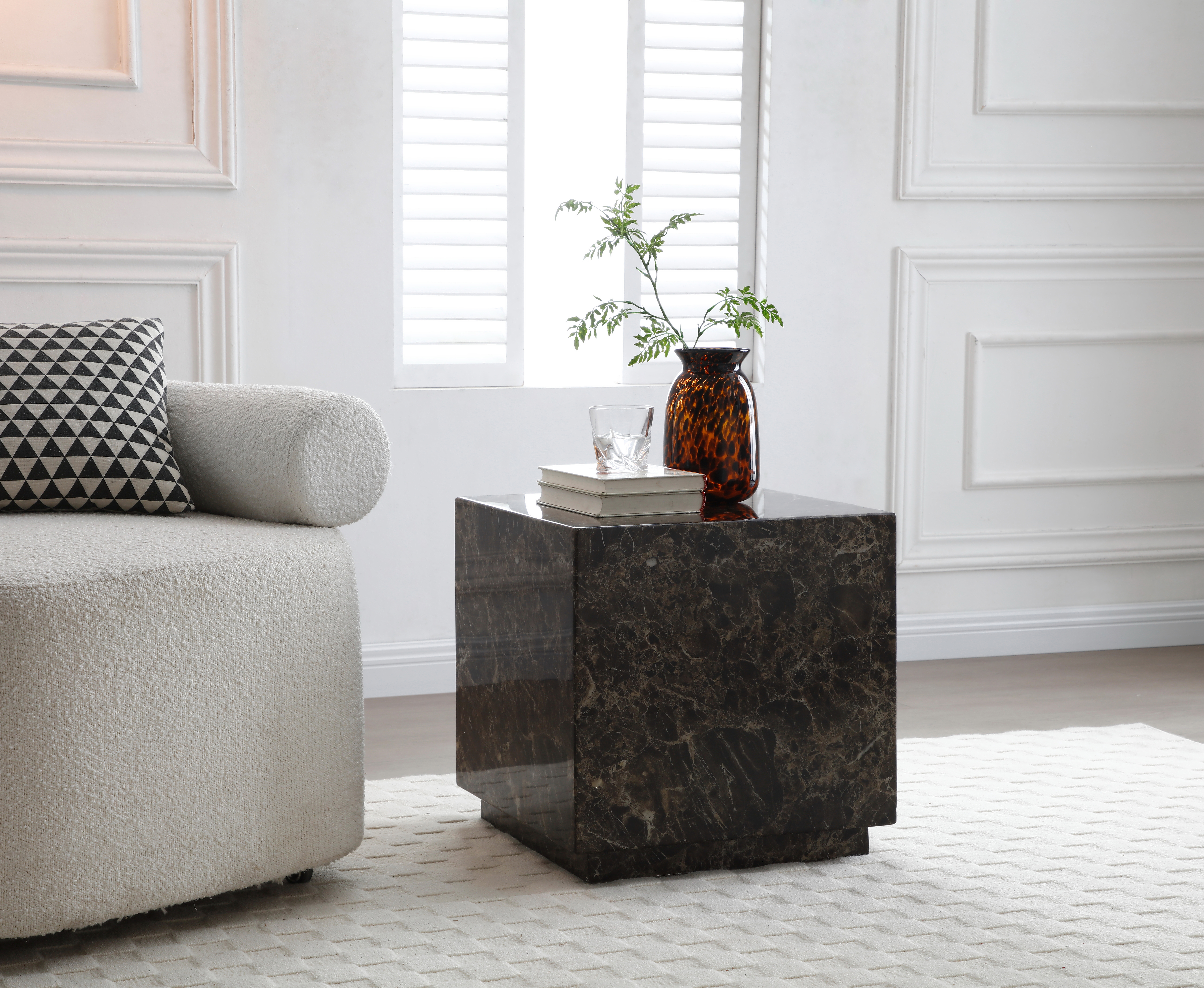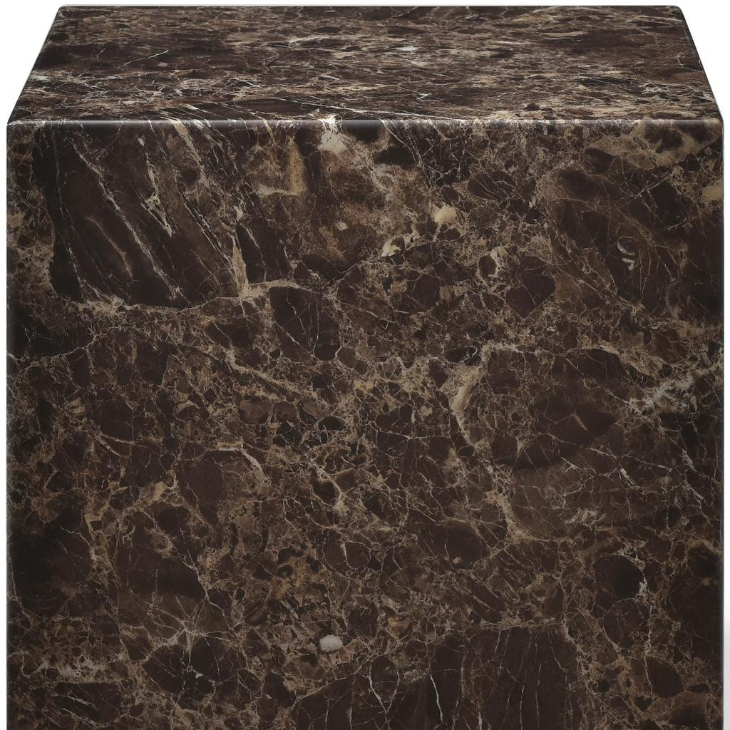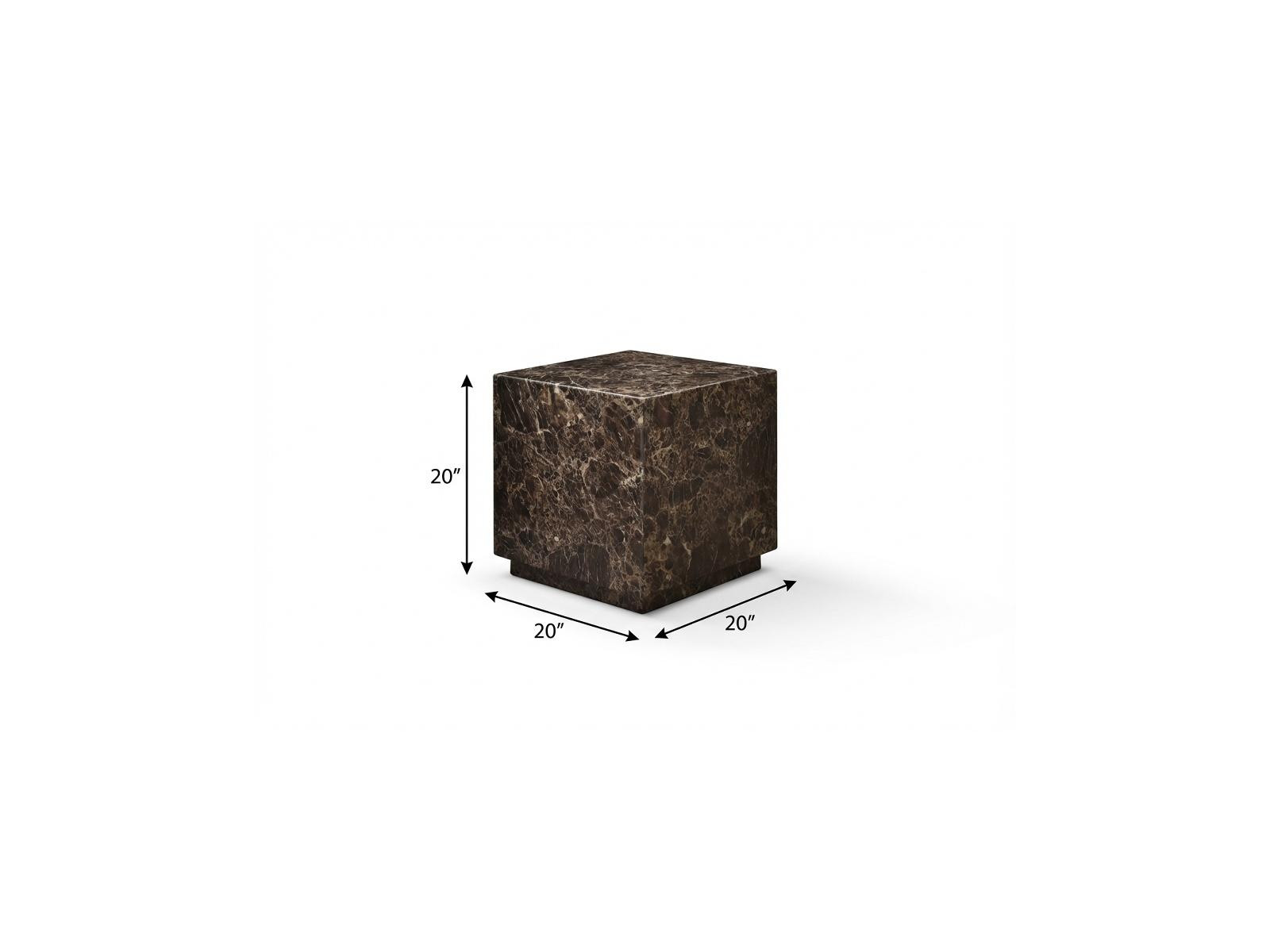 Distinctive in style the 20-inch brown marble square block end table radiates a versatile charm. This modern and chic table features quality construction from genuine marble in a high gloss finish. Side tables are a great way to flank your sofa, use as an accent next to your favorite chair, or can even be used bedside. You can match it with other pieces to get the ideal look for your place. 20.00-inch h x 20.00-inch w x 20.00-inch d.