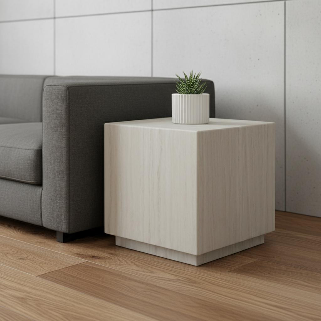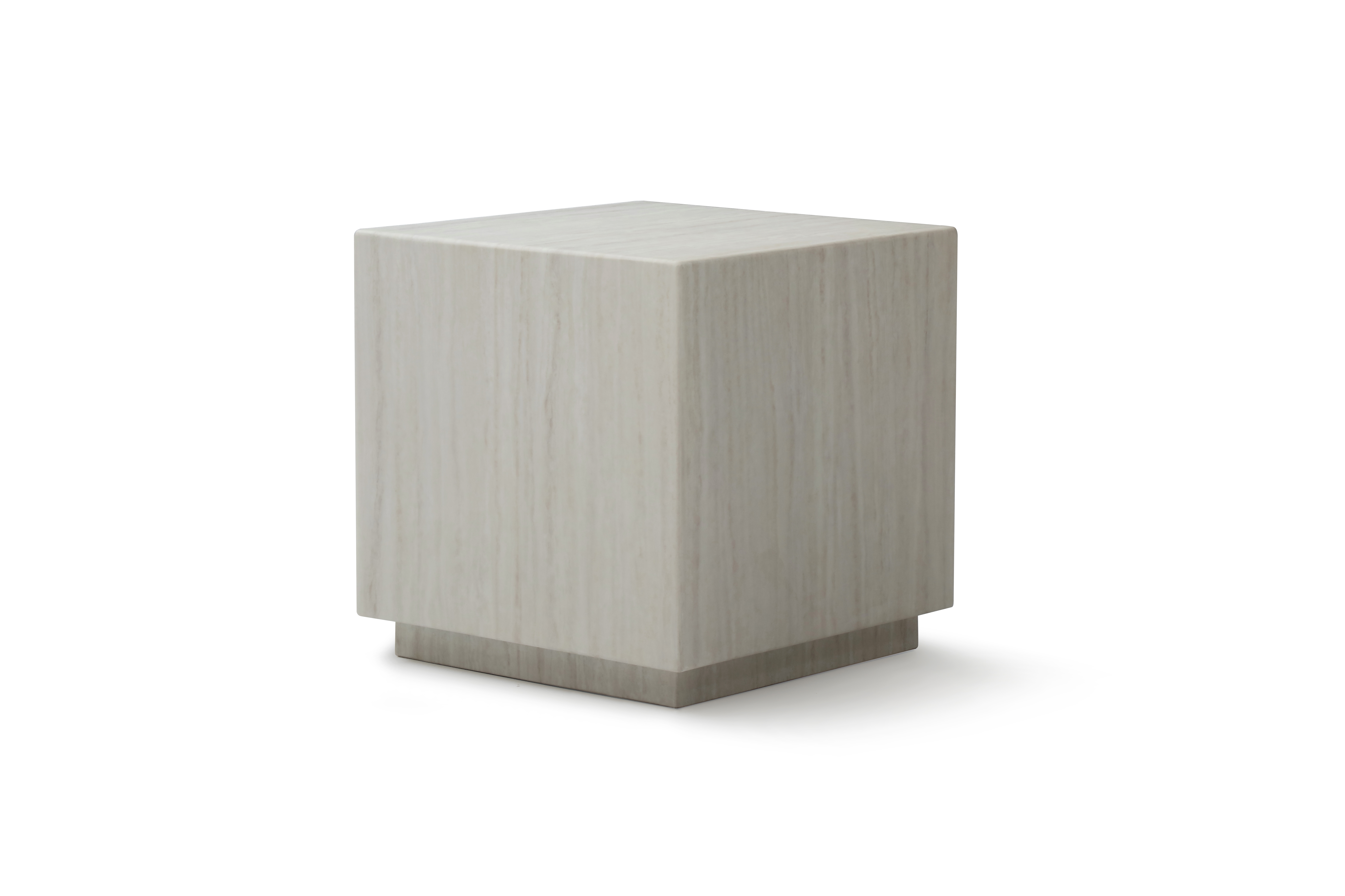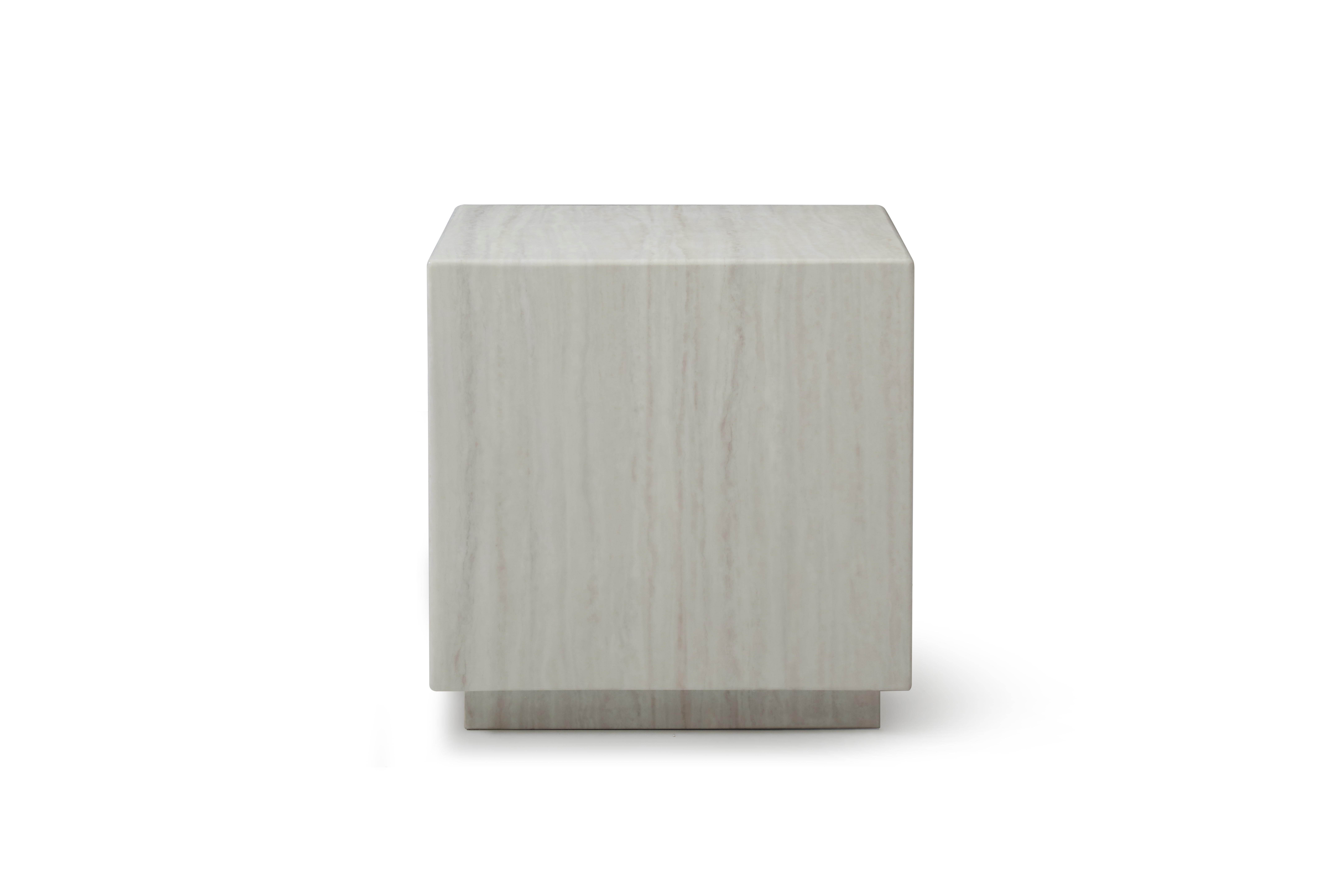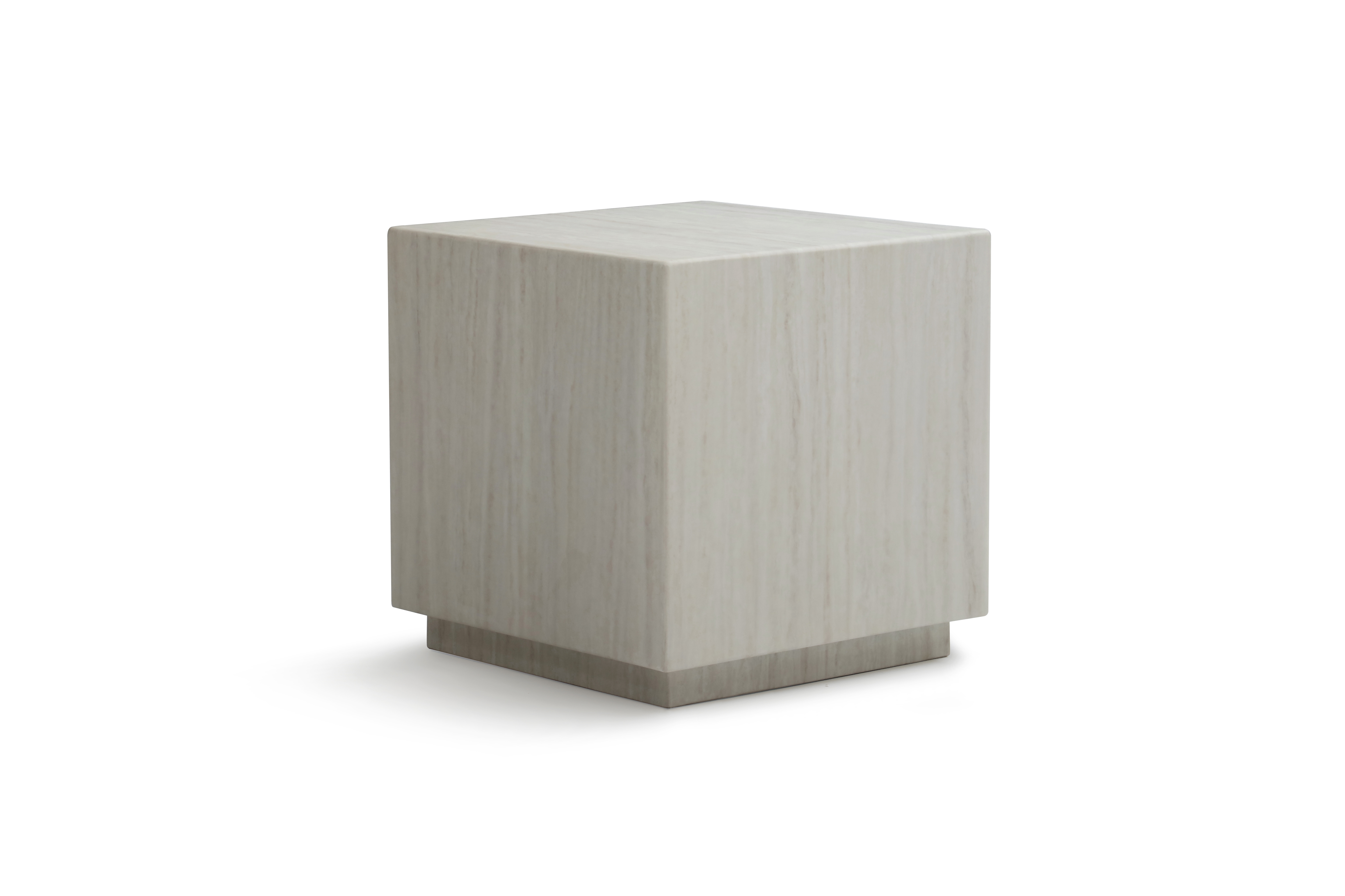 Distinctive in style the 20-inch beige marble square block end table radiates a versatile charm. This modern and chic table features quality construction from genuine marble in a travertine style, matte finish. Side tables are a great way to flank your sofa, use as an accent next to your favorite chair, or can even be used bedside. You can match it with other pieces to get the ideal look for your place. 20.00-inch h x 20.00-inch w x 20.00-inch d.