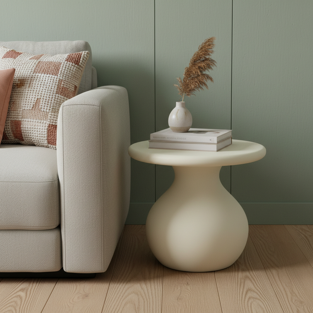 Optimize your space and add some charm to your room with the 20-inch beige fiber glass round curvaceous pedestal end table. Made of durable fiberglass, the beige coloration throughout gives this piece an updated and refreshing look. A great accent on either side of the sofa or bed, this adorable end or side table is just what you need. You can match it with other pieces to get the ideal look for your place. 20.00-inch h x 23.00-inch w x 23.00-inch d.