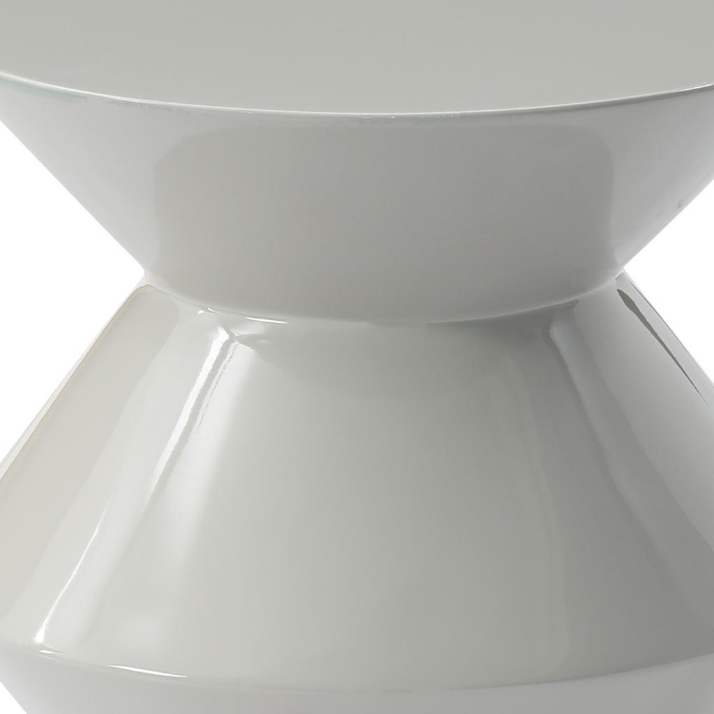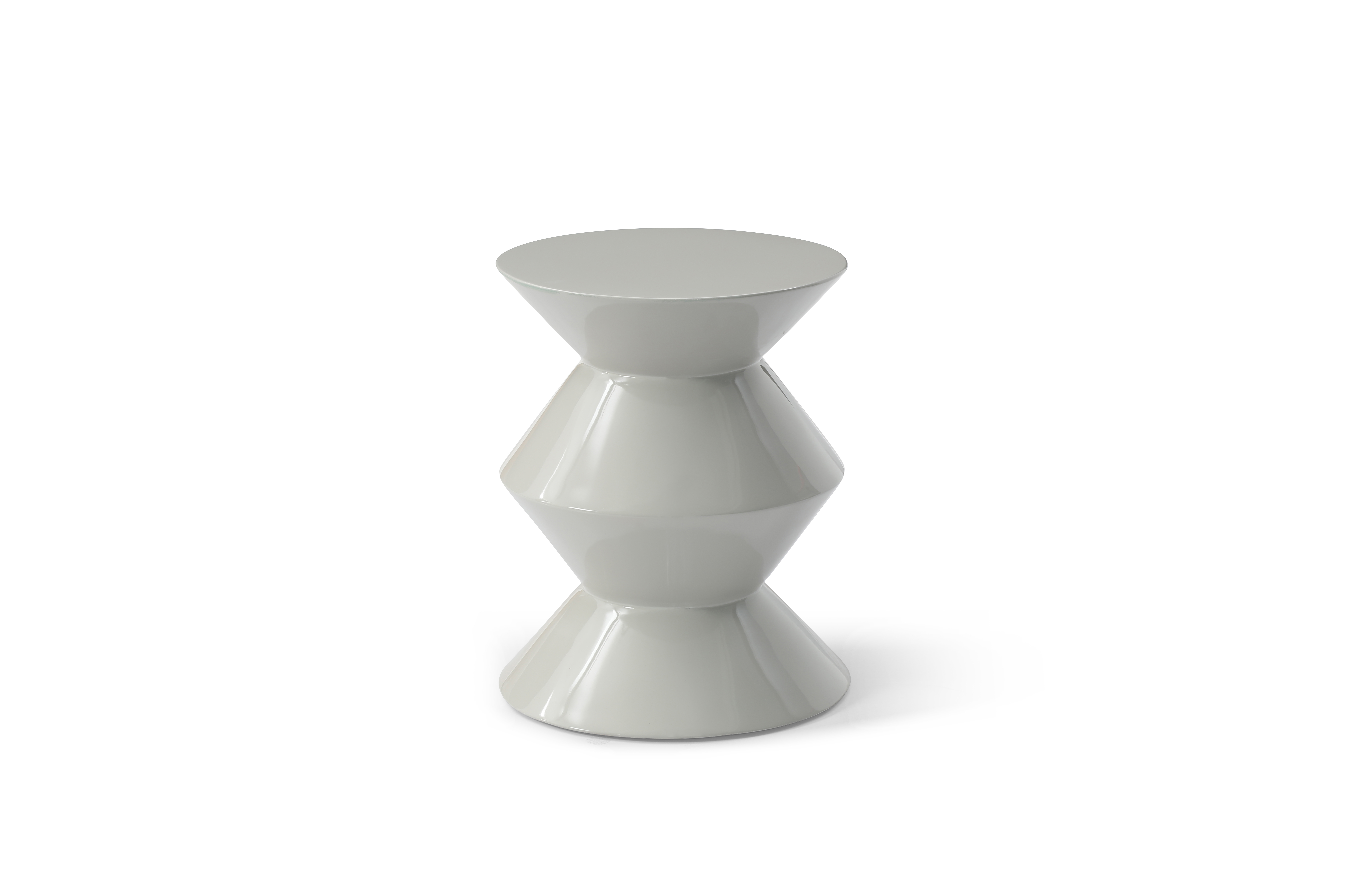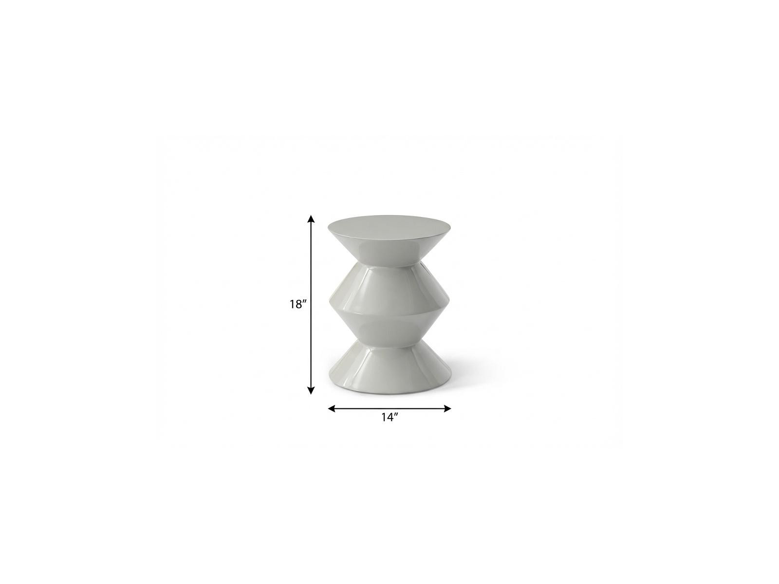 Distinctive in style the 18-inch light gray wood round pedestal end table radiates a versatile charm. Made of manufactured wood in a unique geometric pedestal shape, this piece features a shiny lacquered finish that adds to the updated, modern and contemporary design sense. A great accent on either side of the sofa or bed, this stylishly chic end or side table is just what you need. You can also use it as an entryway table to hold your keys. 18.00-inch h x 14.00-inch w x 14.00-inch d.