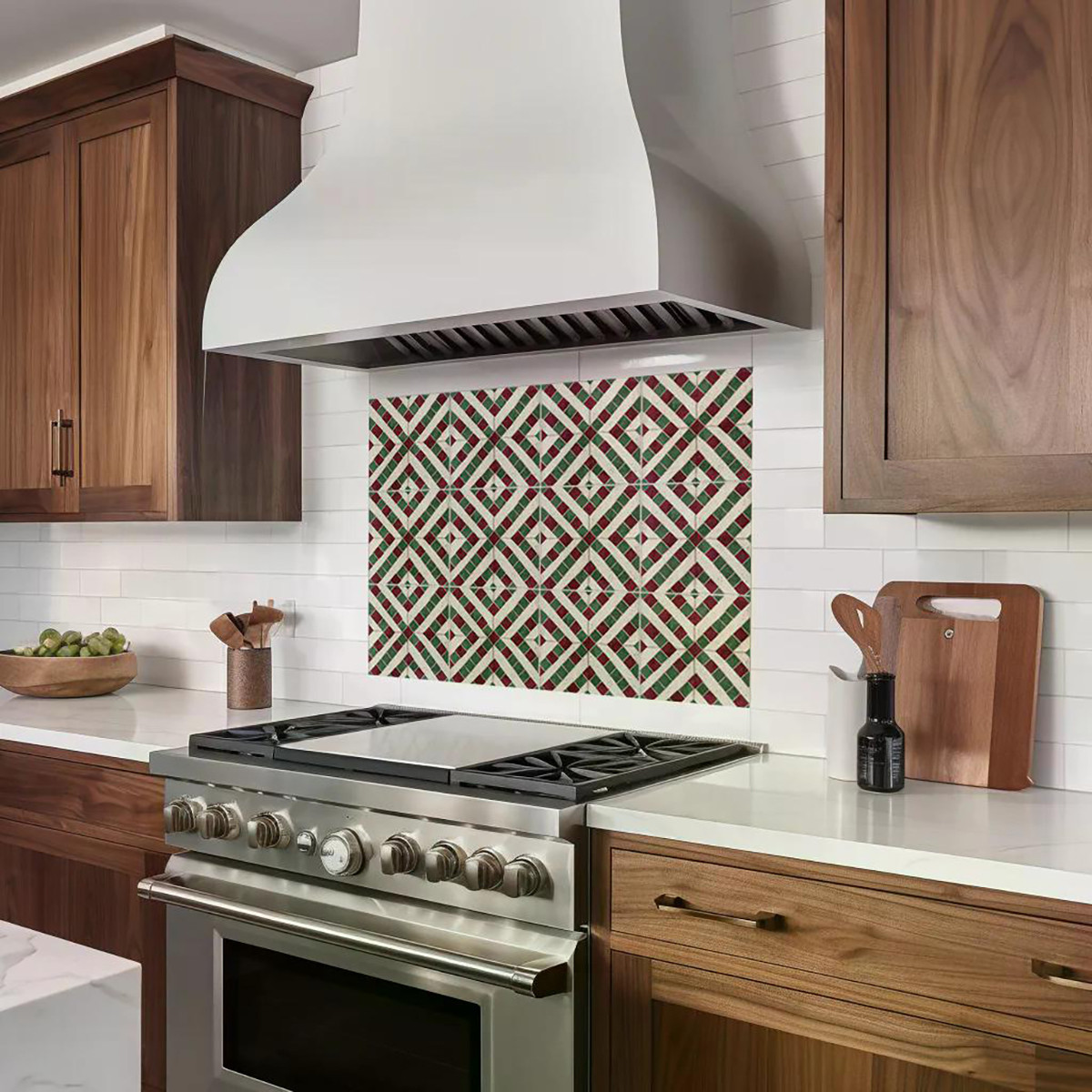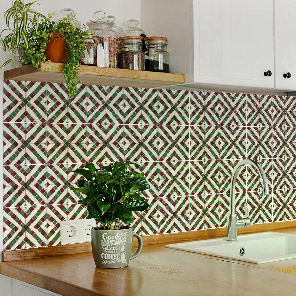 green red vintage tile stickers, mosaic vinyl peel stick removable tiles, kitchen peel stick, backsplash peel stick tiles, mosaic peel stick removable |