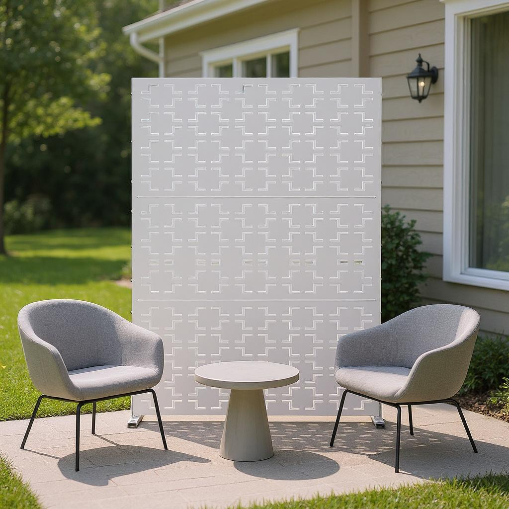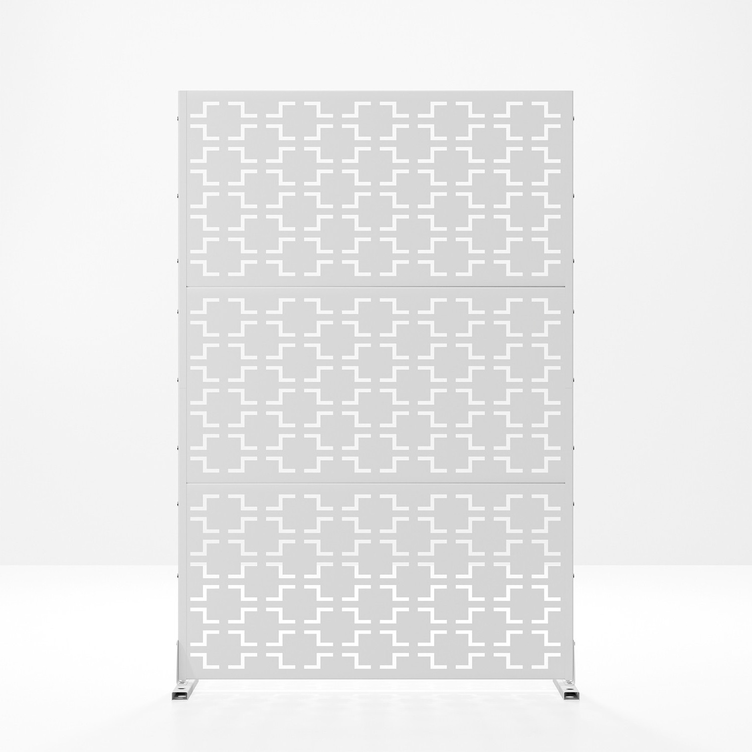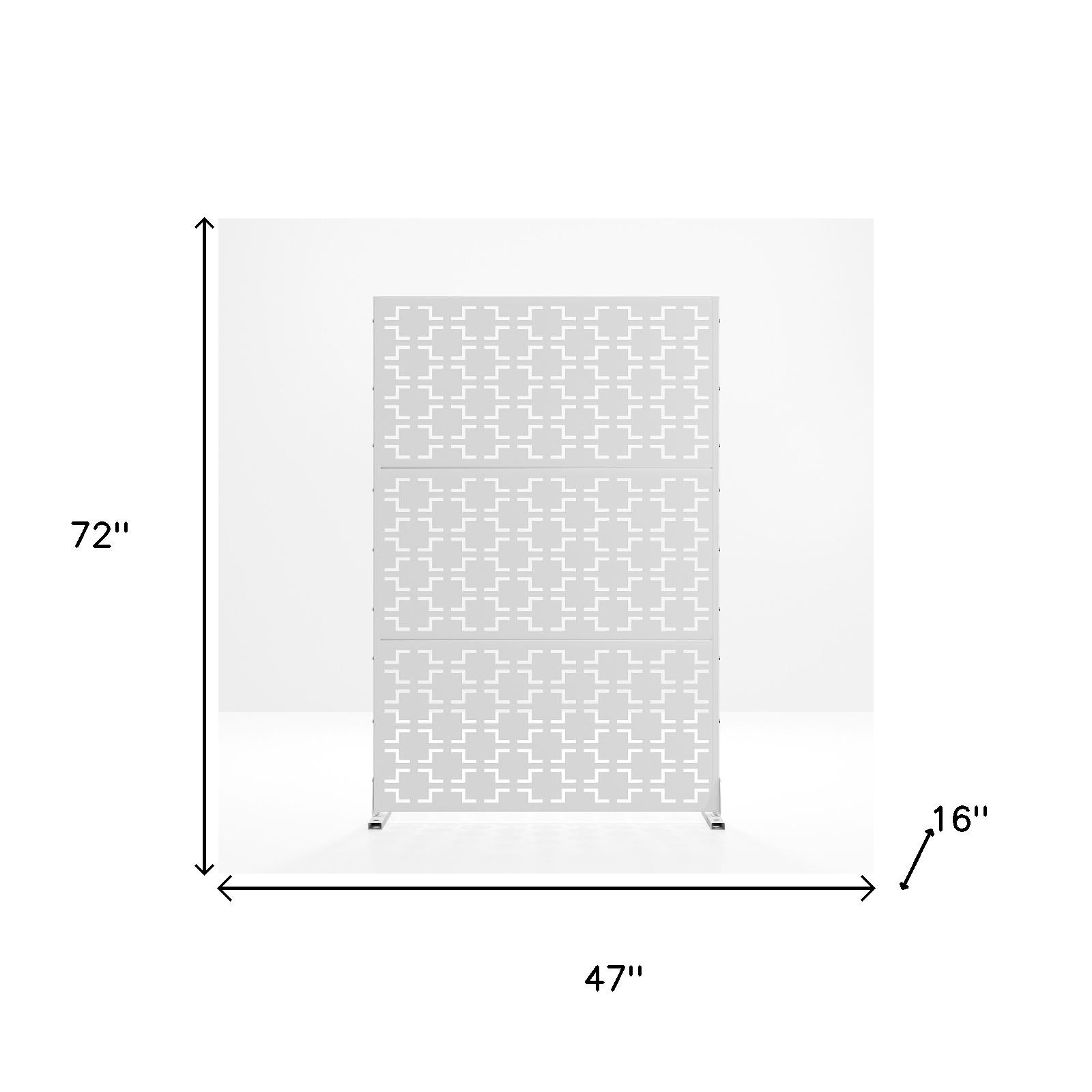 The 72-inch white steel three panel screen room divider is a stylish solution for creating privacy in your space. Crafted from durable steel, its sturdy frame ensures long-lasting use both indoors and outdoors. The opaque screen material provides an effective barrier while maintaining a sleek design. Each panel features a consistent finish, with the reverse side mirroring the front for a polished look from any angle. With three panels, this versatile room divider can easily adapt to various layouts, making it perfect for defining areas in open spaces. Whether you need to partition a room or enhance your decor, this room divider offers functionality and modern aesthetic appeal. 72.00-inch h x 47.00-inch w x 16.00-inch d.