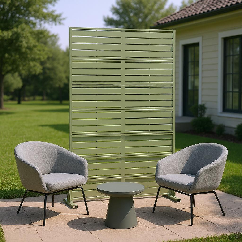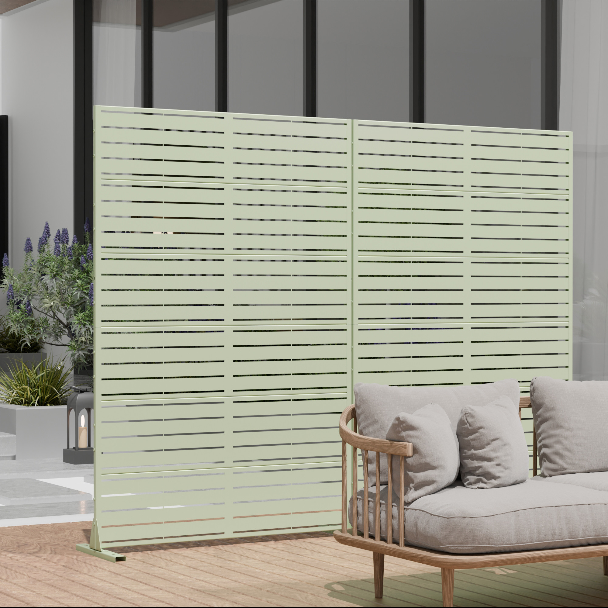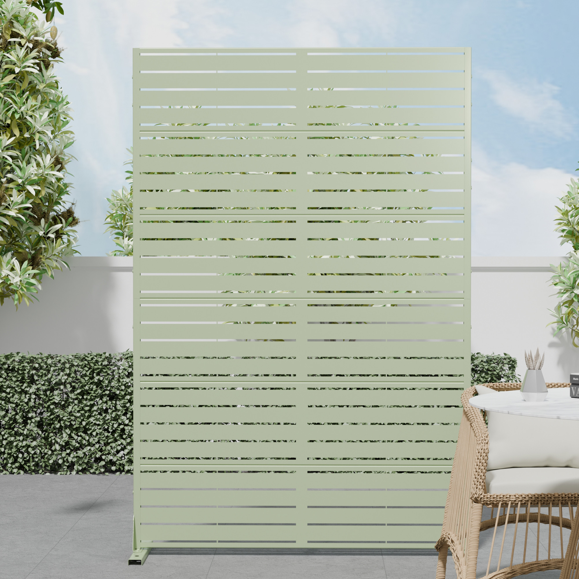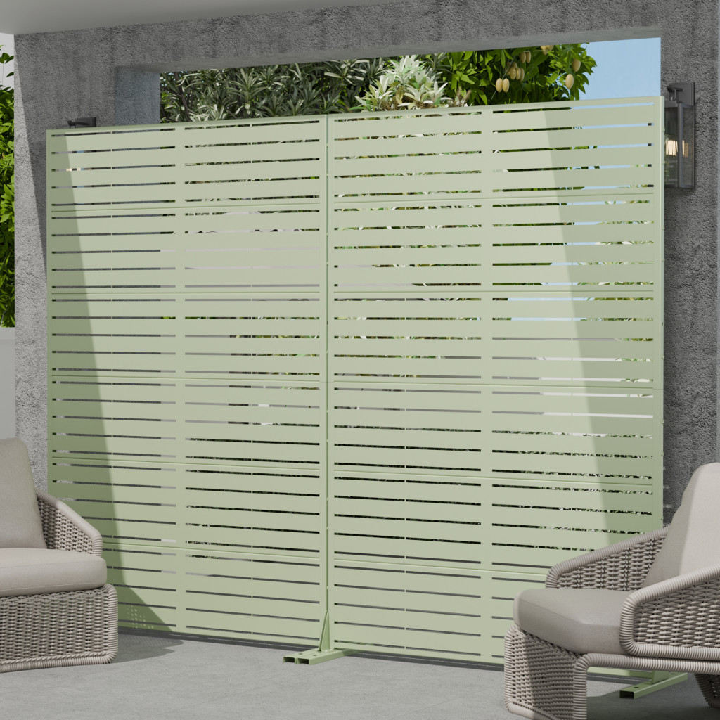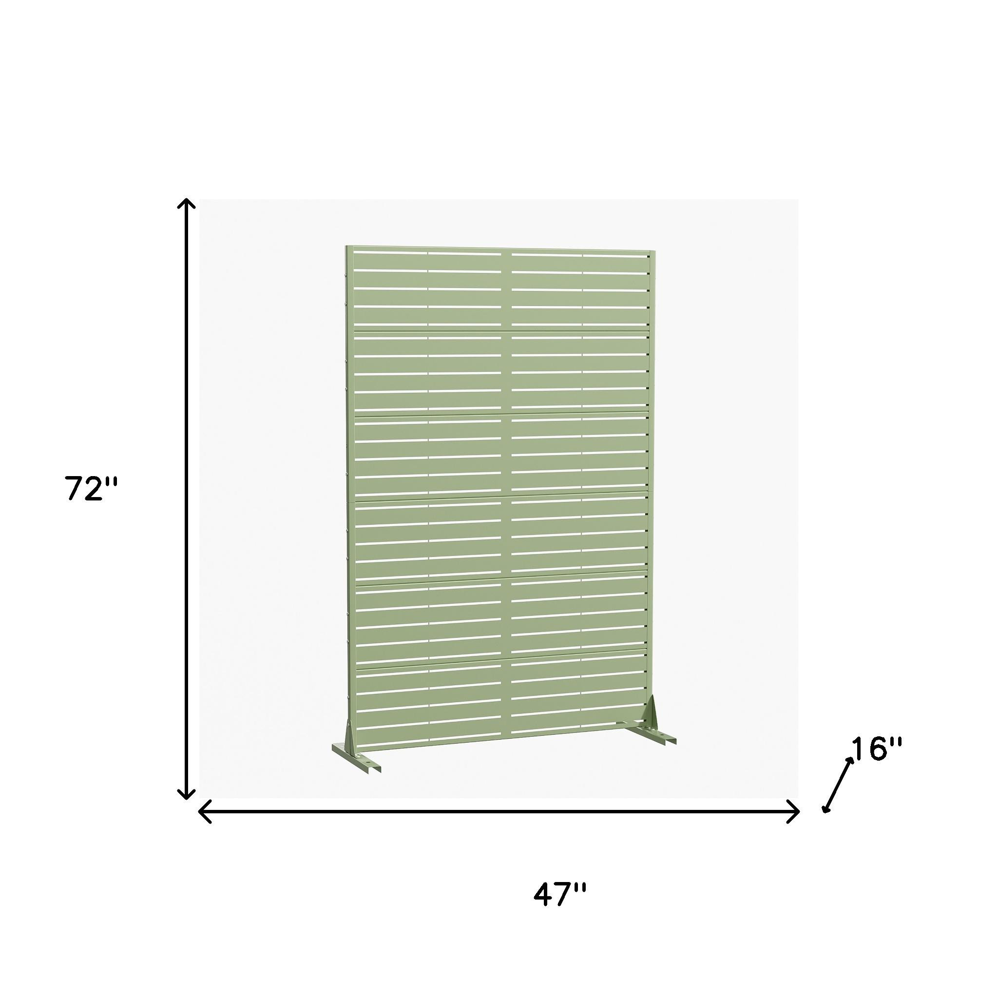 The 72-inch green steel six panel screen room divider offers an elegant solution for creating privacy or delineating spaces in your home or outdoor area. Its robust steel frame ensures durability and stability, making it suitable for various environments. The opaque screen material is designed to block visibility while maintaining a stylish aesthetic. Each of the six panels features a unified color and finish, providing a seamless look from both sides. This versatile room divider not only enhances your decor but also optimizes spatial arrangements, allowing you to effortlessly transform any room or patio into a more intimate setting. Enjoy the blend of functionality and contemporary style with this striking piece. 72.00-inch h x 47.00-inch w x 16.00-inch d.