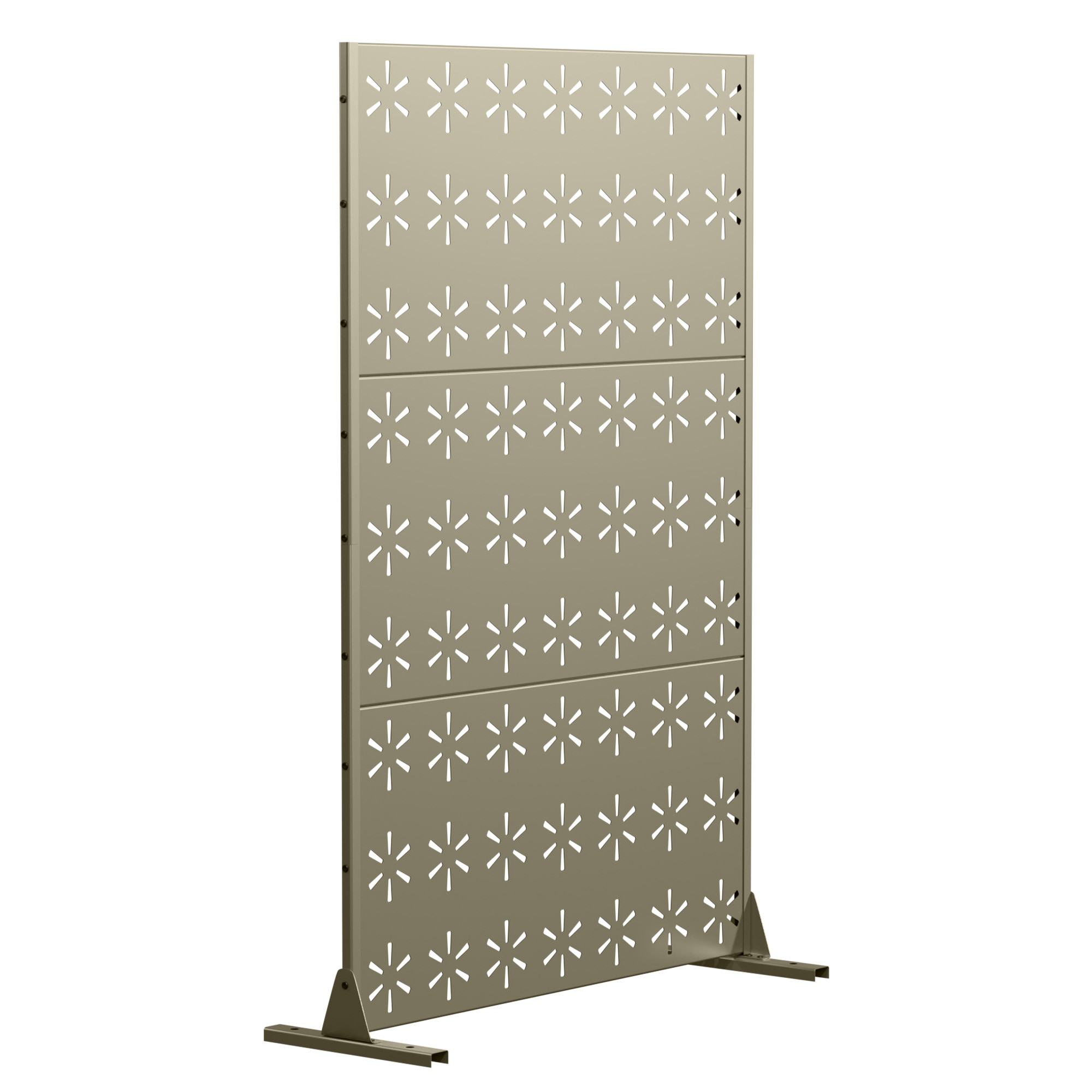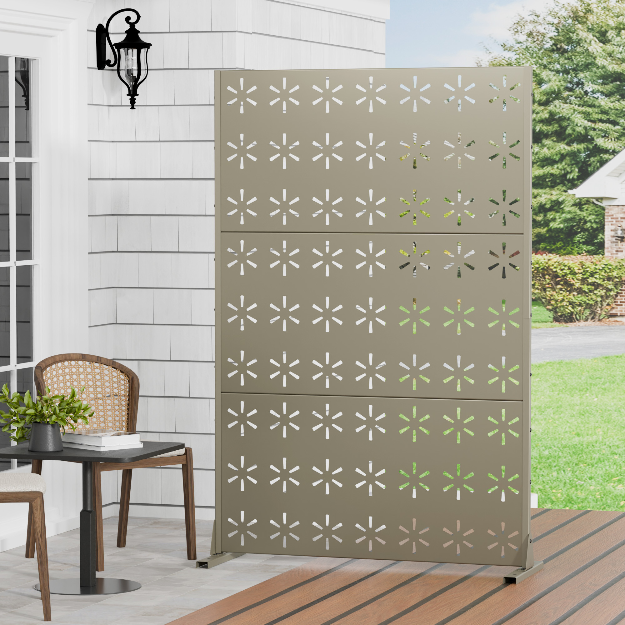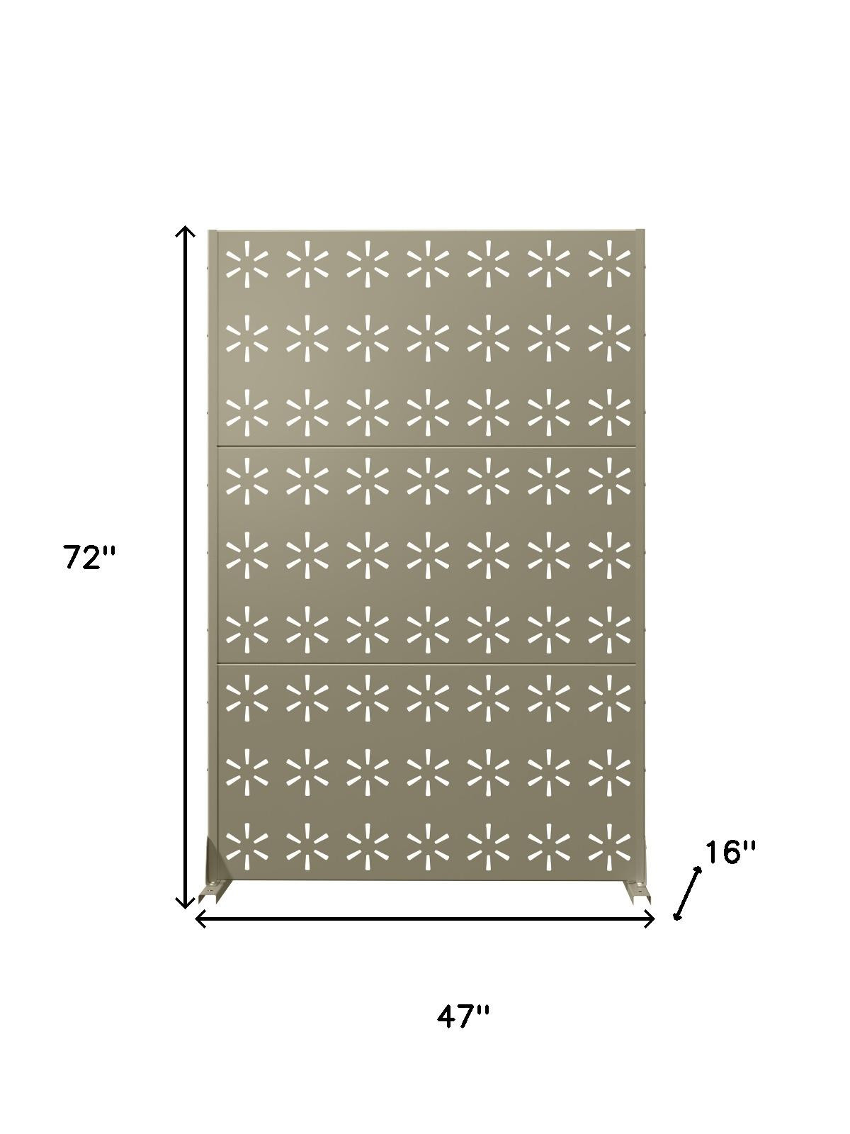 The 72-inch gray steel three panel screen room divider offers a stylish solution for creating distinct areas within your space. Crafted from durable steel, this room divider conveys a modern aesthetic that complements various decor styles. It features a three-panel design that enhances its functionality while ensuring a secure and stable structure. With an opaque finish, it effectively provides privacy and separation, making it an ideal choice for both indoor and outdoor use. The reverse side mirrors the front, maintaining the sophisticated look from any angle. This versatile piece is perfect for creating cozy nooks or simply organizing larger spaces with elegance. Experience the perfect blend of form and function with this exceptional room divider. 72.00-inch h x 47.00-inch w x 16.00-inch d.
