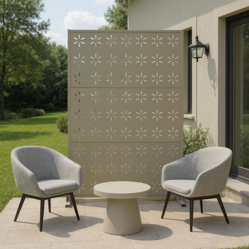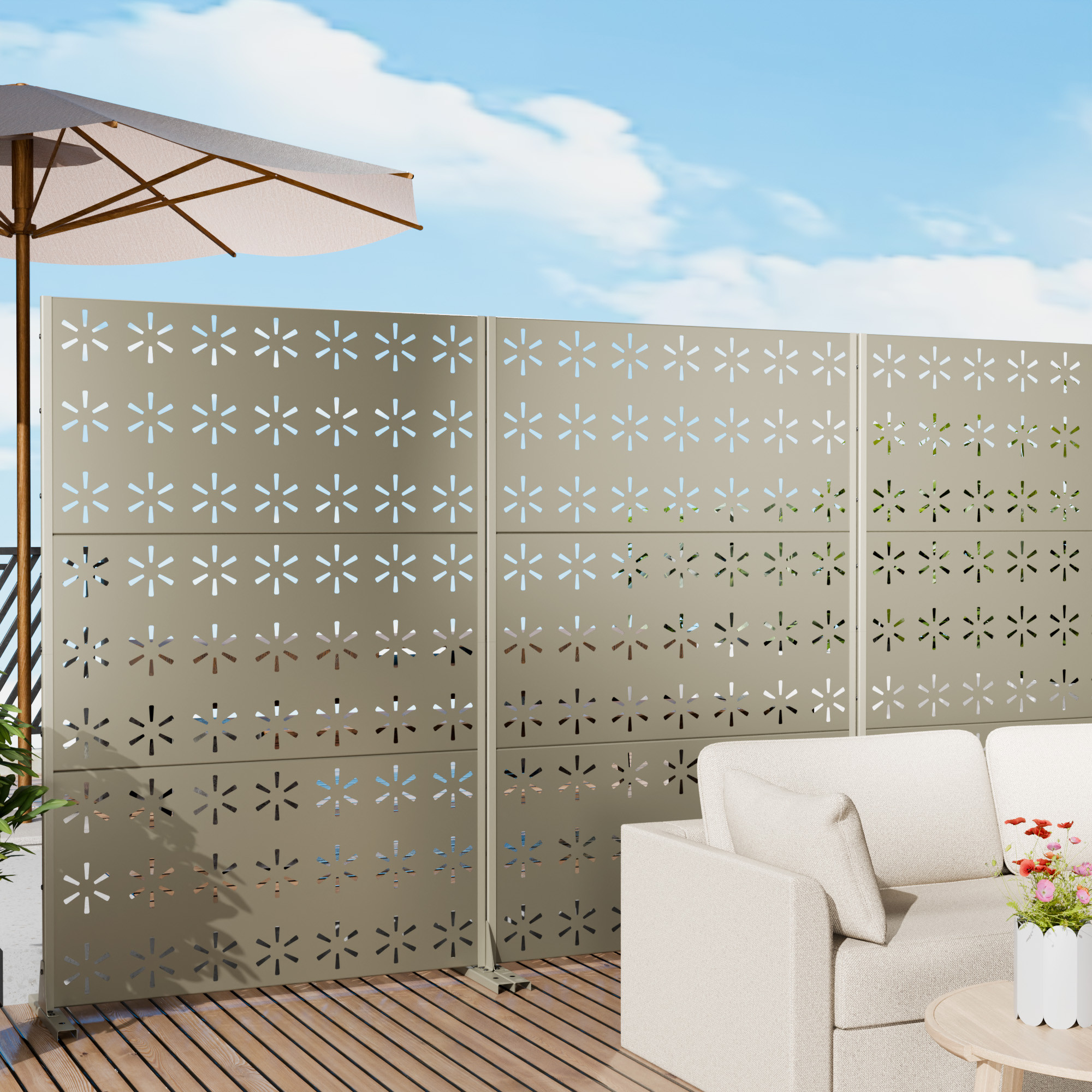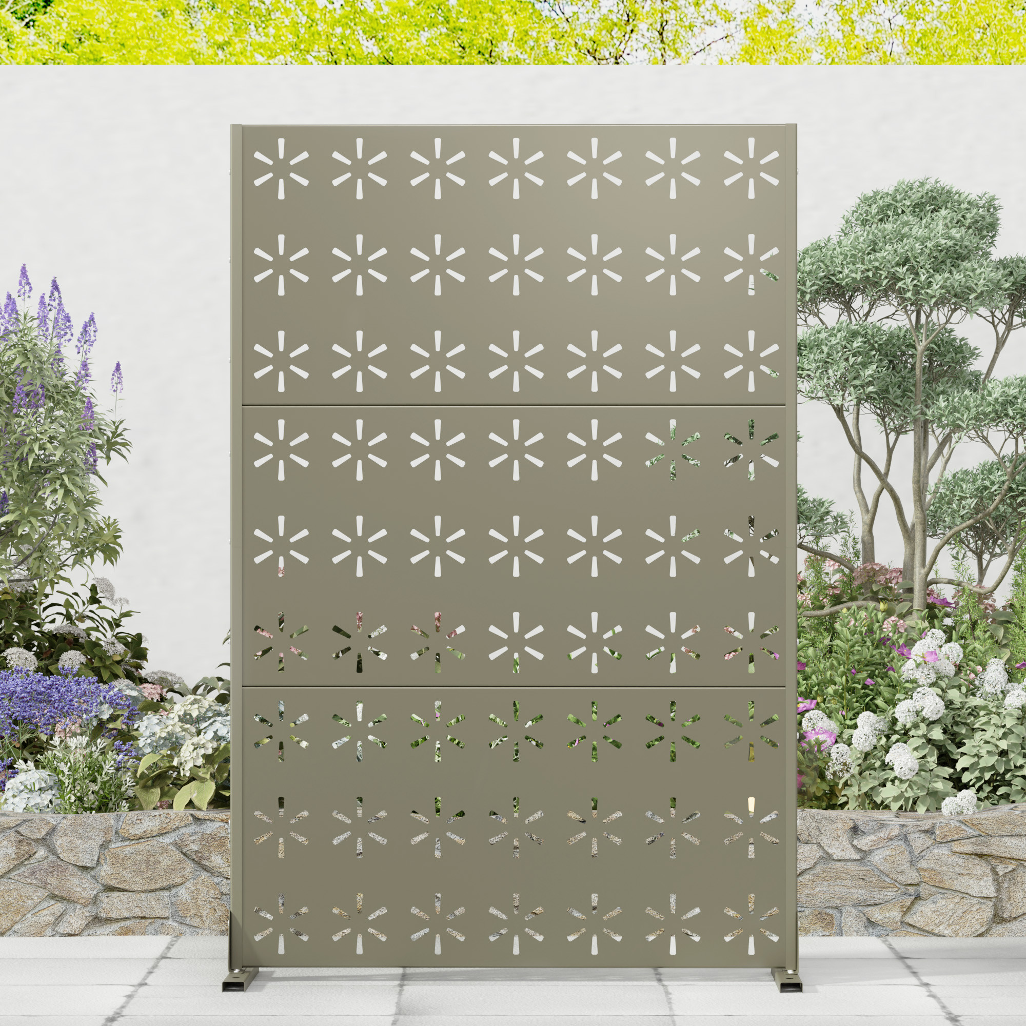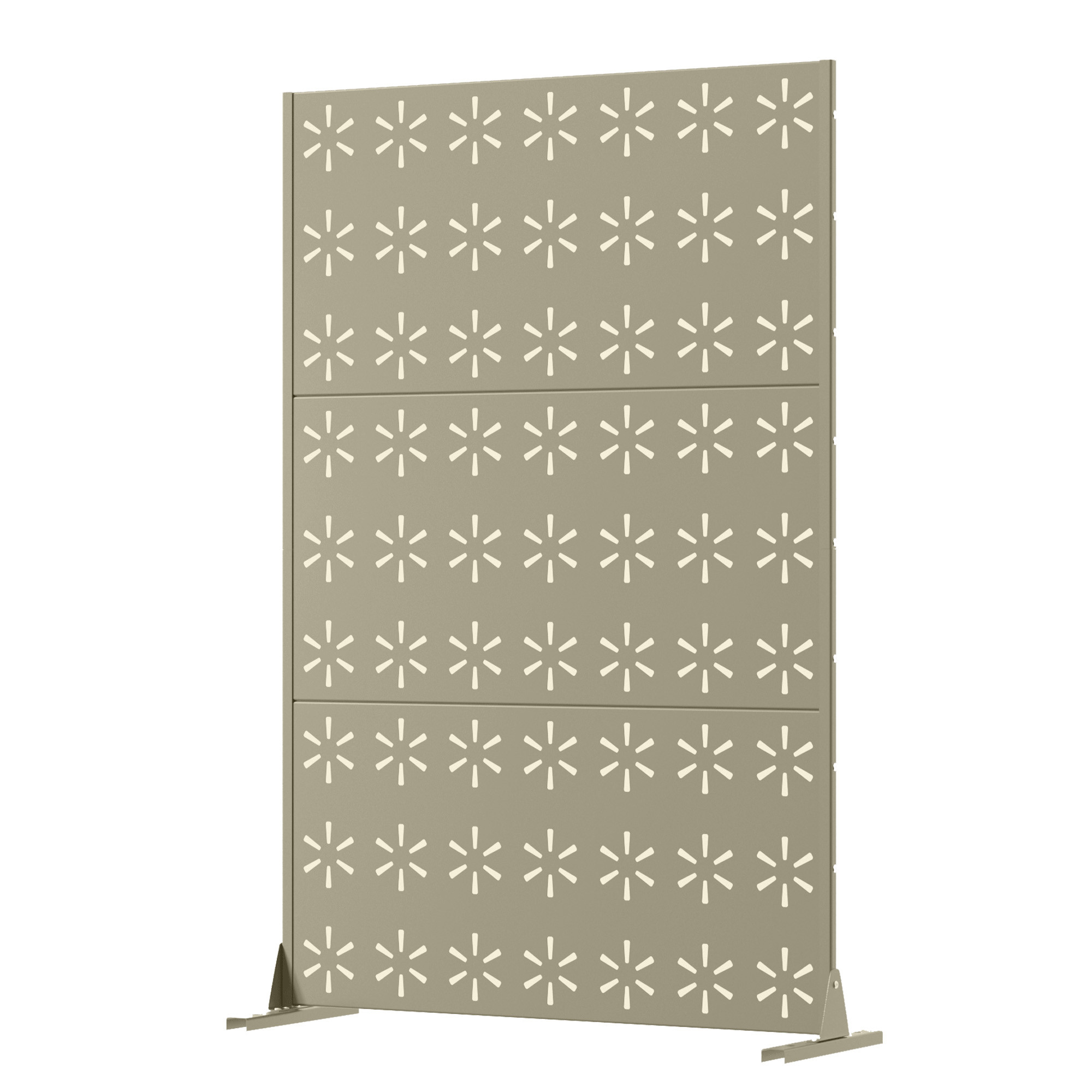 The 72-inch gray steel three panel screen room divider offers a stylish solution for creating distinct areas within your space. Crafted from durable steel, this room divider conveys a modern aesthetic that complements various decor styles. It features a three-panel design that enhances its functionality while ensuring a secure and stable structure. With an opaque finish, it effectively provides privacy and separation, making it an ideal choice for both indoor and outdoor use. The reverse side mirrors the front, maintaining the sophisticated look from any angle. This versatile piece is perfect for creating cozy nooks or simply organizing larger spaces with elegance. Experience the perfect blend of form and function with this exceptional room divider. 72.00-inch h x 47.00-inch w x 16.00-inch d.