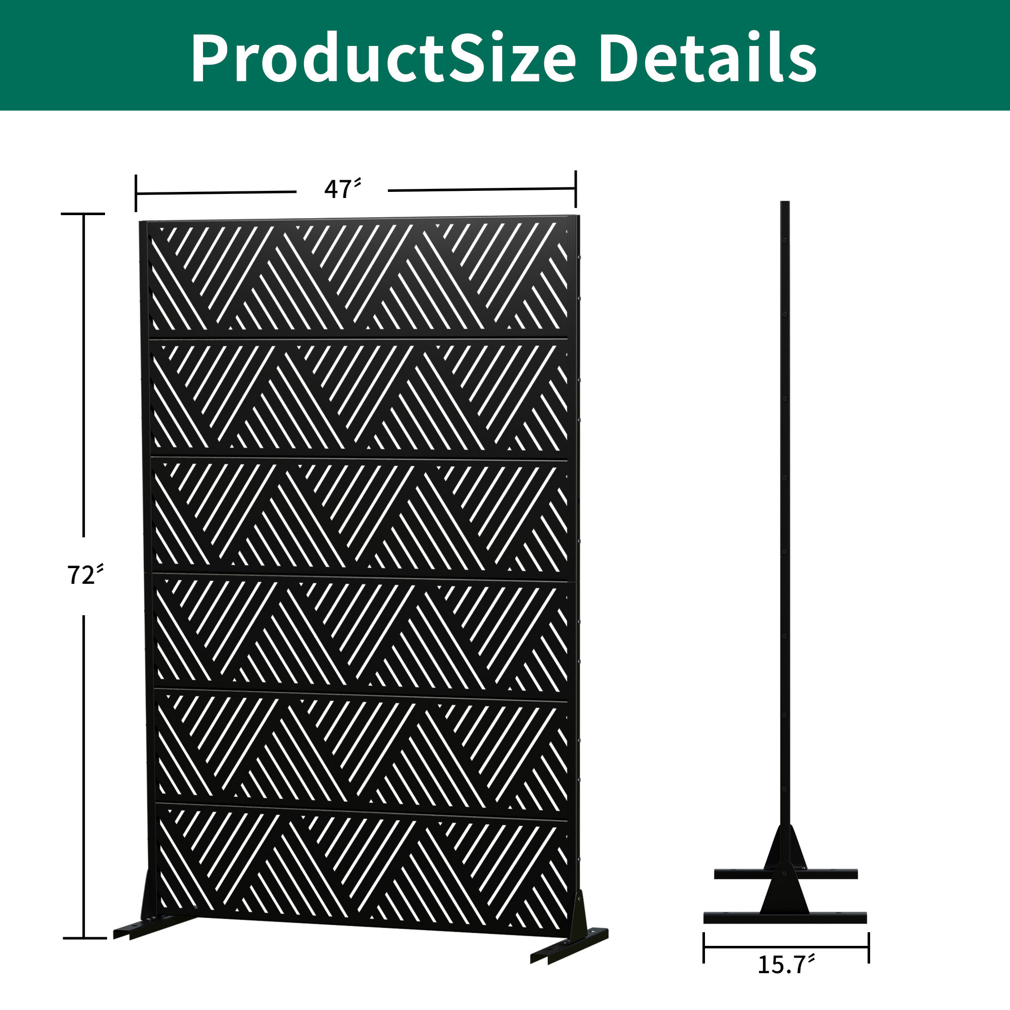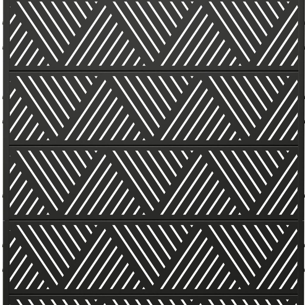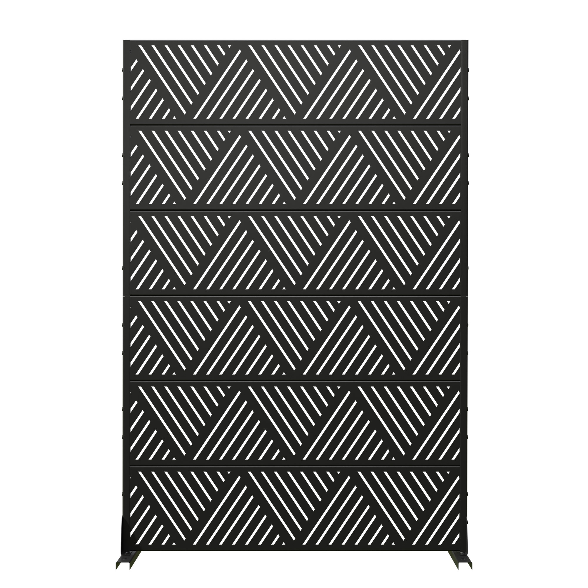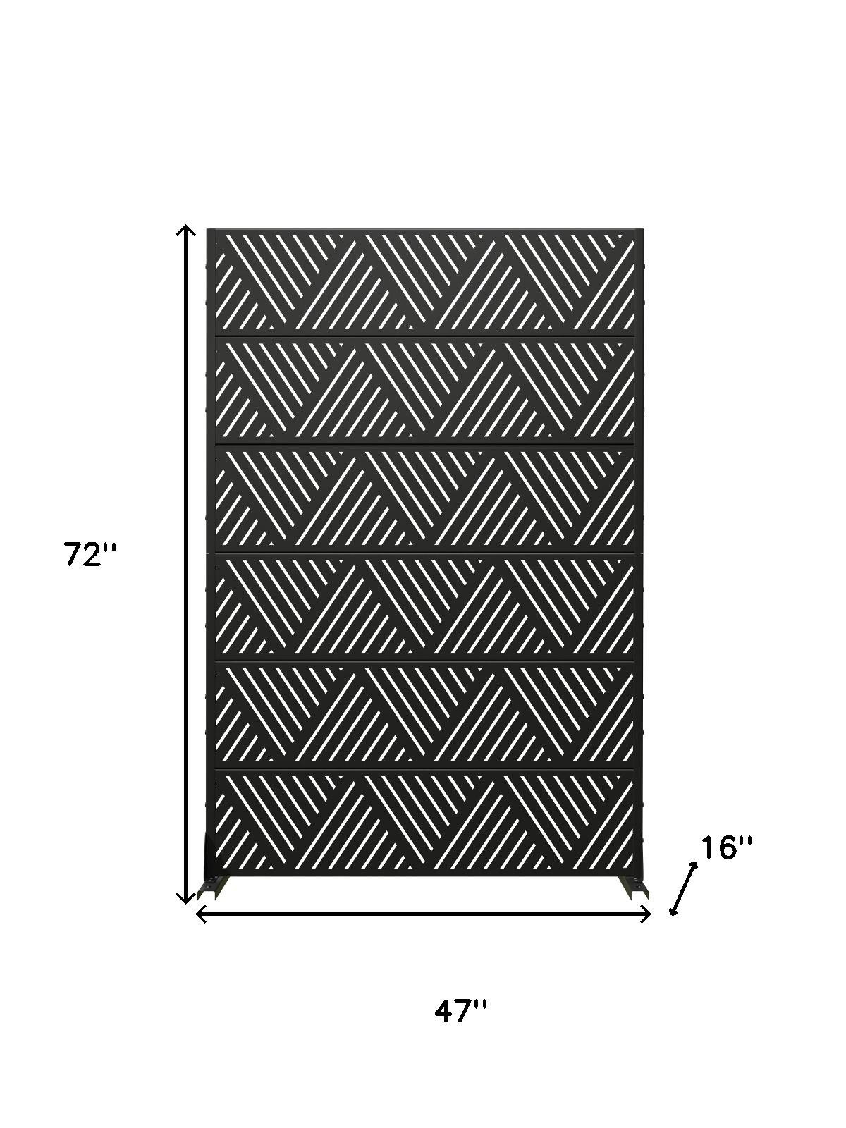 The 72-inch black steel six panel screen room divider is a stylish way to create separate spaces in your home. Constructed from durable steel, this room divider boasts an opaque design that ensures privacy while maintaining aesthetic appeal. The reverse side features the same material, print, finish, and color as the front, allowing for seamless integration into your decor. With a total of six panels, it offers versatile arrangements to suit any layout. Ideal for both indoor and outdoor use, this divider is perfect for enhancing your living areas or garden spaces. Elevate your home's design with this functional and contemporary addition, providing both utility and elegance to your environment. 72.00-inch h x 47.00-inch w x 16.00-inch d.
