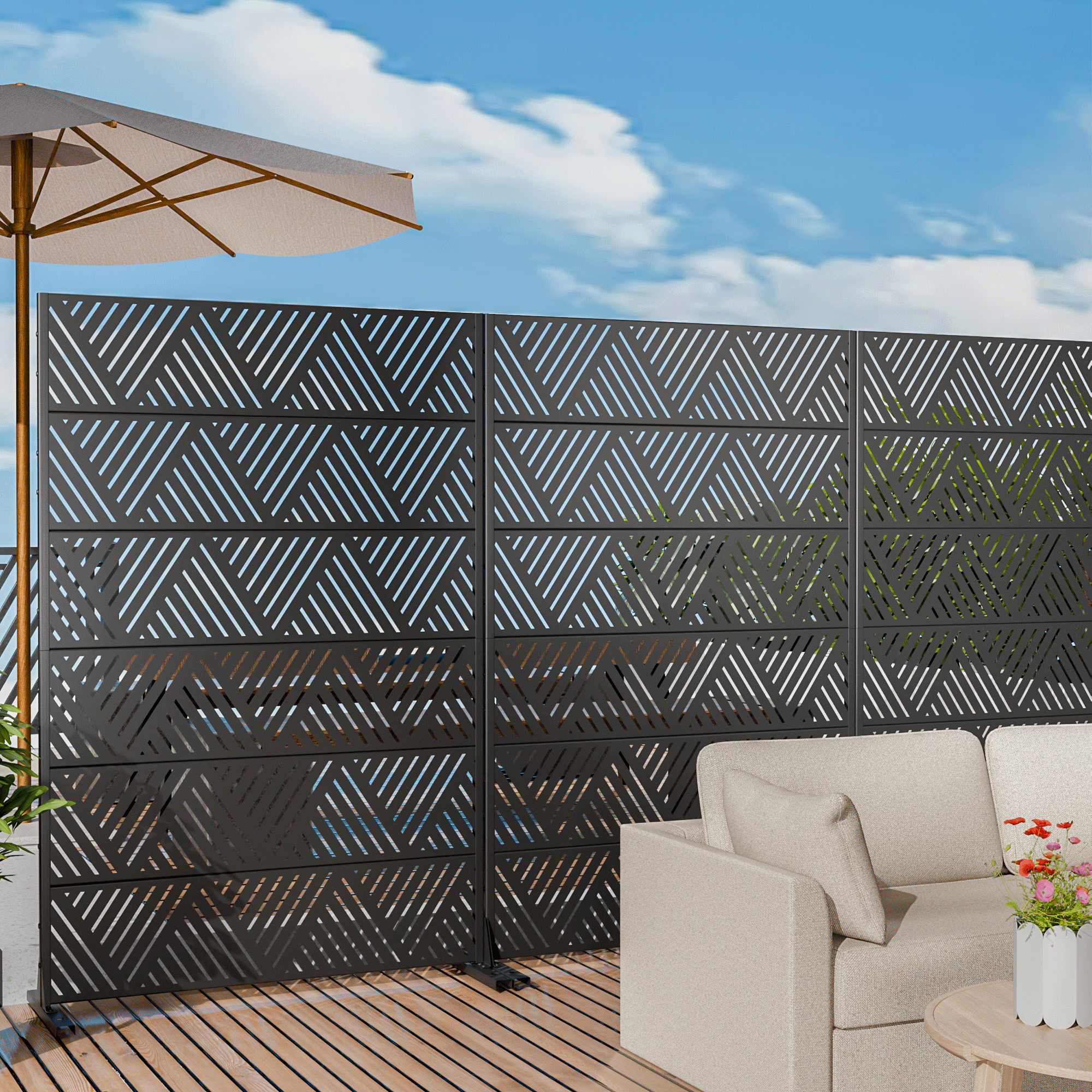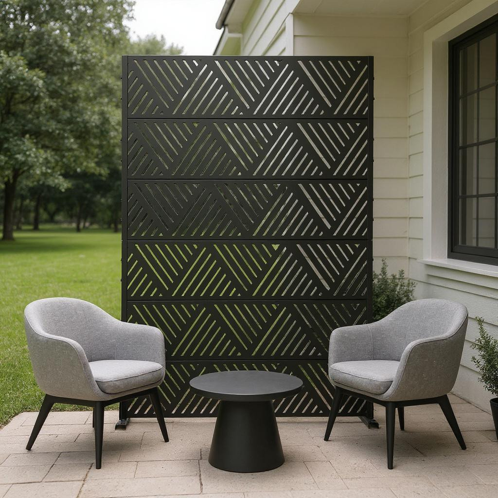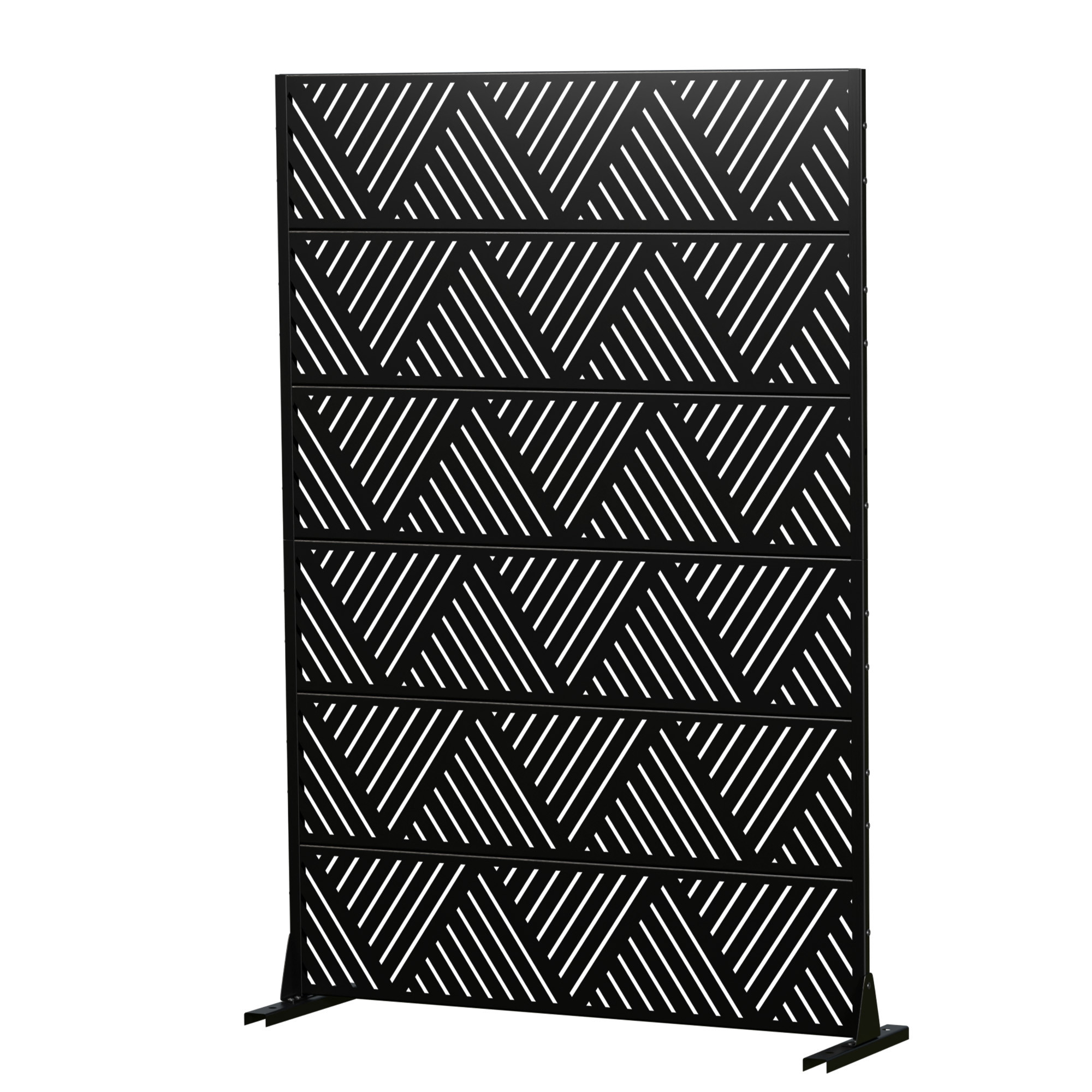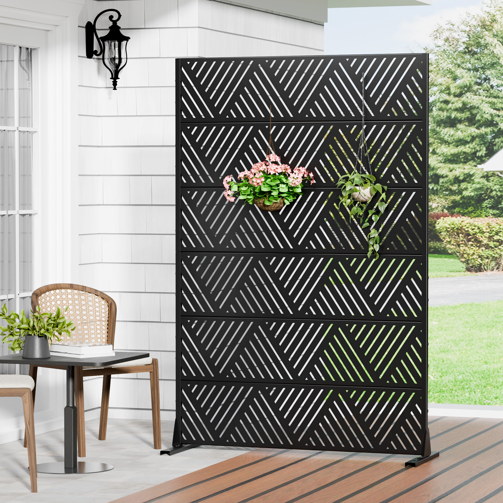 The 72-inch black steel six panel screen room divider is a stylish way to create separate spaces in your home. Constructed from durable steel, this room divider boasts an opaque design that ensures privacy while maintaining aesthetic appeal. The reverse side features the same material, print, finish, and color as the front, allowing for seamless integration into your decor. With a total of six panels, it offers versatile arrangements to suit any layout. Ideal for both indoor and outdoor use, this divider is perfect for enhancing your living areas or garden spaces. Elevate your home's design with this functional and contemporary addition, providing both utility and elegance to your environment. 72.00-inch h x 47.00-inch w x 16.00-inch d.