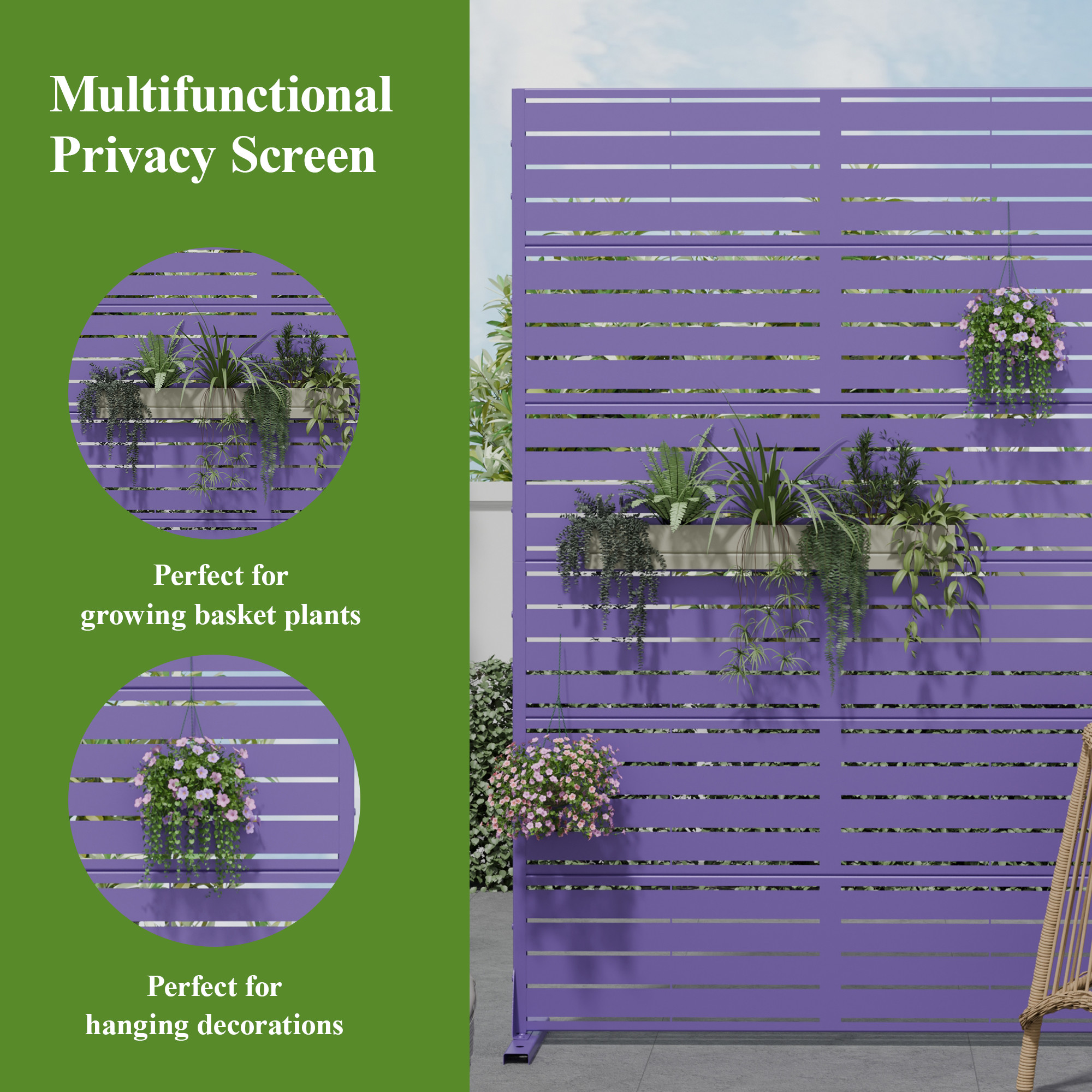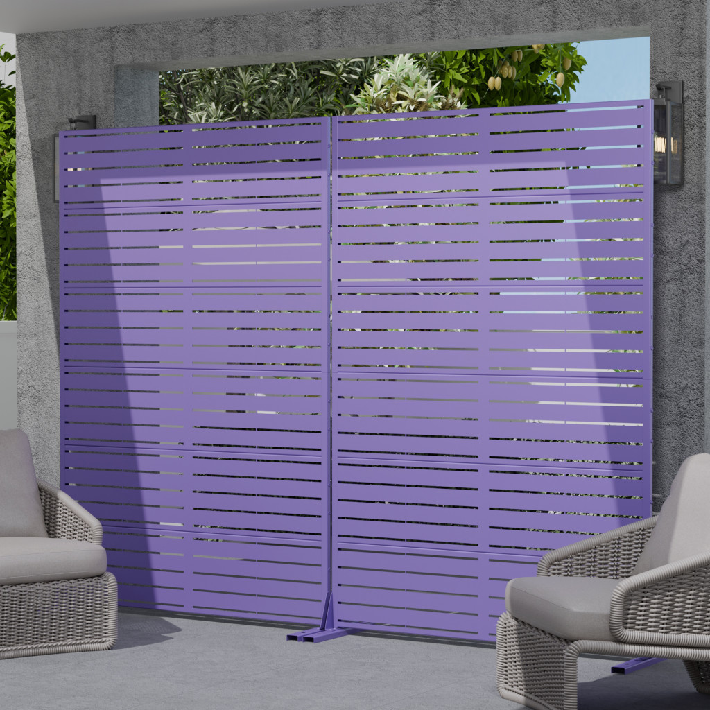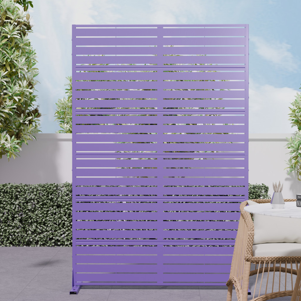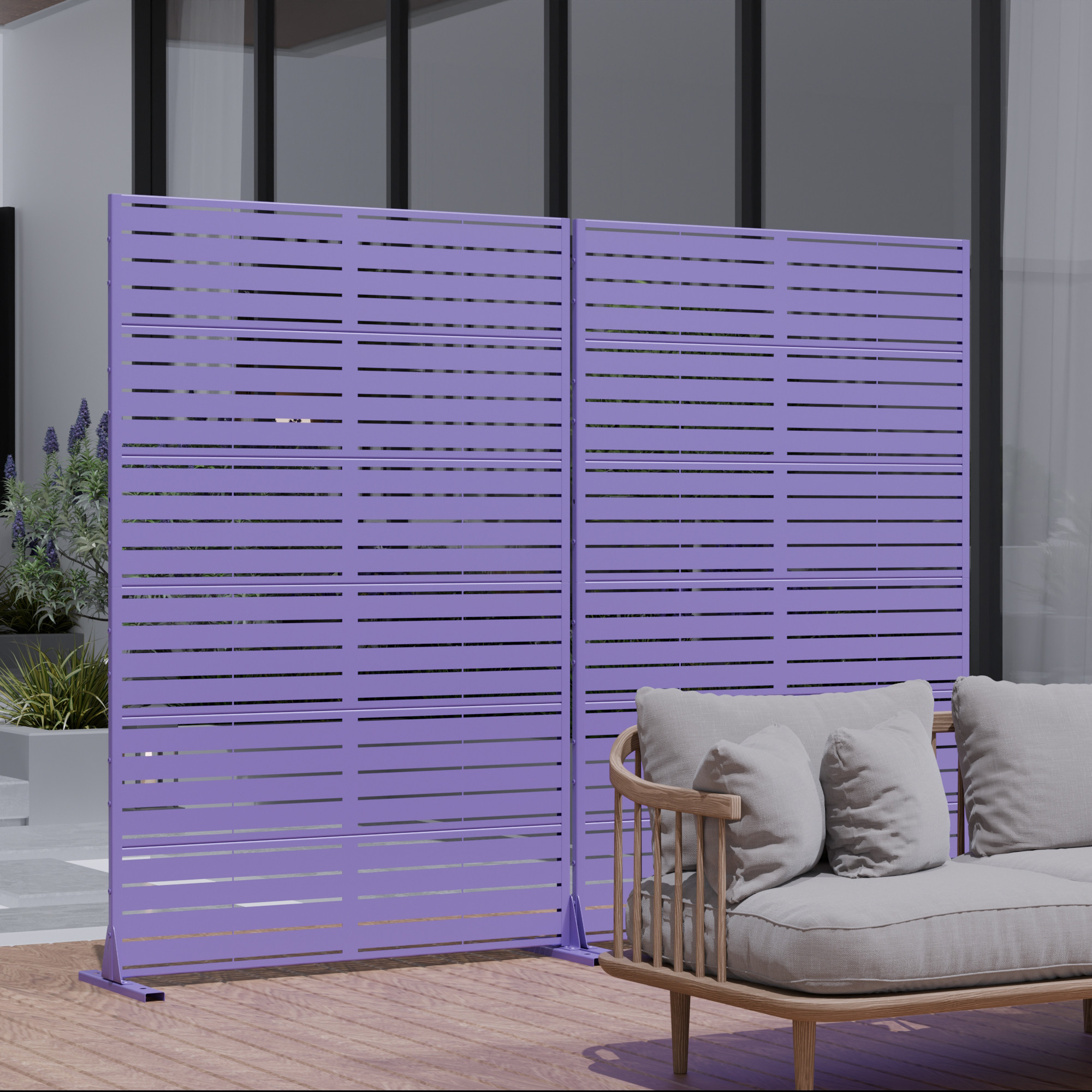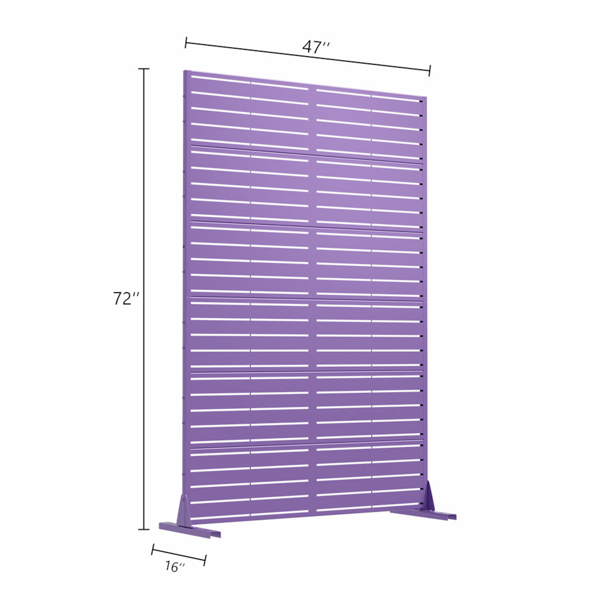The 72-inch purple steel six panel screen room divider is an elegant solution for creating privacy or redefining spaces in your home. Crafted from durable steel, the frame promises strength and stability while adding a modern touch. Ideal for outdoor use, this divider enhances your patio or garden area with its vibrant purple hue. The opaque screen material ensures complete privacy while maintaining a stylish appearance. Each panel is designed with a consistent finish, featuring the same material and color on both sides for a seamless look. With six versatile panels, you can easily adjust the layout to fit various spaces, allowing for creative room arrangements and personal expression. 72.00-inch h x 47.00-inch w x 16.00-inch d.