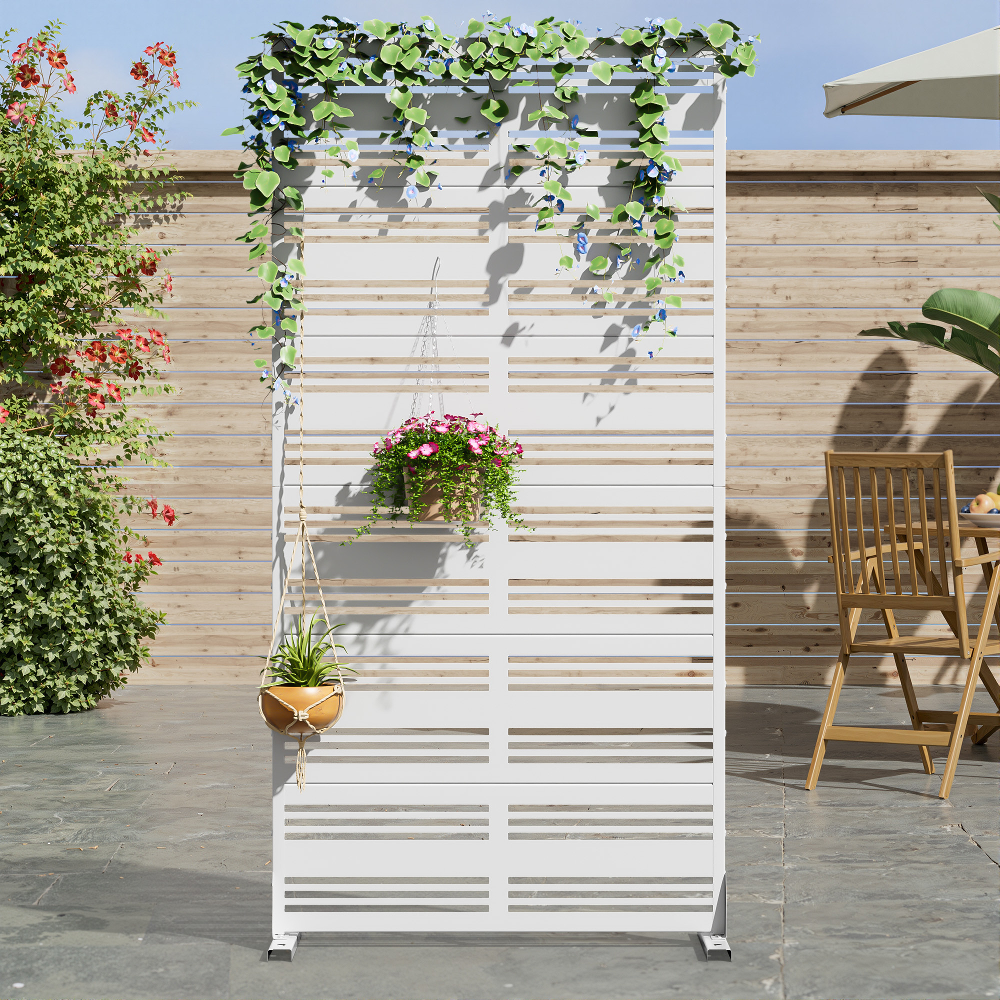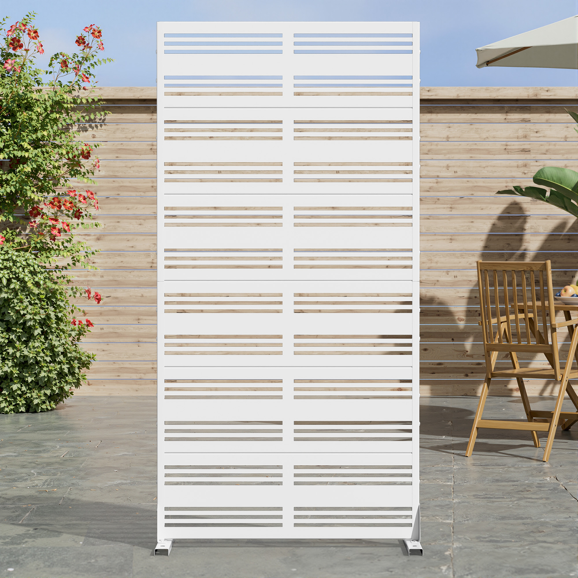 The 72-inch white steel six panel screen room divider offers a stylish solution for creating distinct areas within your space. Crafted from durable steel, this room divider ensures both strength and stability. Its opaque screen material provides privacy while maintaining an elegant aesthetic. Whether indoors or outdoors, this versatile piece is suitable for various settings. The reverse side features a finish that matches the front, ensuring a cohesive look from all angles. With six panels, it allows for flexible configurations to meet your specific needs. This room divider not only serves a functional purpose but also adds a modern touch to your home decor, making it a perfect addition to any room. 72.00-inch h x 35.00-inch w x 16.00-inch d.