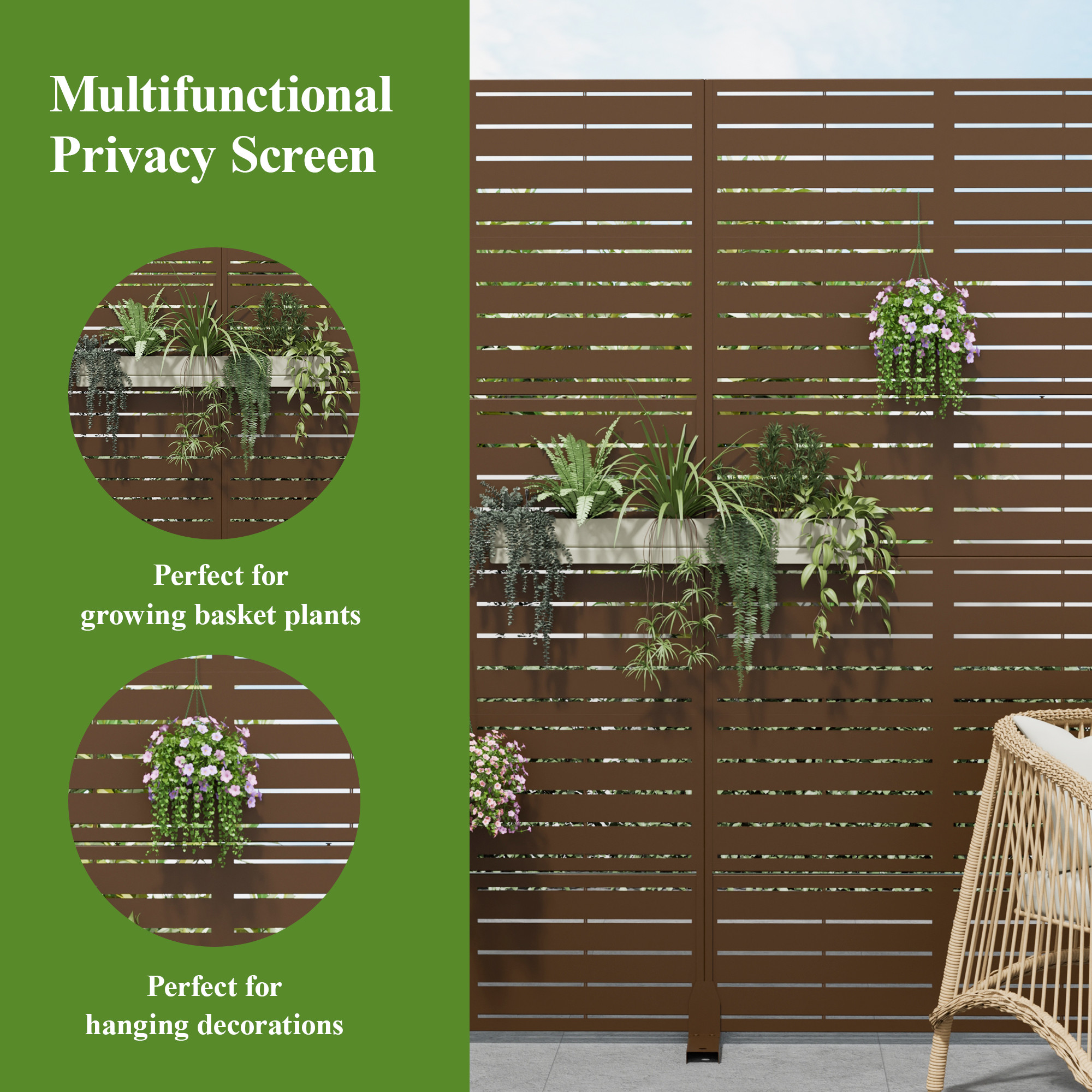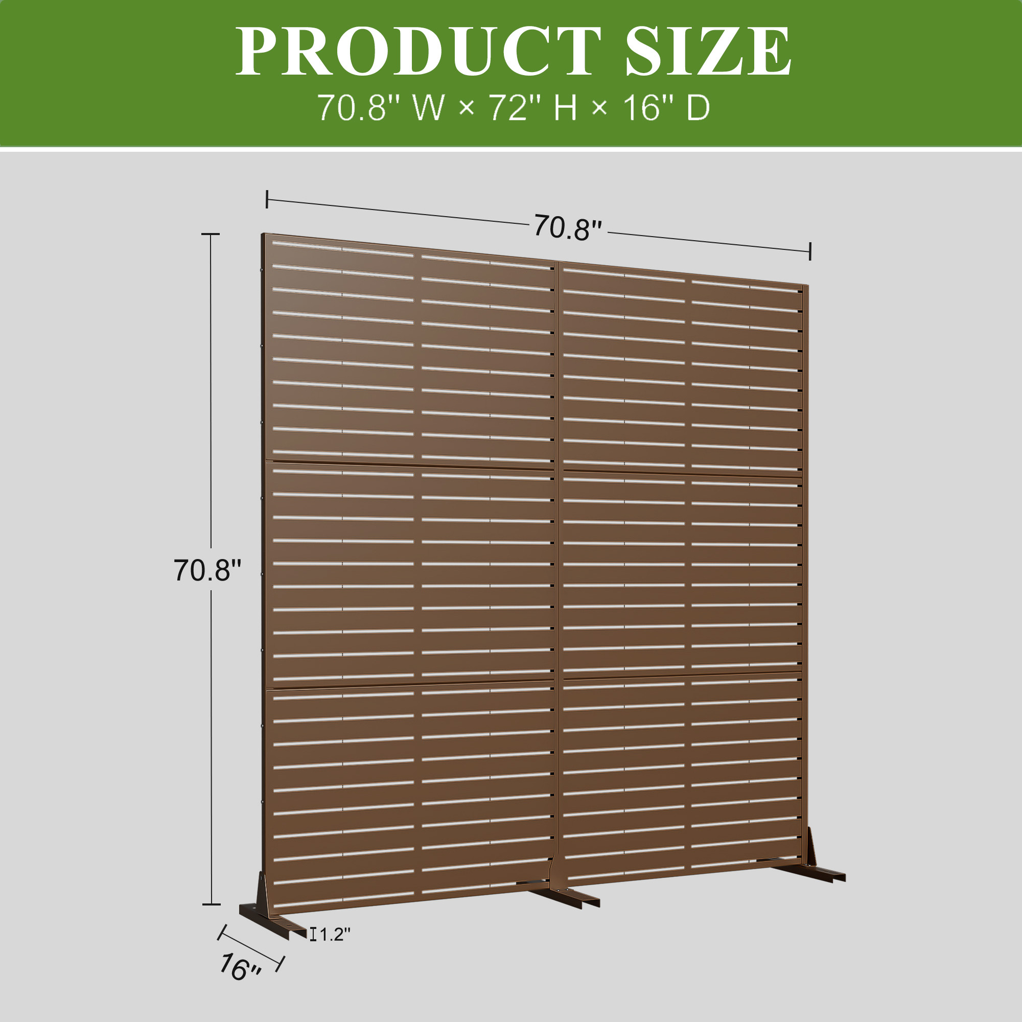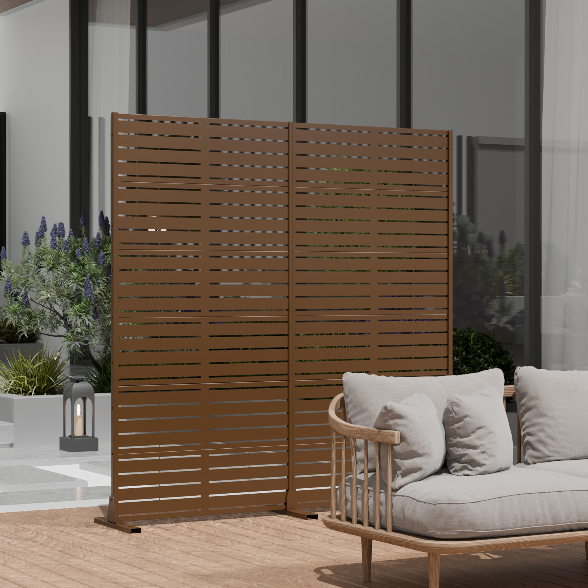 The 72-inch brown steel three panel screen room divider offers an elegant solution for creating distinct spaces in your home. Crafted from durable steel, this room divider ensures longevity and stability, making it suitable for both indoor and outdoor use. Its opaque design provides privacy while maintaining a stylish appearance that blends seamlessly with various décor styles. The reverse side features a finish and color that match the front, ensuring a cohesive look from every angle. With three panels, you can easily customize the setup according to your needs, allowing for versatile arrangements that enhance the functionality of your living area. Transform any room with this contemporary and practical addition to your home. 72.00-inch h x 35.00-inch w x 16.00-inch d.