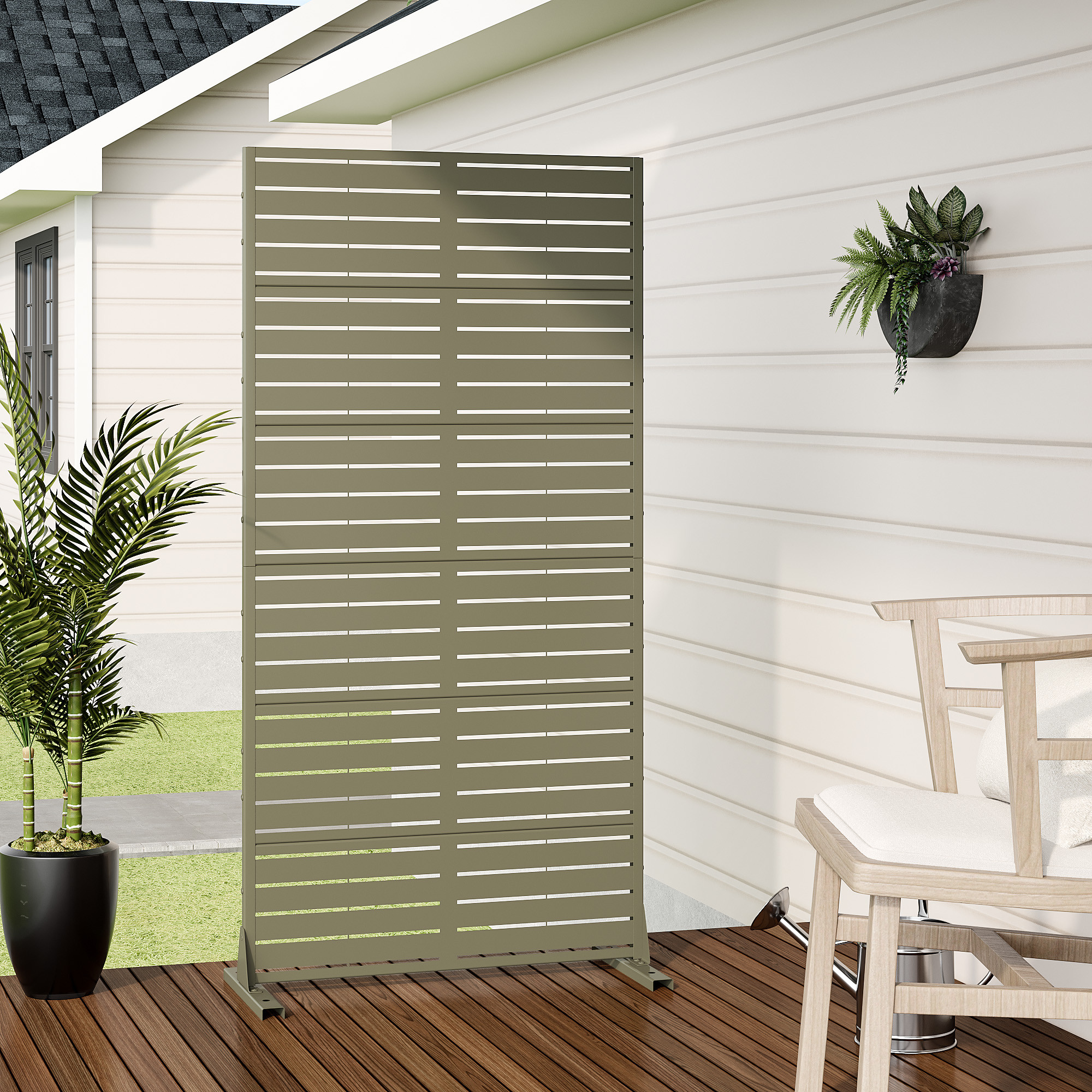 The 72-inch gray steel six panel screen room divider offers a stylish solution to create private spaces in your home or outdoor areas. Crafted with a durable steel frame, this room divider combines strength and contemporary design effortlessly. The opaque steel screen ensures privacy while still allowing light to filter through subtly. With six versatile panels, it can be adjusted to fit various layouts, providing flexibility for any setting. The reverse side features the same material, print, finish, and color as the front, ensuring a cohesive look from all angles. Perfect for both indoor and outdoor use, this room divider enhances your decor while serving practical purposes. Transform your space with a touch of sophistication and functionality. 72.00-inch h x 35.00-inch w x 16.00-inch d.