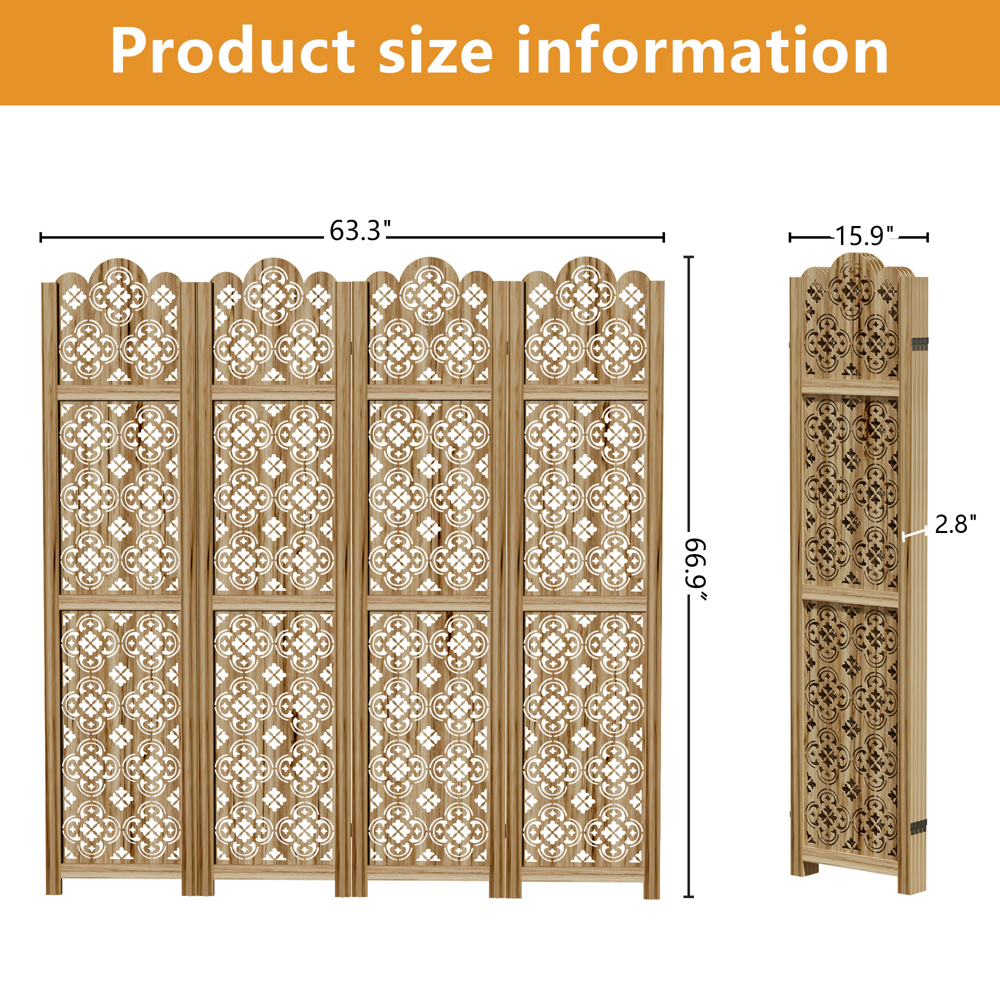 wood panel screen room divider, panel screen room divider, screen room divider, brown wood panel screen room, 67" brown wood panel screen |